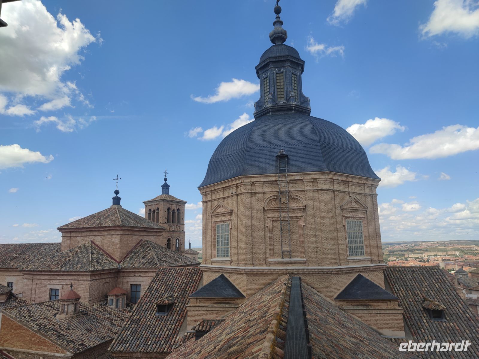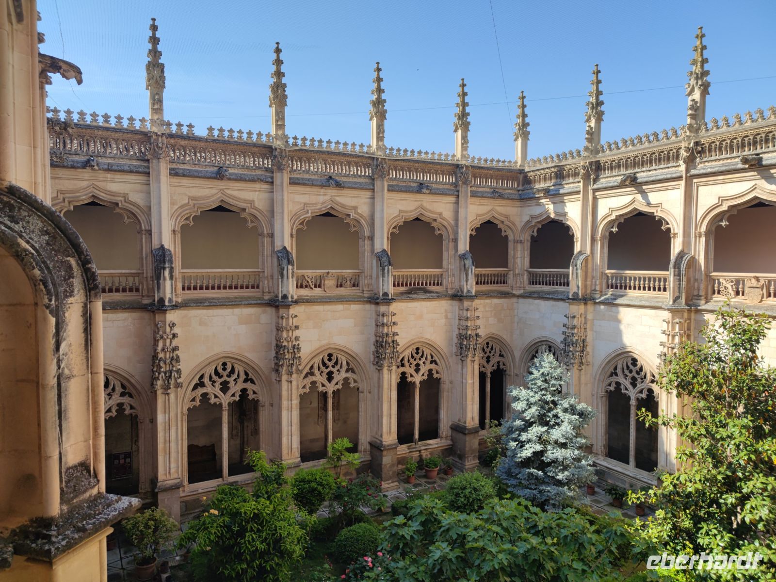 Von unserem Parador fuhren wir am Morgen mit unserem örtlichen Stadtführer zur Brücke San Martin, stiegen dort aus und spazierten über den Fluss Tajo hinauf in die Altstadt Toledos. Wir besichtigten das „Monasterio San Juan de los Reyes“, die ehemalige Synagoge „Santa Maria la Blanca“, die Kirche „Santo Tomé“ und zum Abschluss die Kathedrale. Nach dem Stadtrundgang war Freizeit für eigene Erkundungen und die Mittagspause. Am Nachmittag fuhren wir mit unserem Bus zurück zum Parador, wo wir bis zum Abendessen Freizeit hatten.