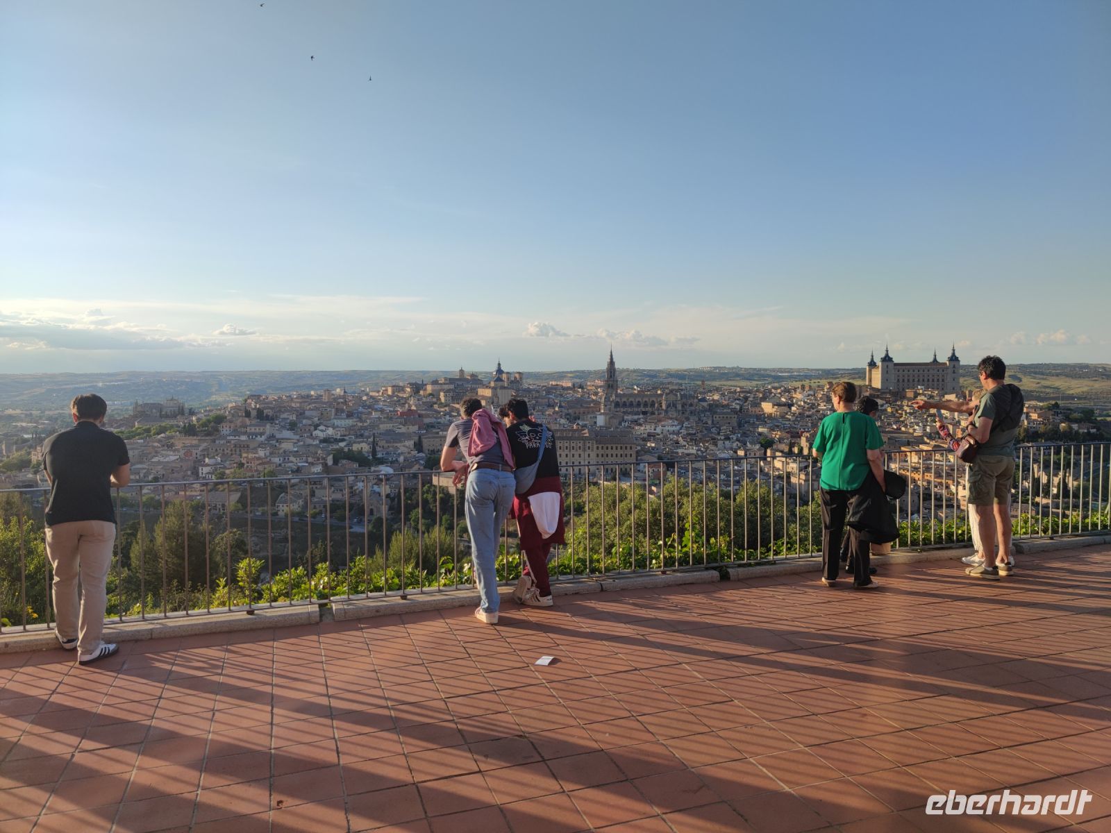 Nach dem Frühstück im Hotel startete unser Stadtrundgang mit unserem örtlichen Reiseleiter. Wir besichtigten den Plaza Mayor, das Habsburger Viertel und besuchten den Königspalast „Palacio Real“. Nach einer kurzen Pause am „Plaza de Oriente“ folgte die Stadtrundfahrt, bei der wir den Retiro-Park, das Salamanca-Viertel sowie die Museen Prado und Reina Sofia zu sehen bekamen. Im Anschluss an die Rundfahrt ging es nach der etwas späten Mittagspause direkt zu unserem Hotel „Parador de Toledo“. Nach dem Bezug unserer Zimmer genossen wir von der riesigen Hotelterrasse den fantastischen Blick auf die uns gegenüberliegende Altstadt von Toledo.