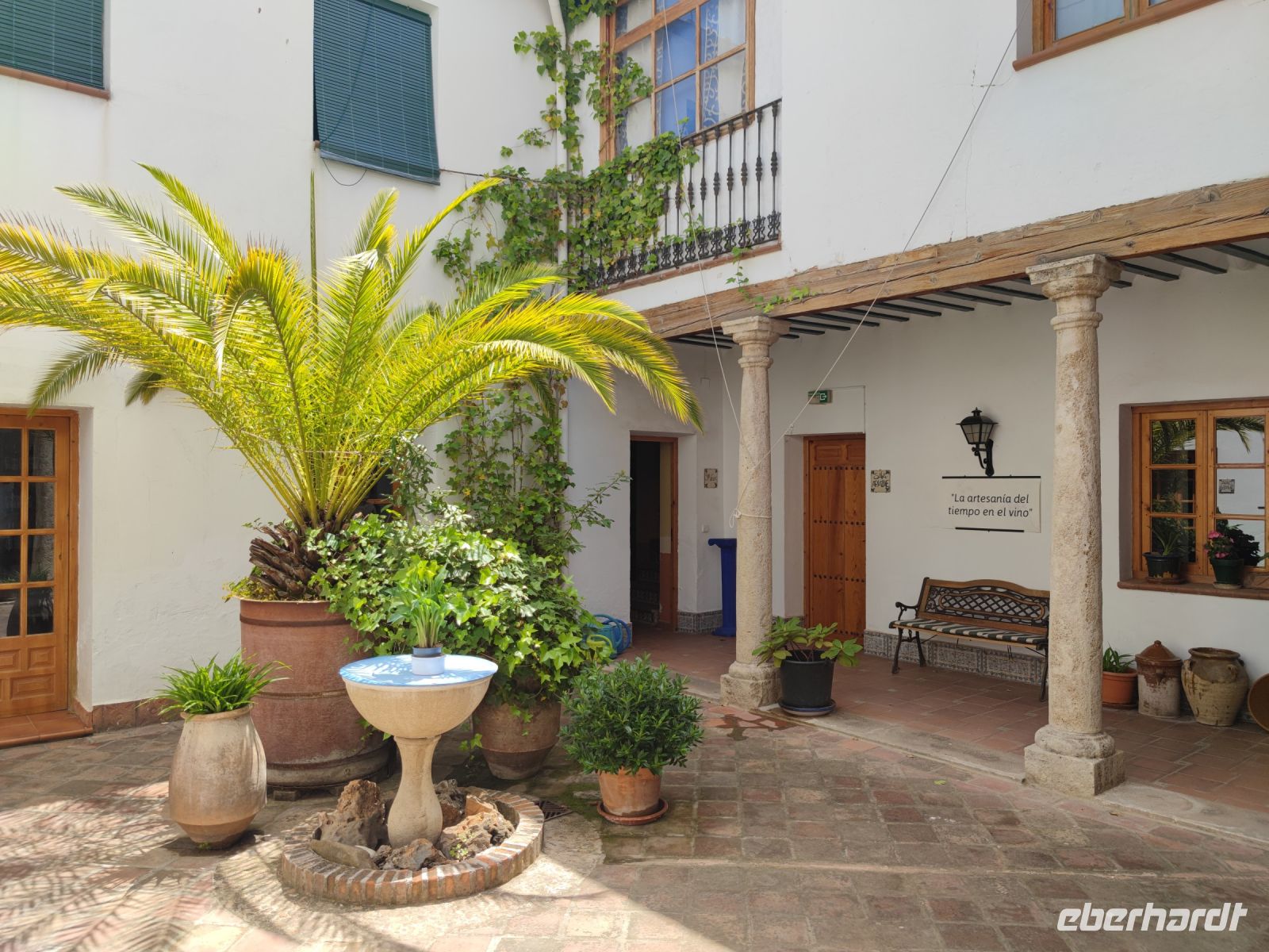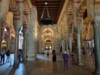 Am Morgen hieß es Abschied nehmen von Mérida und Weiterfahrt in Richtung Andalusien. Nach einem Zwischenstopp in Llerena erreichten wir am Mittag Córdoba. Es war herrliches Wetter, sonnig und sehr warm. Wir liefen über die Römische Brücke ins Stadtzentrum, vorbei an der gewaltigen ehemaligen Hauptmoschee Mezquita. An deren oberen Ende befinden sich die „Bodegas Mezquita Cespedes“, in denen wir zum Tapas-Mittagessen erwartet wurden. Nach dieser sehr reichlichen Stärkung besuchten wir mit unserer örtlichen Reiseleiterin die ehemalige Hauptmoschee und heutige Kathedrale. Im Inneren der Mezquita erwartete uns ein Wald aus hunderten Marmorsäulen, auf welche sich Hufeisenbögen stützen, die wiederum die Deckenkonstruktion tragen. Eine unfassbare Fülle an Ornamenten sahen wir auch an und in den beiden Gebetsnischen des Imams und des Kalifen. Mitten in diese gewaltige ehemalige Moschee wurde im 16.Jahrhundert mit dem Bau der Kathedrale begonnen. Vielleicht ist das der Grund, weshalb die ehemalige Moschee zum größten Teil erhalten blieb. Nach dem Besuch sahen wir die berühmte Blumgengasse „Calleja de las Flores“ und das jüdische Viertel Córdobas. Nach einer kleinen Pause fuhren wir weiter zu unserem Hotel „Parador de Carmona“.