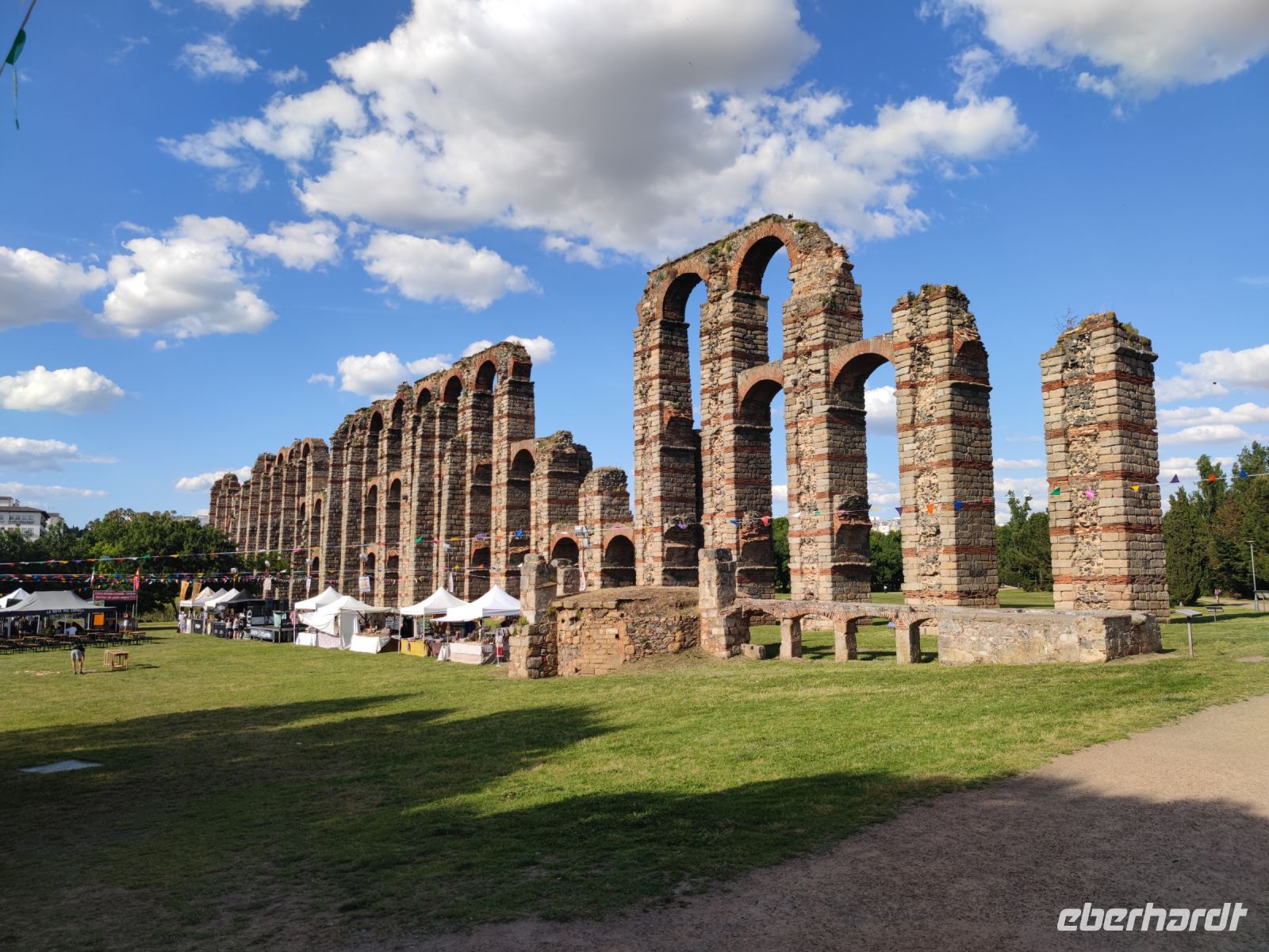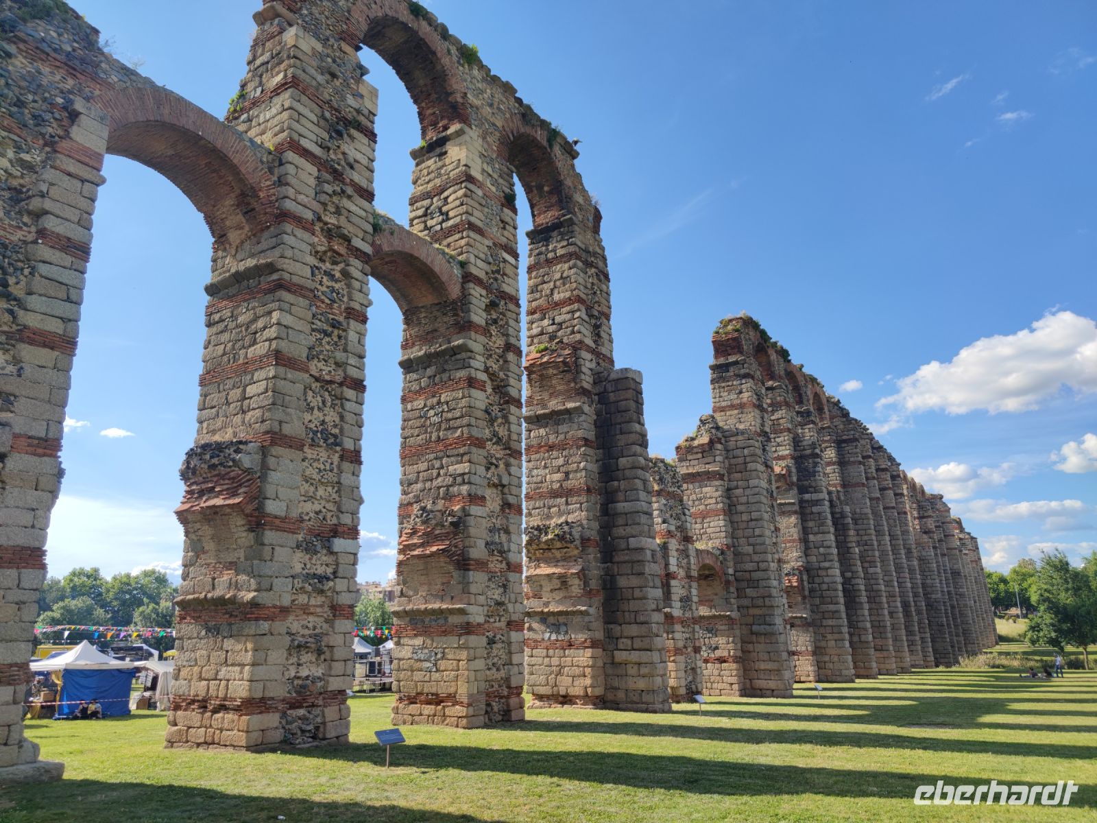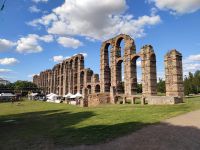 Von Mérida aus ging es am Vormittag nach Trujillo, einer mittelalterlichen Stadt, aus der einige Konquistadoren stammen. Sie waren beteiligt an der Eroberung der Neuen Welt und einer von ihnen, Francisco Pizarro, war verantwortlich für den Untergang des Inka-Reiches. Nach ihrer Rückkehr nach Trujillo ließen sie sich prächtige steinerne Paläste und Stadthäuser errichten. Bei einem Spaziergang durch den schönen Ort besuchten wir das kleine Pizarro-Museum und liefen hinauf bis zur ehemaligen Festungsanlage, von der aus wir einen schönen Blick auf den Plaza Mayor hatten. Von Trujillo fuhren wir anschließend in die Provinzhauptstadt Cáceres, in der wir zur Mittagszeit eintrafen. Nach der Mittagspause führte uns unsere örtliche Reiseleiterin in die mittelalterliche Oberstadt sowie ins ehemalige Judenviertel. Uns schien es als wäre die Zeit stehen geblieben. Nach der Stadtbesichtigung in Cáceres fuhren wir wieder zurück nach Mérida. Einige von uns spazierten nach unserer Ankunft im Parador zum römischen Aquädukt, welches in einem erstaunlich guten Zustand erhalten ist.