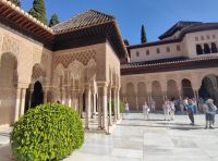 Kathedralenbau im Stile der Renaissance. Unser Rundgang endete am Bib Rambla, dem zentralen Platz in der Altstadt. Anschließend hatten wir Freizeit. Am Nachmittag ging es mit dem Bus zur Alhambra. Dort trafen wir uns mit unserer örtlichen Stadtführerin und besuchten die Gartenanlagen des Generalife und die Paläste der Nasriden in der Alhambra. Wir kamen uns wieder vor wie auf einer Zeitreise in eine andere Welt. Zum Schluss besichtigten wir den Palast Karls des V., welchen er mitten in die ehemalige Medina der Moslime bauen ließ. Nach unserem Besuch in der Alhambra brachte uns der Bus wieder zurück zum Hotel. Wir verabredeten uns, um gemeinsam noch einmal zum Albaicin-Viertel zu gehen, wo wir in einem marokkanischen Restaurant zum Abendessen erwartet wurden.