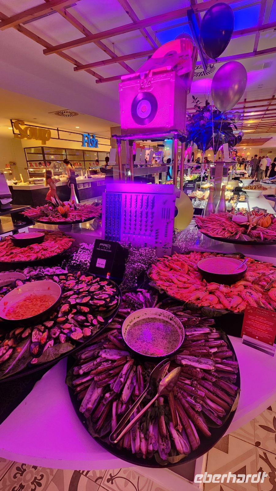 Am Abend erwartet uns ein unvergessliches Silvester-Dinner. Alle Kellner sind im 50 er Jahre Look gekleidet, mit Peticoat und in rot-schwarz, ein DJ spielt Musik der 50er und alles ist toll geschmückt. Das Buffet der absolute Wahnsinn, es ist schwer das ganze Angebot überhaupt zu überblicken, Meeresfrüchte und viele andere erlesene Speisen, so viele Desserts ....