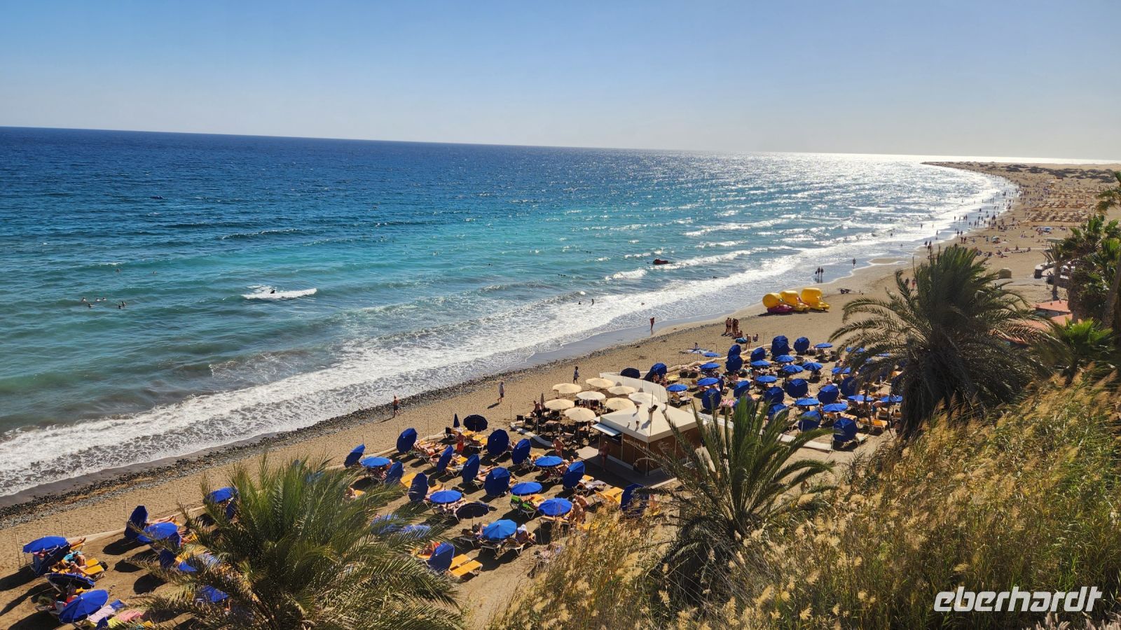 Einige lassen es erstmal ruhig angehen, frühstücken ausgiebig und machen dann einen gemütlichen Strandspaziergang und setzen sich in ein nettes Lokal mit Meerblick. Anschließend bummelt man noch ein wenig durch die kleinen Geschäfte, die es hier natürlich in großer Zahl gibt, Playa del Ingles ist der Haupt-Touristenort der Insel.