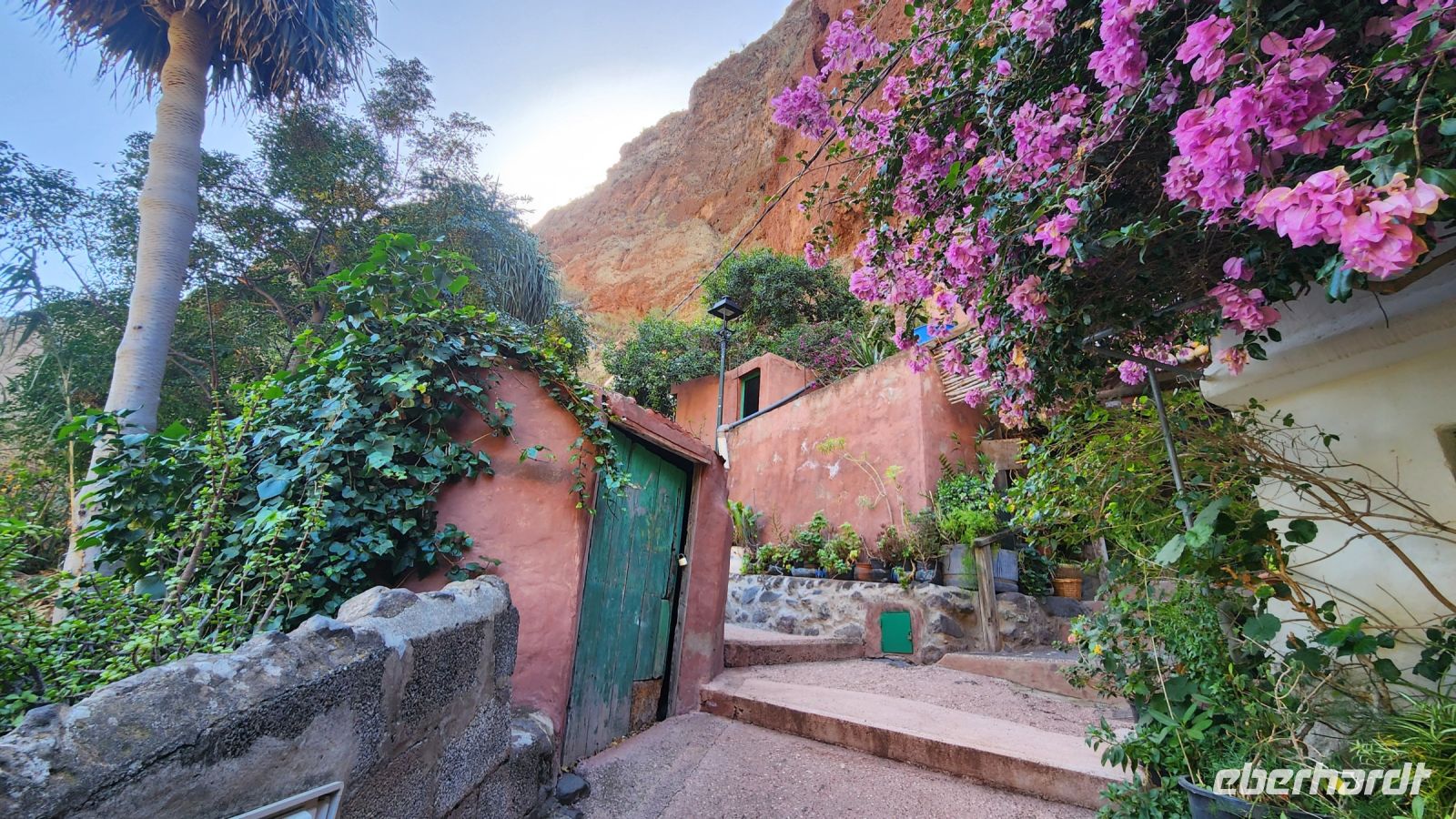 Anschließend besuchen wir den alten Ort Agüimes, der im maurischen Stil errichtet wurde. Er befindet sich am Eingang der grünen Schlucht Barranco de Guayadeque. Am Rande der Schlucht wohnten einst viele Ureinwohner der Insel in Höhlenhäusern. Manche tun es hier auch heute noch, das Zuhause einer alten Dame dürfen wir sogar besichtigen. Es ist sehr gemütlich eingerichtet.