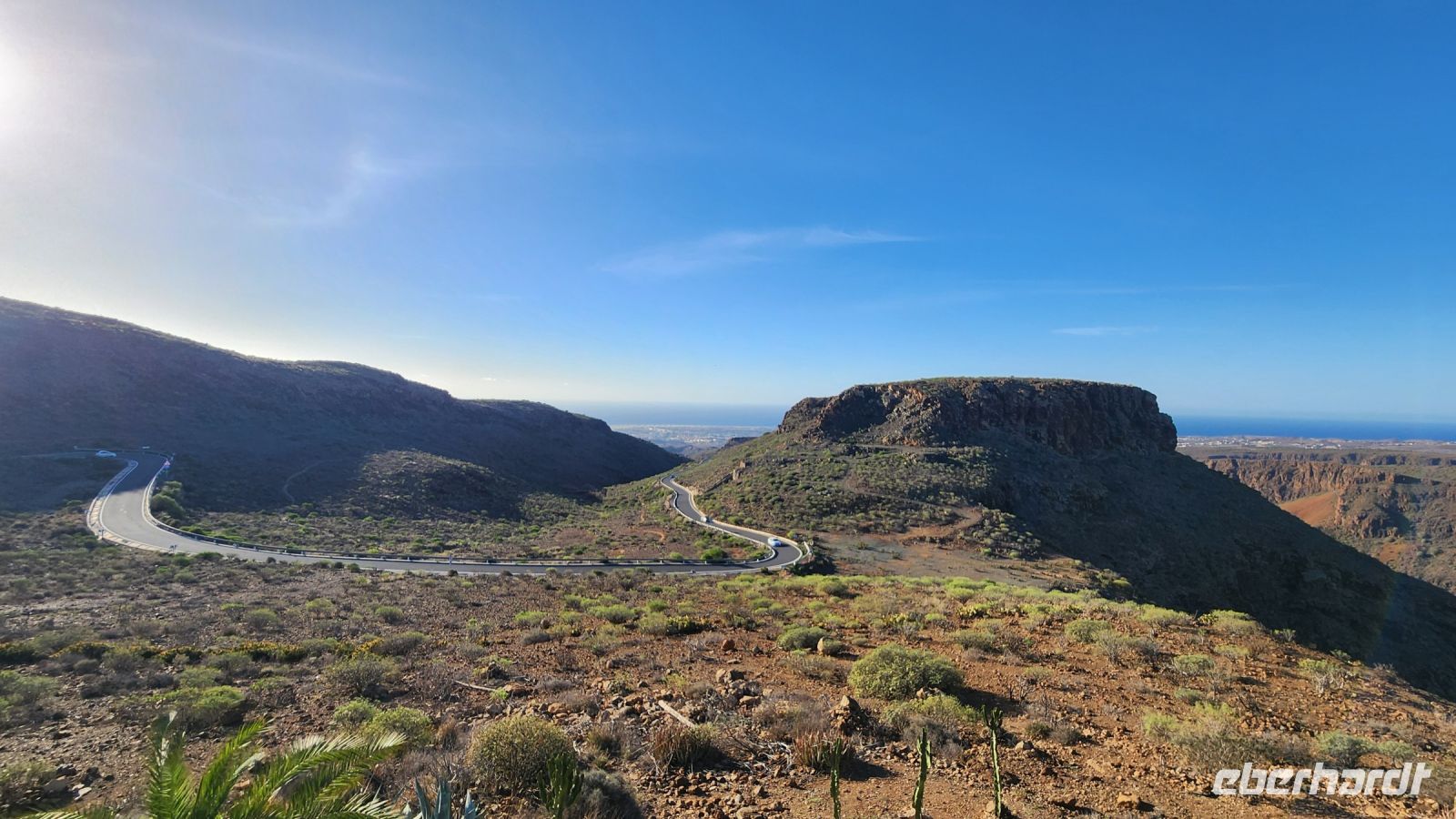 Wir durchqueren San Bartolome de Tirajana mit dem atemberaubenden Blick auf die Caldera de Tirijana und durchfahren das Tal der 1000 Palmen.