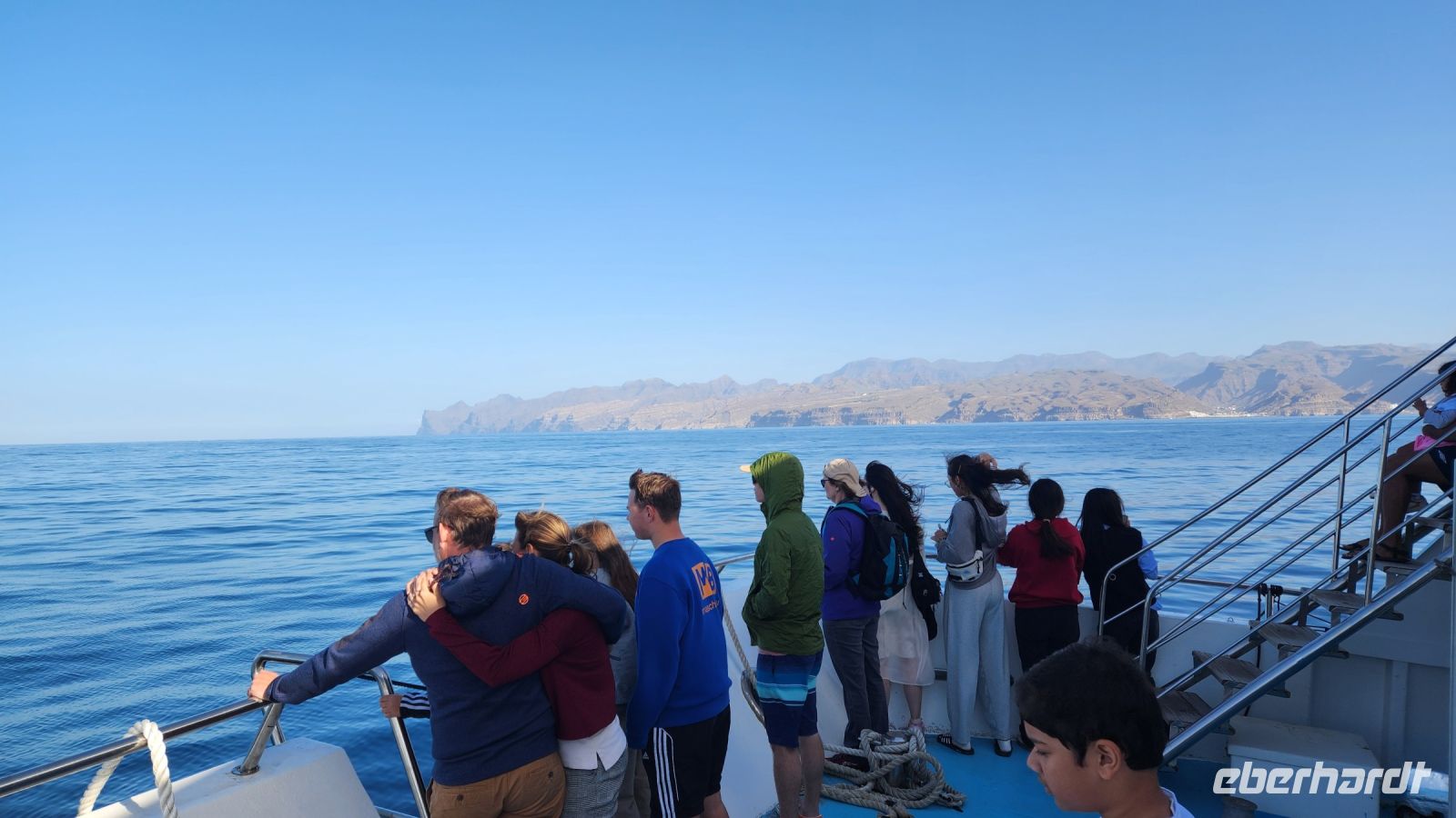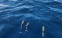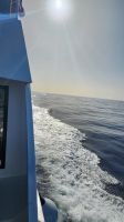 Ein anderer Teil steht etwas zeitiger auf. Der Plan ist eine Delfin-und Whalewatching Tour. Der große Katamaran startet von der Westküste und fährt weit raus auf dem Atlantik. Wir sitzen alle auf dem Oberdeck in der Sonne und sind sehr gespannt. Wir haben Glück!!! Wir sehen an diesem Vormittag viele Delfine, immer wieder, auch Weibchen mit ihren Kälbern. Zum Abschied, als wir kehrt machen, springt ein Delfin immer wieder hoch in die Luft, mehr geht nicht!