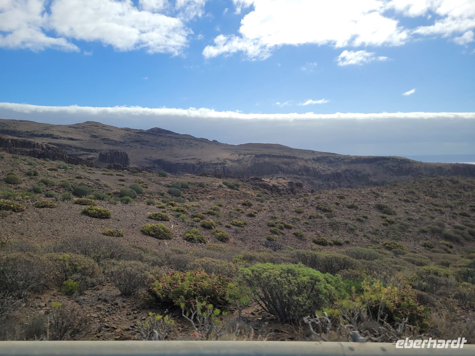 Wir erleben herrliche Aussichtspunkte. So den Mirador Degollada De Las Yeguas; wunderschöner Blick auf die trockene Landschaft im Süden Gran Canarias. Die Panoramaansicht des Tals von Fataga, einem riesigen Cañon von 15km Länge, breit und tief und verschlungen. Seine Seitenwände sind leicht abgerundet, schliessen aber plötzlich in fast vertikalen, schroffen Felsen ab. Die gesamte Schlucht ist von der typischen strauchartigen Vegetation bedeckt.