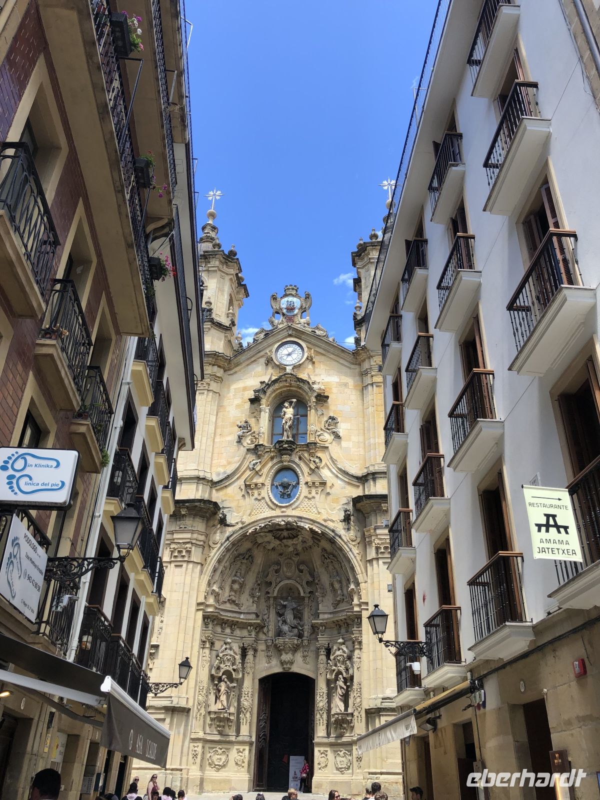 Vom Busbahnhof aus, spazierten wir Richtung Meer, erblickten bereits die ersten Jakobsmuscheln als Wegzeichen des Jakobsweges, der hier in San Sebastian für die Nordroute an der Küste entlangführt. Wir trainierten schonmal ein bisschen unser Auge. Nach unserem ersten Erlebnis des Tages brummte uns allerdings ein wenig der Magen, oder es meldete sich einfach der Appetit? Wir hatten bereits so viel über die berühmten Pintxos des Baskenlandes gesprochen, dass wir sie nun auch endlich einmal in der Stadt der berühmten Kochgesellschaften ausprobieren wollten. Eine preisgekrönte Bar in der Altstadt lachte uns mit kleinen verführerischen Happen an, so dass wir nicht widerstehen konnten. Dazu ein Txakoli, ein junger, fruchtiger Weißwein aus dem Baskenland oder ein frisches Bier und der Tag fühlte sich so richtig nach Urlaub an.