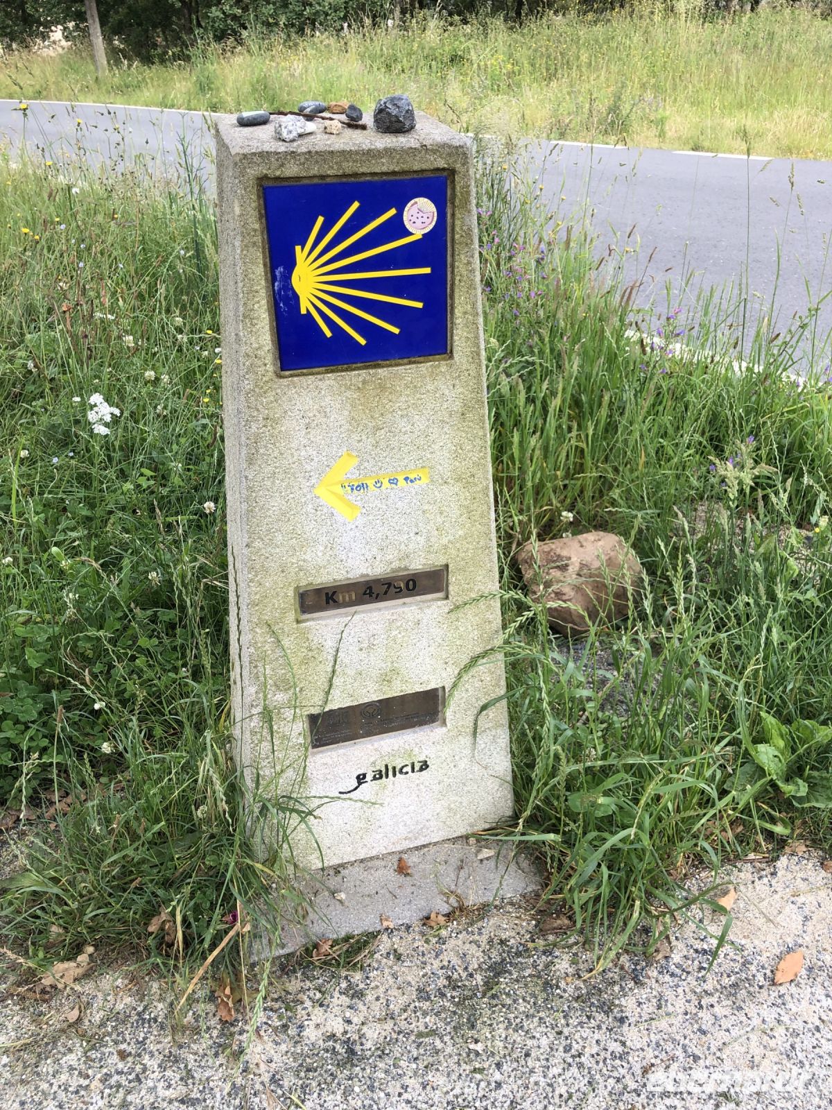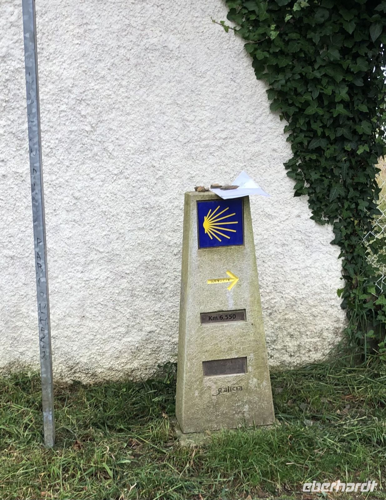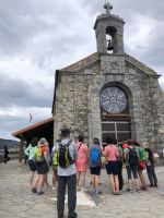 Nach einem spanischen Frühstück schnürten wir fest entschlossen die Wanderschuhe, um heute auf einem Teil des legendären Camino Francés´, dem Jakobsweg zu pilgern. Am Anfang gab es eine kleine Einführung der Beschilderung, schließlich sollte sich ja keiner verlaufen. Heute folgten wir der Muschel oder den gelben Pfeilen. Diese Beschilderung des Jakobsweges hatte ihre Anfänge in den 1970er Jahren, denn früher war der Jakobsweg nicht ausgeschildert. Im Mittelalter, besonders in den ersten Jahren der Pilgerfahrt nach Compostela, verliefen sich viele Pilger in den Bergen und kamen niemals am Grab des Apostels Jakobus an. Im Laufe der Zeit begann man den Jakobsweg mit Kreuzen und Steinhügeln auszuschildern, um den Pilgern die Wanderung zu erleichtern. Die gelben Pfeile des Jakobsweges kamen erst 1984 dazu. Ihr Schöpfer war Elías Valiña, der Pfarrer von O Cebreiro, der kanonisches Recht studierte und seine Doktorarbeit über den Jakobsweg schrieb.