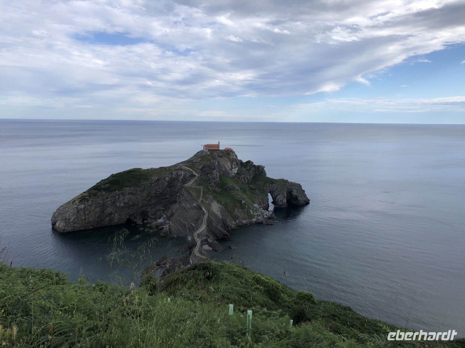 Nicht ganz eine Stunde Fahrt und der Golf von Bizcaya lag vor uns. Eine kleine Insel nur mit einer Treppe mit dem Festland verbunden, regt seit Jahrhunderten die Fantasie der Menschen an - San Juan de Gaztelugatxe. Ein paar wenige Menschen kamen uns entgegen, ansonsten hatten wir den Weg als auch die grandiose Aussicht für uns allein. Die Kreuze zählend überwanden wir die Steintreppe und wollten enthusiastisch die Glocke der Kapelle dreimal läuten. Doch – oh Schreck – das Seil war oberhalb im Kirchenportal eingeklemmt. Es war wohl in der Vergangenheit zu häufig geläutet worden.