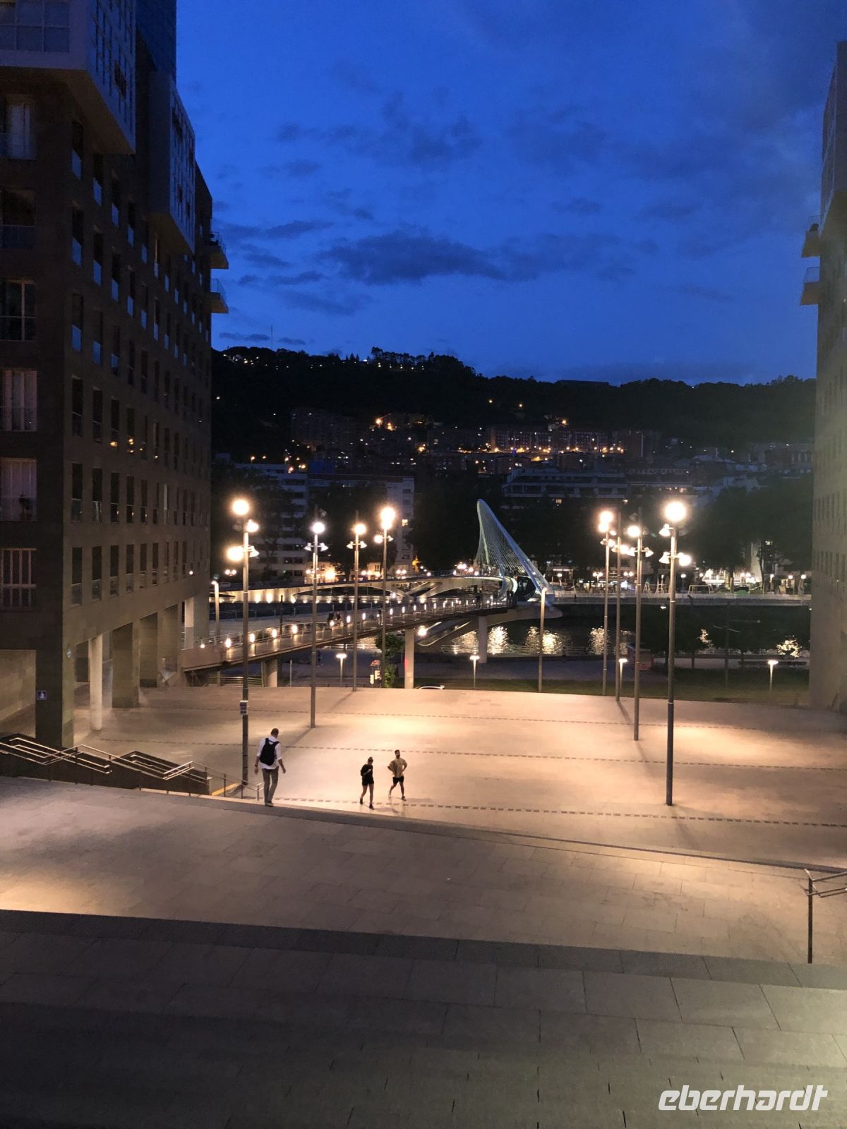 Doch schon mussten wir uns abwenden, denn der Magen knurrte, die Tapas-Bar wartete. Nein, die Pintxos warteten, denn hier heißen die Kleinigkeiten nicht Tapas. Doch egal wie sie nun genannt werden, wir ließen sie uns im Kneipenviertel Bilbaos schmecken – erst eine Gilda und danach noch 4 oder 5 andere typische Pintxos, passend dazu einen roten oder weißen Wein und zum Abschluss einen kleinen schwarzen Espresso. Bei soviel Essen war es hervorragend, dass wir bis zum Hotel noch einige 1000 Schritte durch die laue Sommernacht laufen durften.