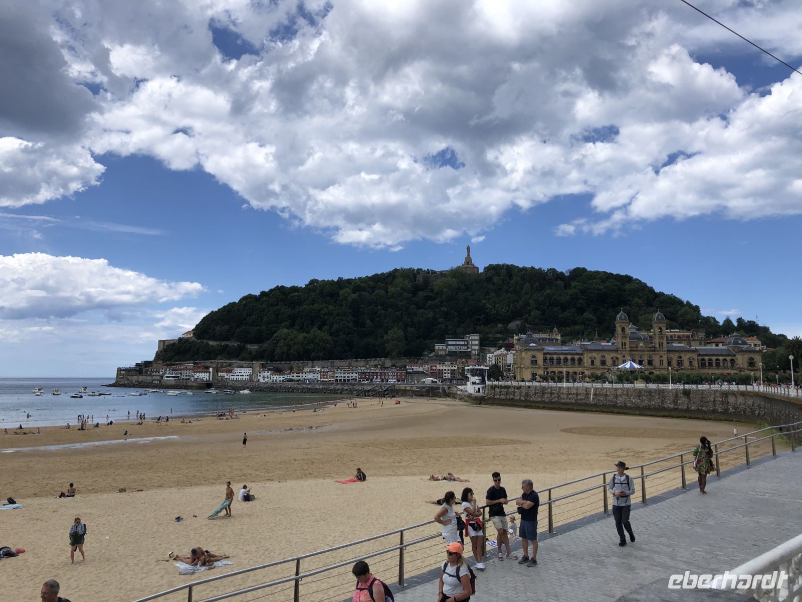 Gestärkt traten wir den Aufstieg mit zahlreichen Treppen zum Monte Urgull an. Stufe für Stufe näherten wir uns der ehemaligen Festung, wo sich seit 1950 die 12 Meter hohe Jesusstatue und ein kleines Museum befindet, was in der Vorsaison leider nur am Wochenende geöffnet hat. Trotz allem bot sich uns von hier oben ein fantastischer Ausblick auf die Stadt San Sebastian. Viel hat der Berg Urgull schon gesehen; er war 1794 Zeuge der ersten Kapitulation der Stadt vor den Franzosen und musste hilflos mit ansehen, wie die heutige Altstadt 1813 niederbrannte.