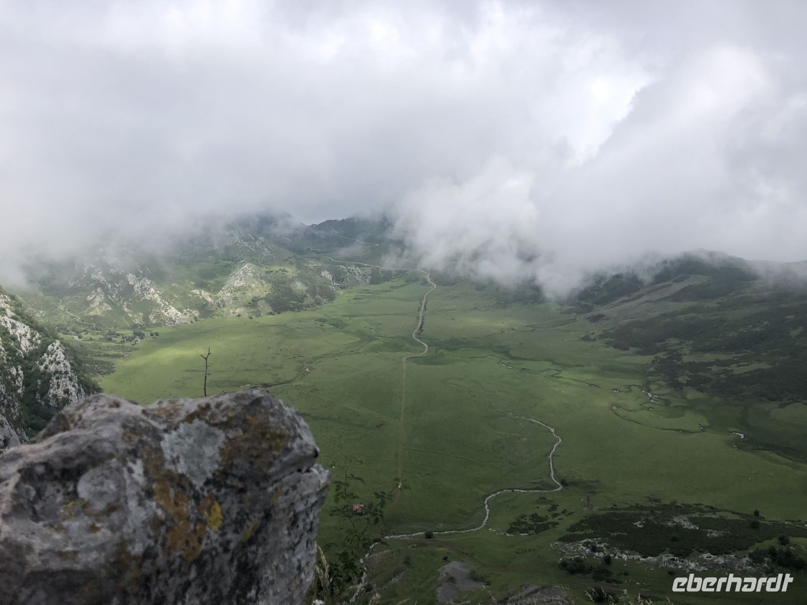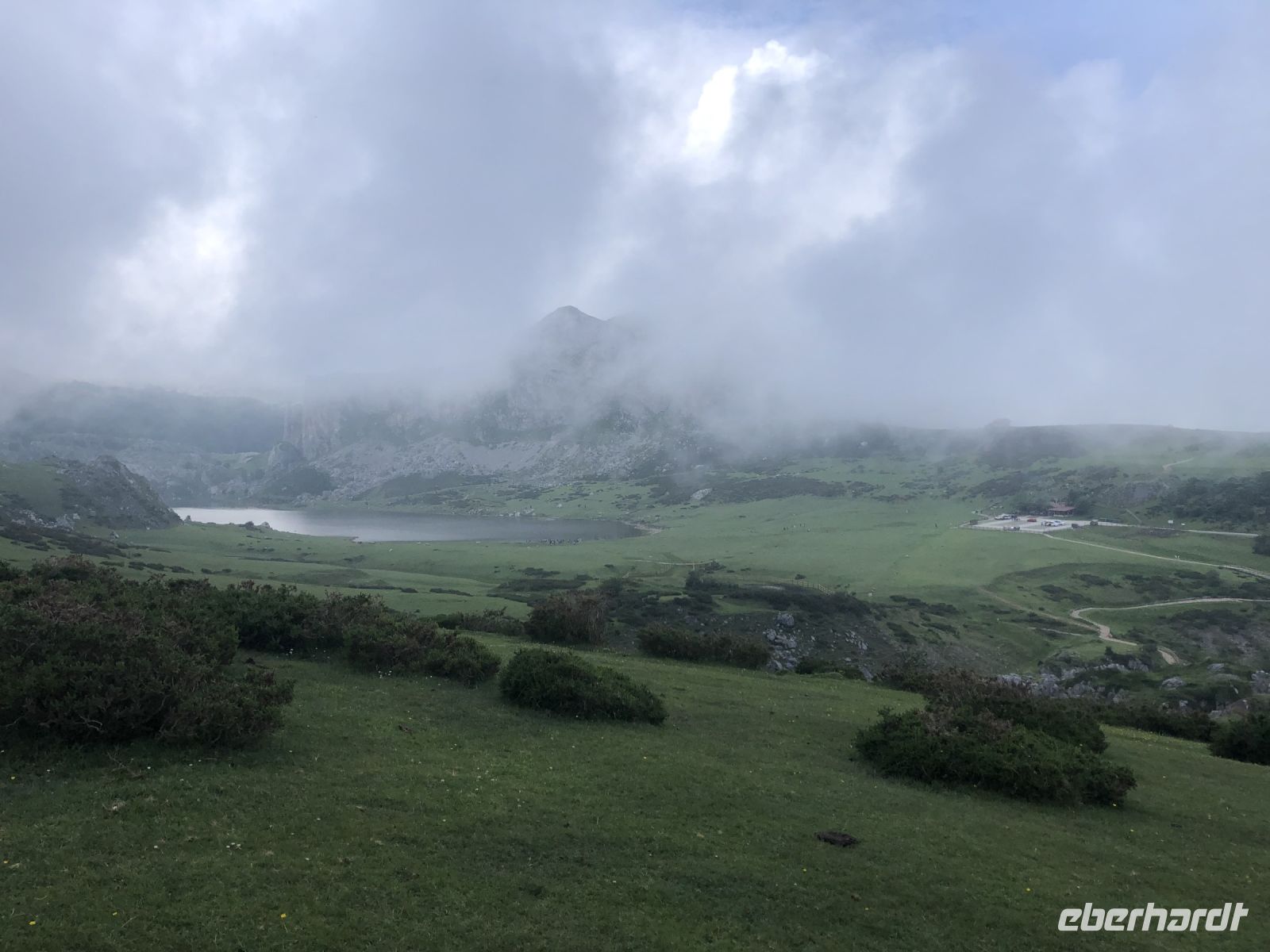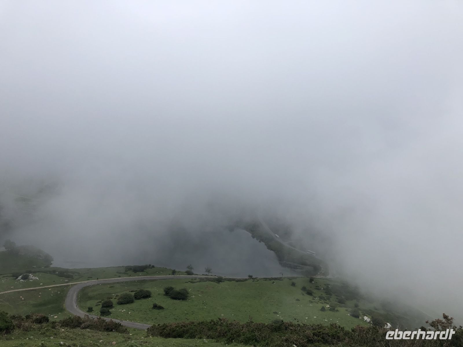 Wir erstiegen bei aufziehendem Nebel den Aussichtspunkt El Príncipe, von dem die Geduldigen auf die beiden Gletscherseen Enol und Ercina, die mehr als 1.000 m über dem Meeresspiegel liegen, schauen konnten.