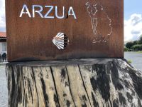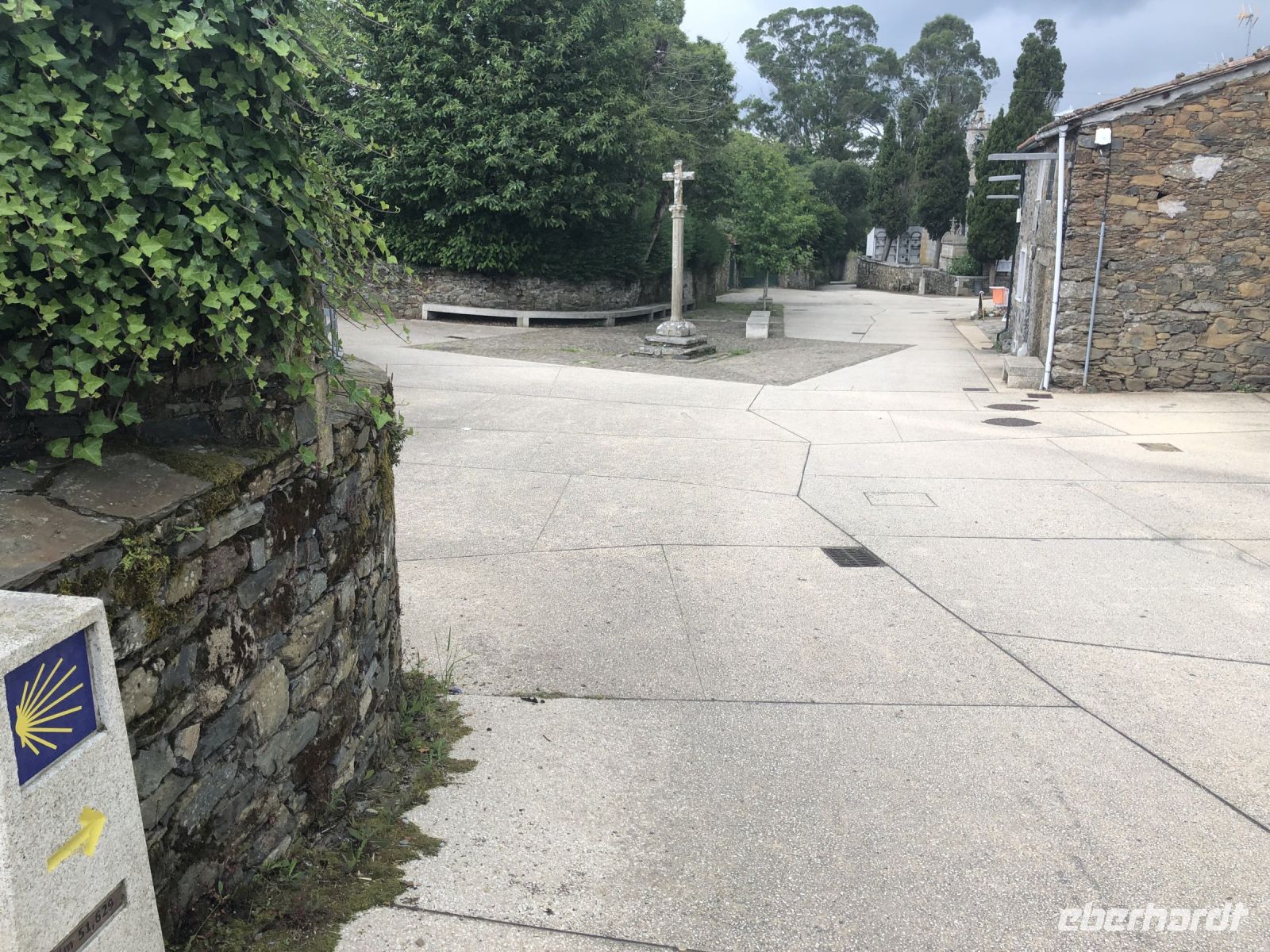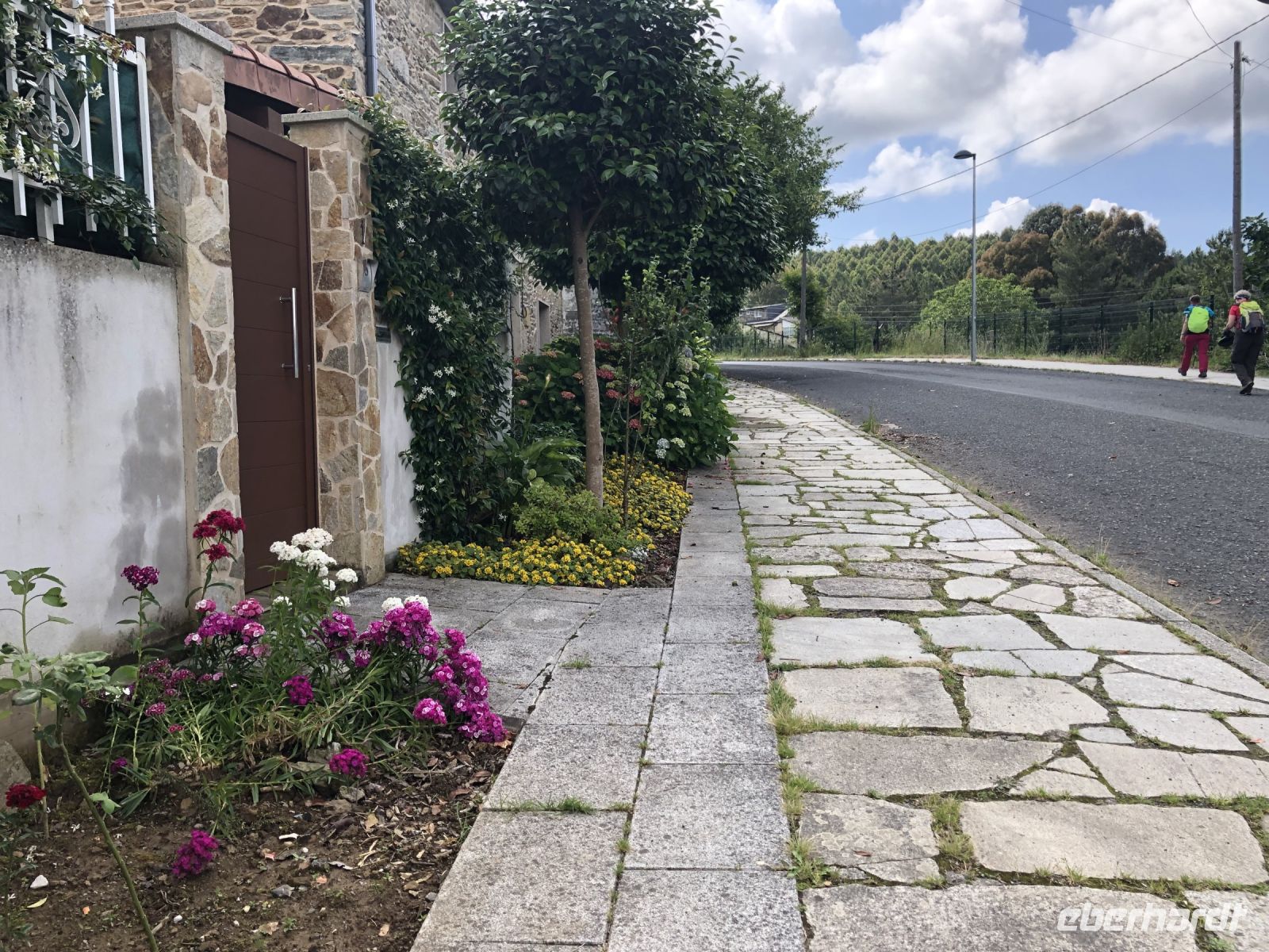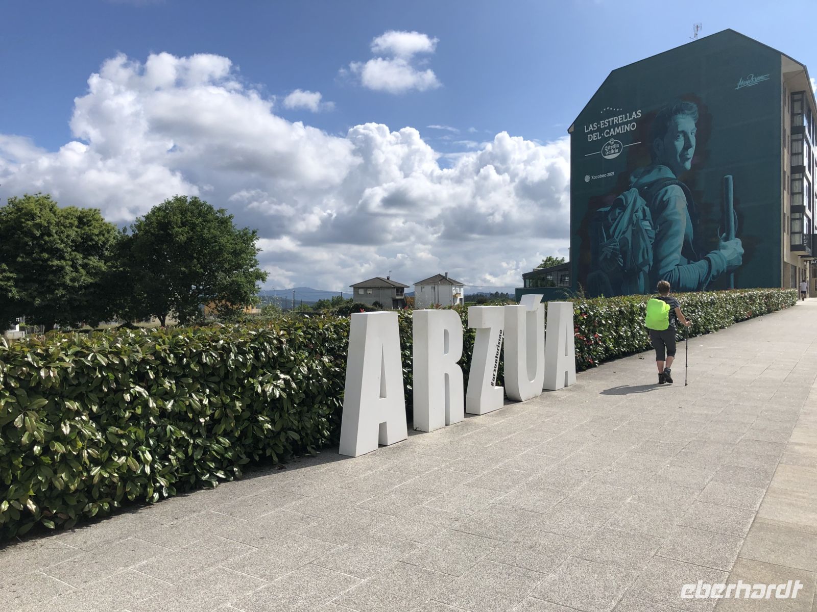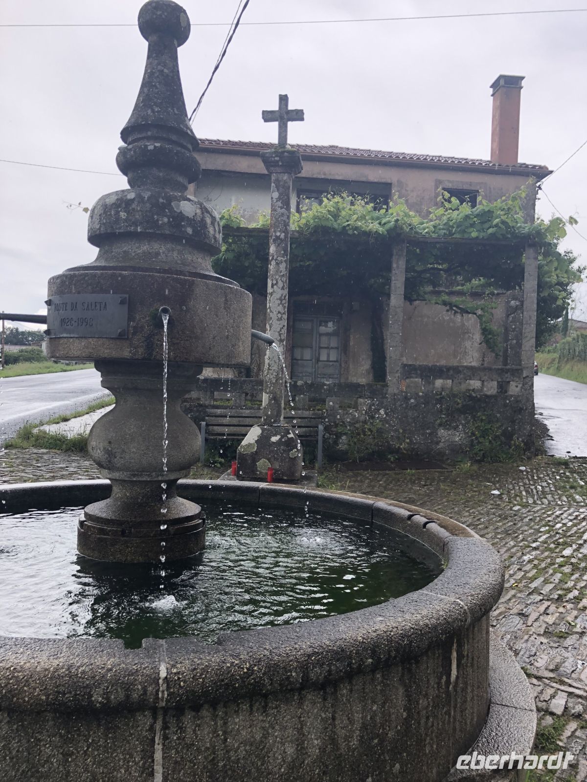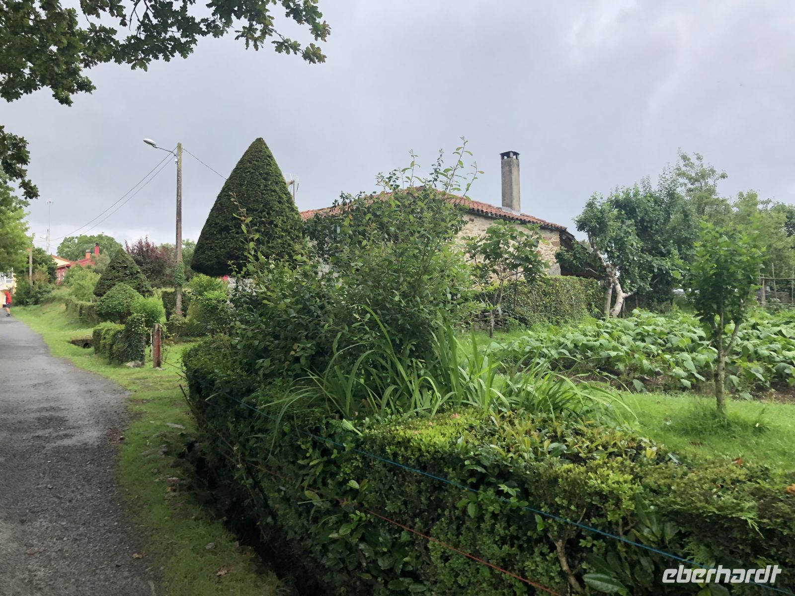Weitere 14 km wollten von uns gegangen werden. Über römische Brücken, durch schattige Wälder, an Flüsschen entlang, spürte so Mancher den Charme des Pilgerns. Das Wetter zeigte ebenfalls die Vielseitigkeit des Pilgerlebens: Regenponcho an, Stöcke raus, Poncho wegpacken, Sonnenhut aufsetzen, Regenschirm aufspannen und gleich als Sonnenschirm weiternutzen. Die tolle Eberhardt-Wandergruppe, die sich hier gefunden hatte, nahm das alles mit Humor. Und sie gab heute jedem den Freiraum, auch einige Kilometer allein zu laufen, in sich zu gehen und nachzudenken, um sich dann im Ort Boente an der Brücke, die den Fluss Iso überspannt oder erst in Arzúa wiederzutreffen.