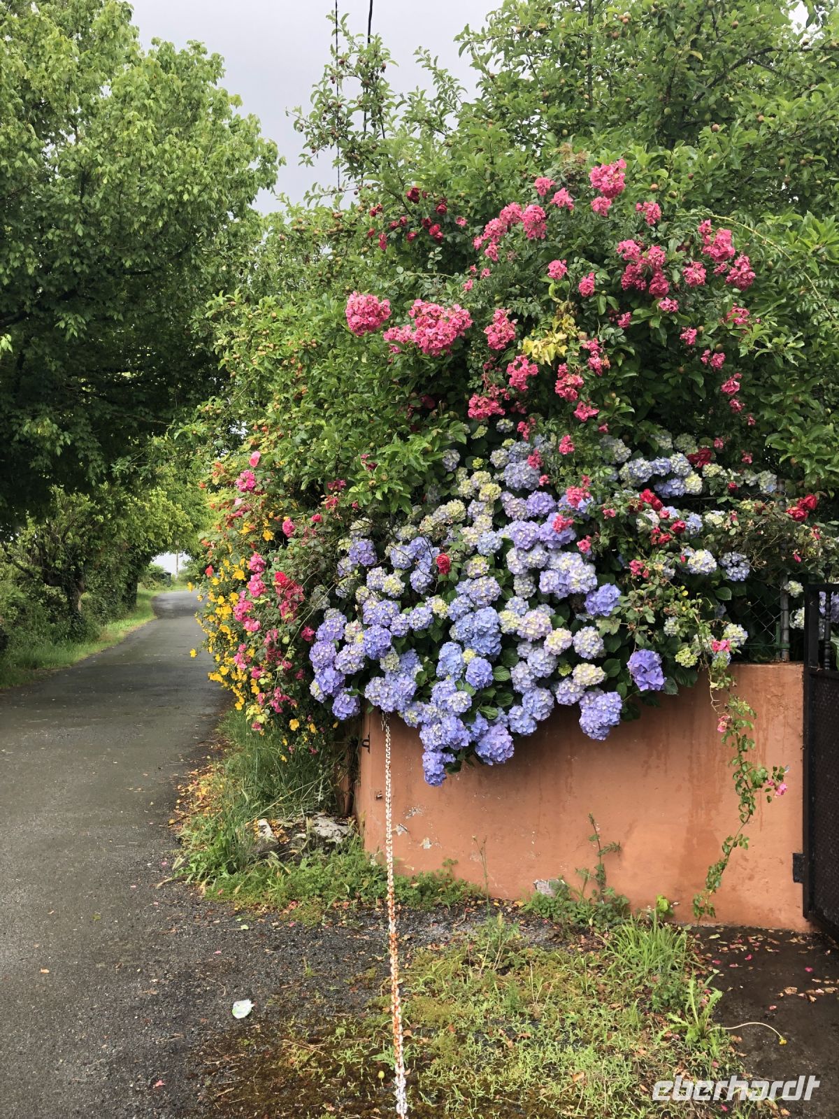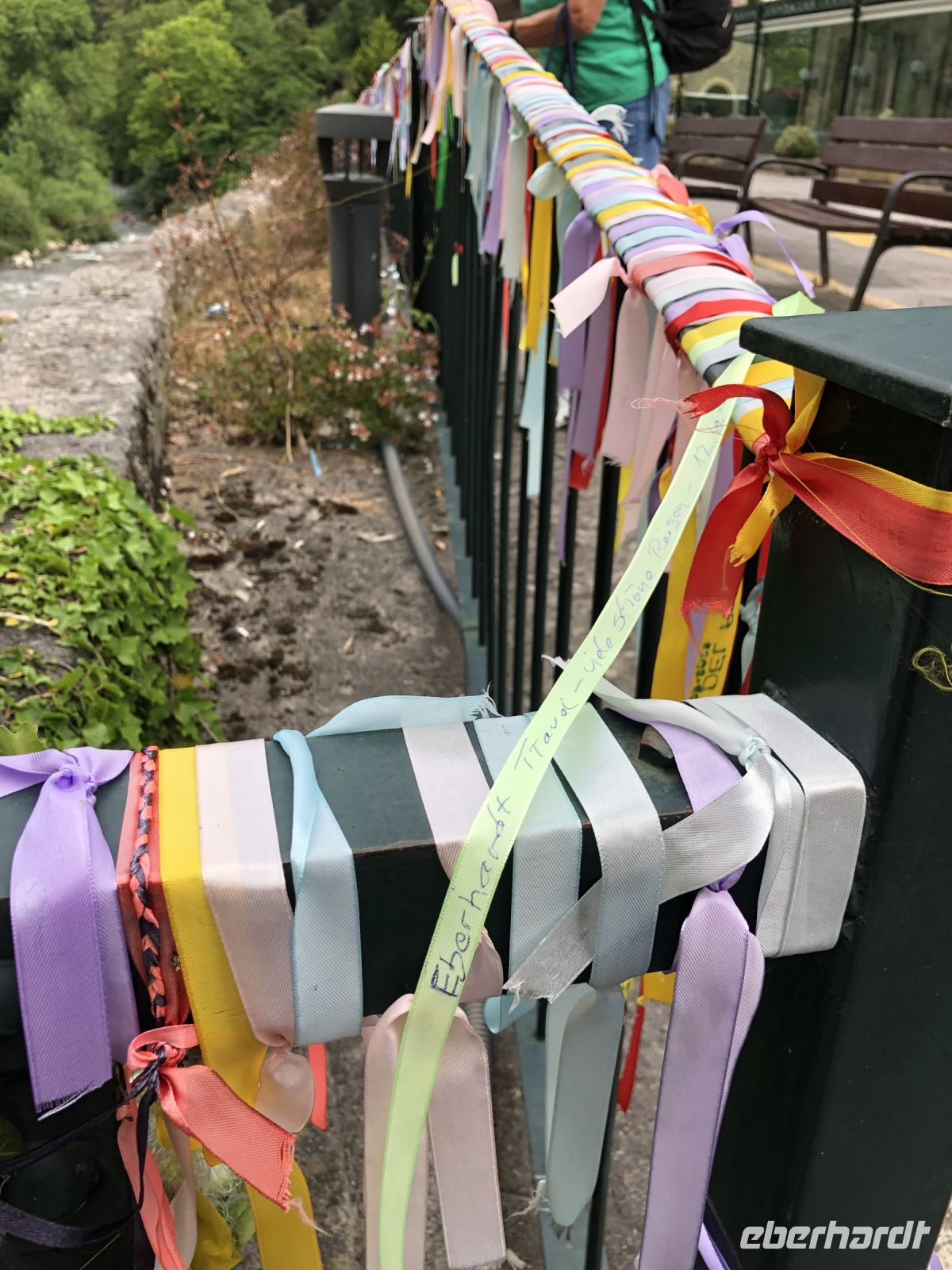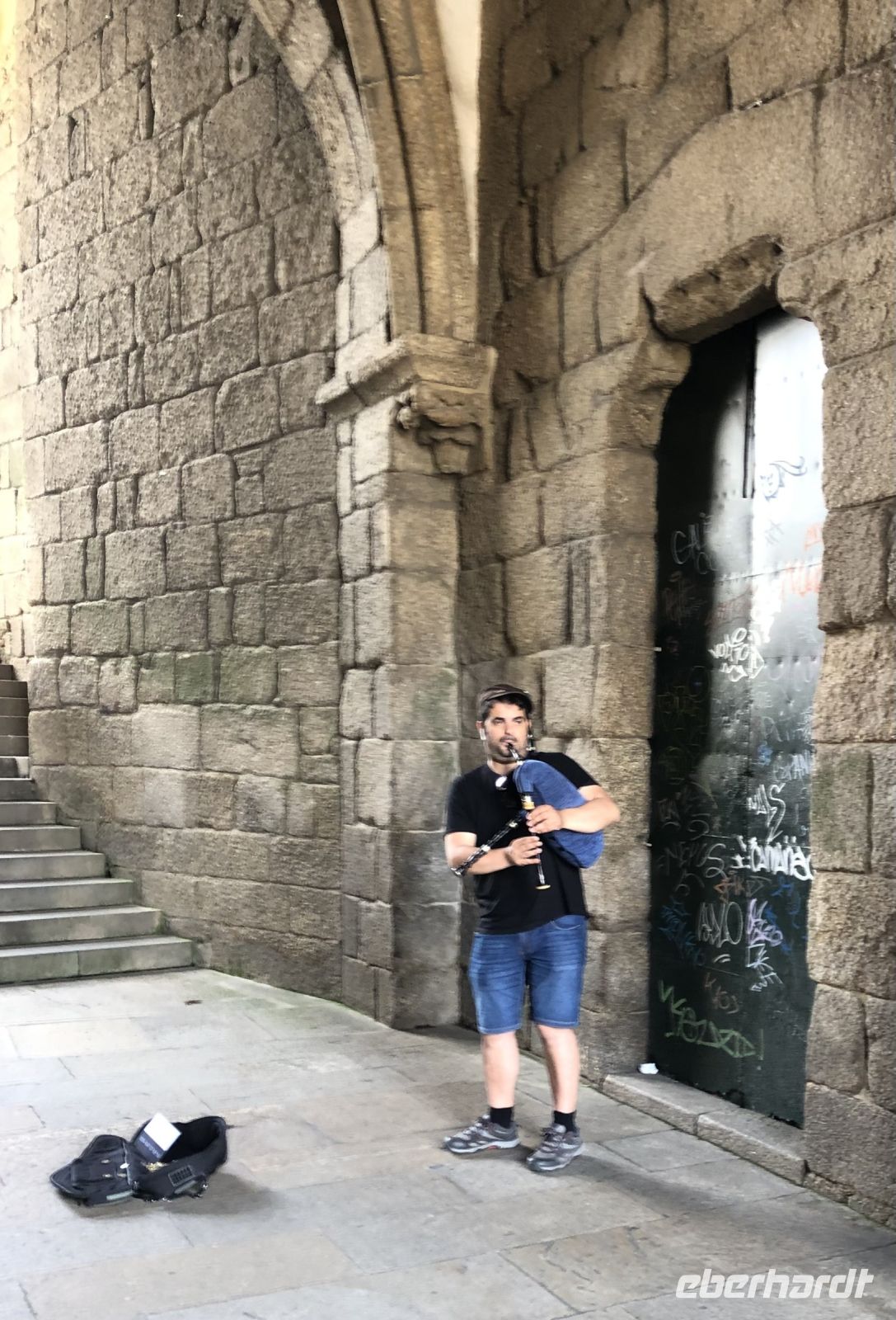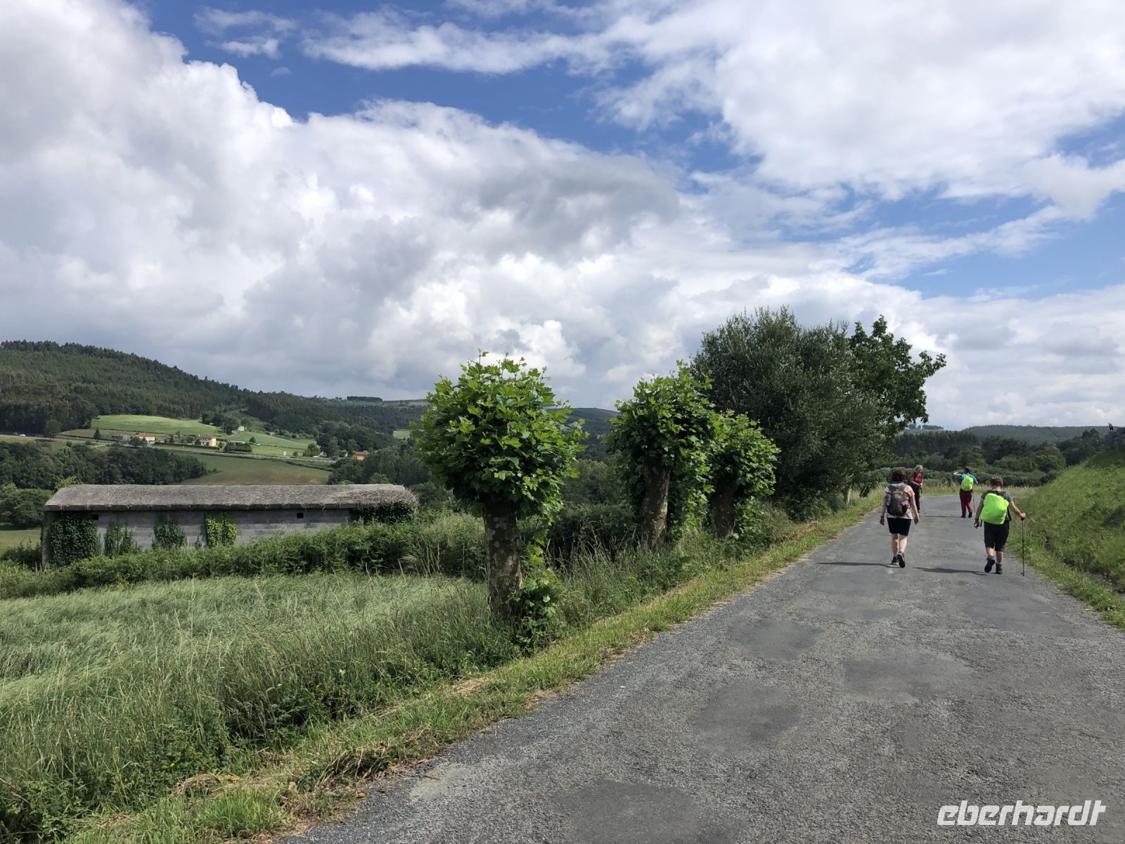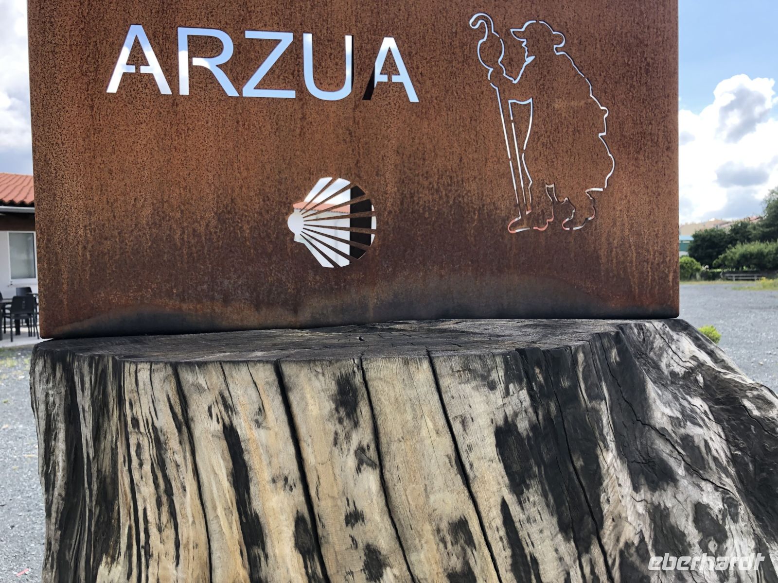 Weitere 14 km wollten von uns gegangen werden. Über römische Brücken, durch schattige Wälder, an Flüsschen entlang, spürte so Mancher den Charme des Pilgerns. Das Wetter zeigte ebenfalls die Vielseitigkeit des Pilgerlebens: Regenponcho an, Stöcke raus, Poncho wegpacken, Sonnenhut aufsetzen, Regenschirm aufspannen und gleich als Sonnenschirm weiternutzen. Die tolle Eberhardt-Wandergruppe, die sich hier gefunden hatte, nahm das alles mit Humor. Und sie gab heute jedem den Freiraum, auch einige Kilometer allein zu laufen, in sich zu gehen und nachzudenken, um sich dann im Ort Boente an der Brücke, die den Fluss Iso überspannt oder erst in Arzúa wiederzutreffen.