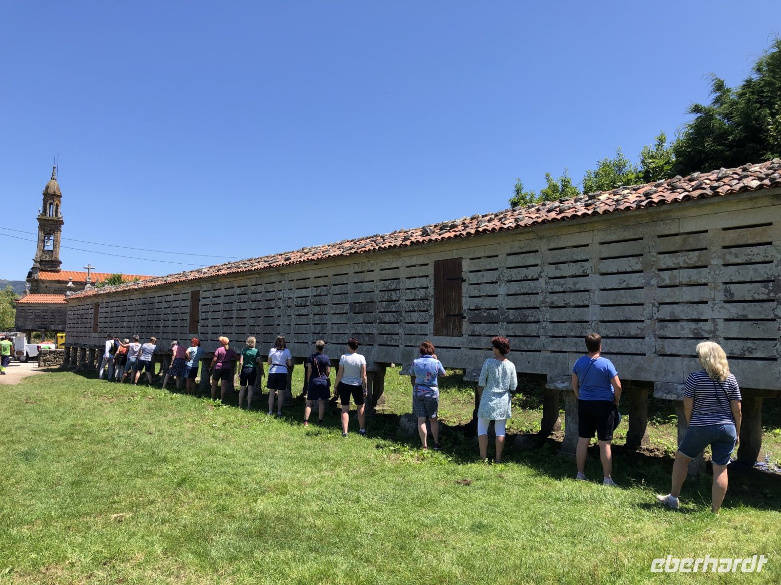 Weiter ging es nach Carnota, dem malerischen Dorf mit einem der längsten Getreidespeicher – einem sogenannten Horreo – Galiciens. Mehr Zeit wurde erbeten, weil der Ort einfach so wunderbar aus der Zeit gefallen schien. An der Küste entlang gelangten wir zum Weingut Granbazan, einem der Weingüter welches sich dem Albarino- Weißwein verschrieben hat. Das kühlere und feuchte Galicien bietet sich für den Anbau für Weißwein bestens an und in den letzten Jahrzehnten wurden Weinliebhaber auf diese Reben aufmerksam. Bedauerlicherweise bestand unsere Gruppe zum Großteil aus Rotweinliebhabern, so dass zwar der Verkostung sehr interessiert gefolgt wurde, jedoch hielt sich die Begeisterung beim Wein eher in Grenzen.