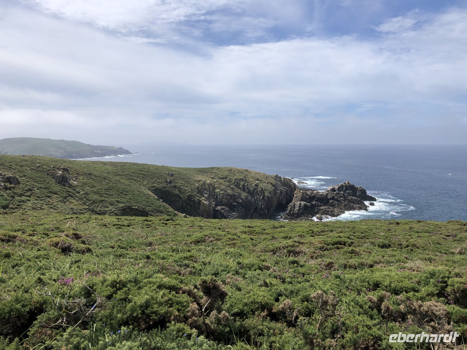 Gut geplant, erreichten wir das Kap noch vor dem großen Ansturm der Tagestouristen. Fast allein bummelten wir zum km 0 und anschließend zum Leuchtturm. Mit den Gedanken allein, konnte ein mitgebrachter Stein (der Sorgen und Nöte) am Kreuz abgelegt werden, der Blick in die Weite schweifen, um sich am Schluss wieder auf sich selbst zu konzentrieren. Wandernd wurden die umliegenden Aussichtspunkte erstiegen, den kratzigen Brombeersträuchern getrotzt und ein Urlaubs-Cortado getrunken.