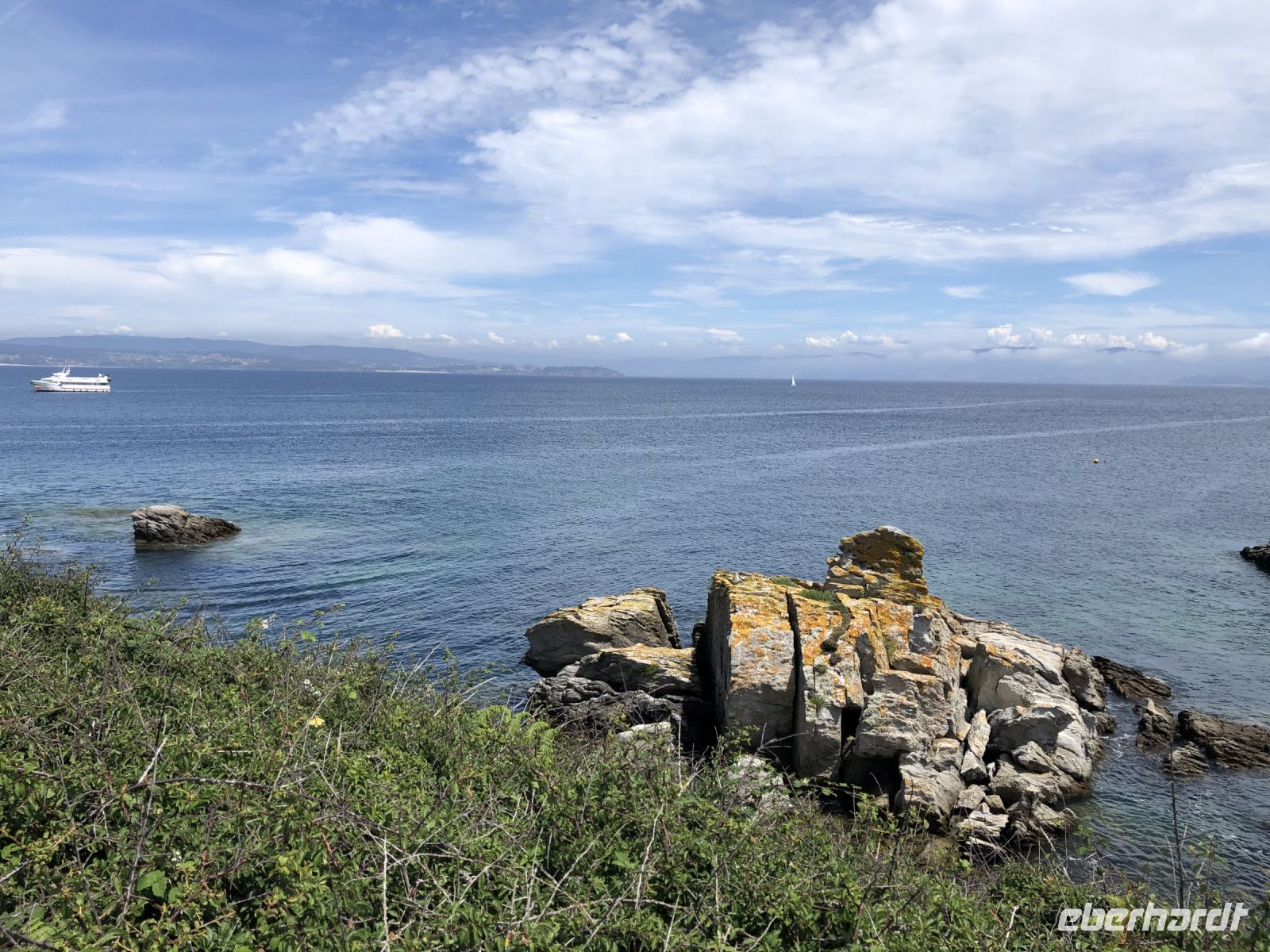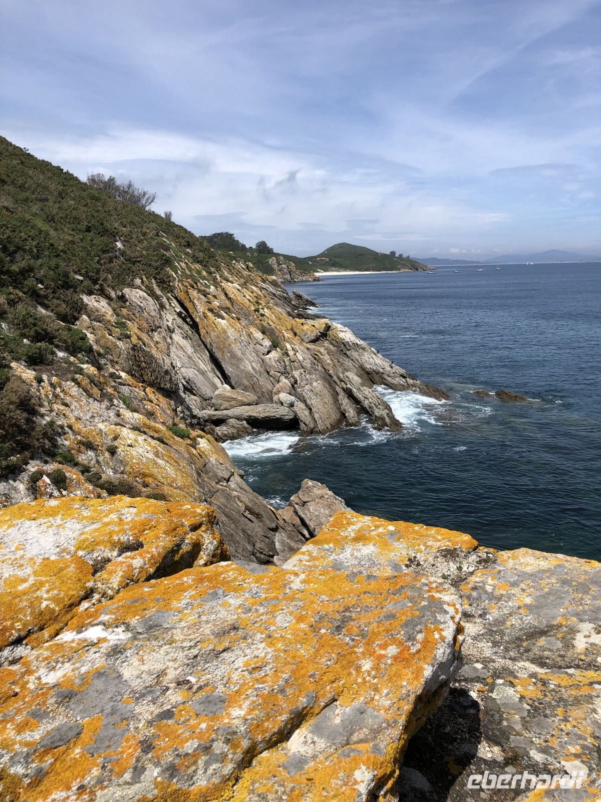 Der heutige Tag stand ganz im Zeichen der Erholung. Schifffahrt, Inselwanderung oder Baden im Atlantik. Am Fährhafen saßen die Fischerinnen und flickten die Netze. Bei strahlendem Sonnenschein schauten wir auf das blaue Meer, ein schöner Tag, um ein Naturparadies zu erkunden. Die Insel Ons gehört zum maritim-terrestrischen Naturpark der Atlantischen Inseln Galiciens. Dieser Archipel besteht aus der Hauptinsel Ons, der Insel Onza oder Onceta und weiteren kleineren Inseln.