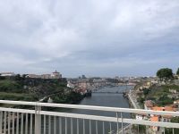Unser Spaziergang in Porto sollte mit der Überquerung wir der Brücke Ponte Dom Luis I. unterhalb vom Kloster Serra do Pilar beginnen. Allerdings warteten schon seit Anfang der Reise 3 Flaschen Txacoli darauf, von uns getrunken zu werden, Korkenzieher waren umsonst in Rucksäcken transportiert worden. Jetzt endlich ergab sich die Gelegenheit. Mit einen wunderschönen Ausblick auf die Brücke und die Altstadt von Porto mit einem Wein aus dem Baskenland, wo unsere Reise begonnen hatte, nahmen wir Abshcied von unserer Gruppe, der Reise, von Spanien und Portugal.