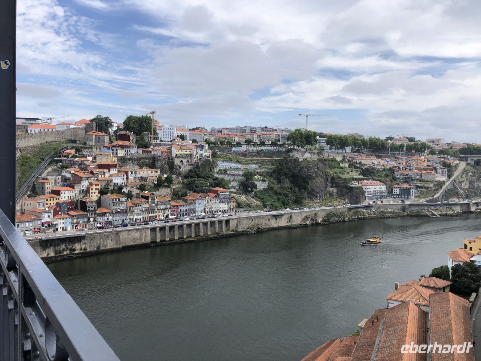 Dann liefen wir beschwingt über die Eisenfachwerkbrücke Dom Luis-I-Brücke (Ponte Luis I), die zwischen 1881 und 1888 erbaut wurde. Die Brücke aus Metall verbindet, die durch den Fluss Douro getrennten Städte Porto und Vila Nova de Gaia miteinander und wurde von dem Ingenieur Teofilo Seyrig, einem Schüler von Gustave Eiffel, entworfen.