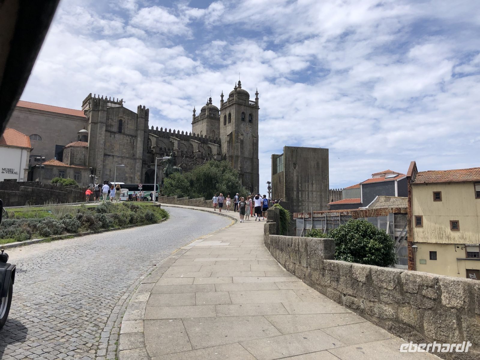 Wir kamen direkt auf den Platz vor der Kathedrale Sé do Porto heraus. Mit dem Bau der Kathedrale wurde schon im 12. Jahrhundert begonnen, und im Laufe ihrer Geschichte hat sie zahlreiche Umbauten erfahren. Sie ist eine Mischung verschiedener Stilrichtungen, der größte Teil ist barock, die Struktur der Fassade romanisch, während der Kreuzgang und die Kapelle San Juan Evangelista gotisch sind.
