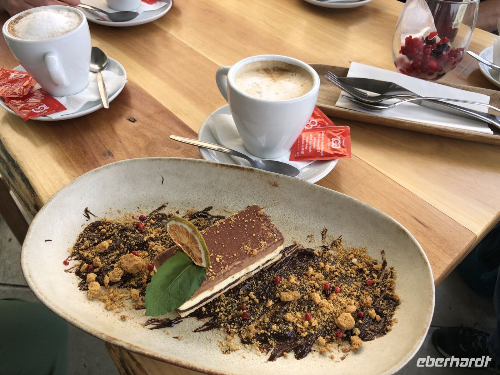 An der Seilbahn-Station fanden wir schlussendlich ein Restaurant mit fantastischer Aussicht auf die Altstadt von Porto. Hier ließen wir uns nieder, genossen einen frischen Orangensaft, probierten zum ersten mal weißen Portwein oder schwelgten in puren Schokoladenträumen.