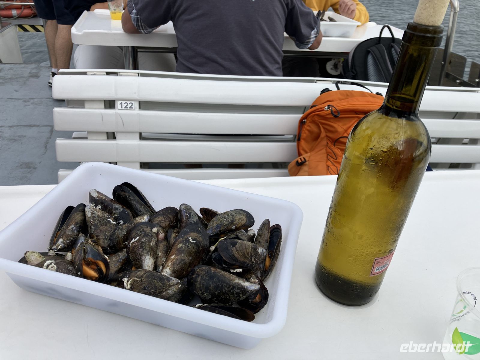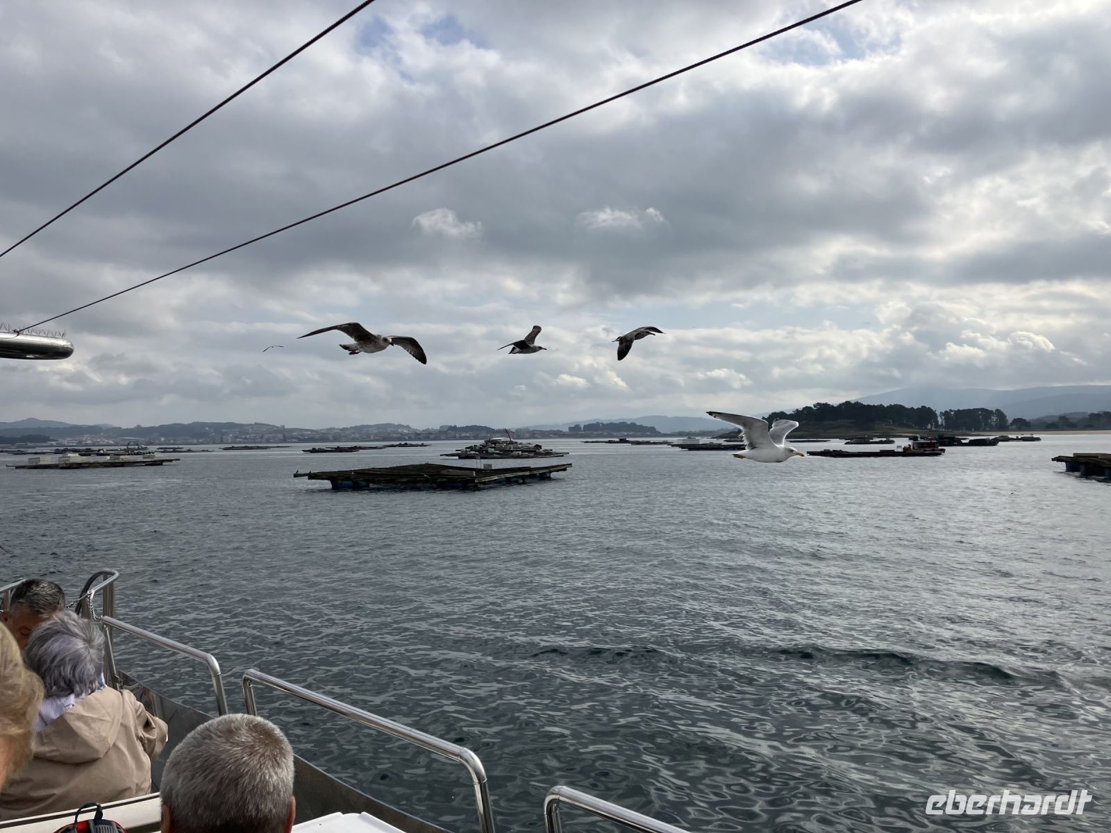 Am heutigen Tag fuhren wir zur Halbinsel O’Grove. Wir waren gespannt, denn die Küstenorte Galiciens sind berühmt für ihre Muschel- und Austernzucht. Schon von weitem sahen wir die Holzplattformen im Wasser schwimmen, an denen unterhalb an Seilen die verschiedensten Muscheln bis zu ihrer Ernte hängen. Das Zusammentreffen zweier Strömungen und der Reichtum an Plankton in den Rías sind unter anderem dafür verantwortlich, dass die Meeresfrüchte hier so gut gedeihen. Gemeinsam mit einer Gruppe aus Madrid startete das Ausflugsboot hinaus zu einer der Muschelbänke, wo uns die Arbeitsweise der Fischer erklärt wurde. An Bord verkosteten wir bei Musik und mit guter Laune die fangfrischen Muscheln mit einem Glas Wein. Auch Austern fanden nach kurzen Zögern ihren Absatz. Tanzend fuhren wir in den Hafen ein und waren ein klein wenig traurig, dass dieser Ausflug so schnell zu Ende ging.