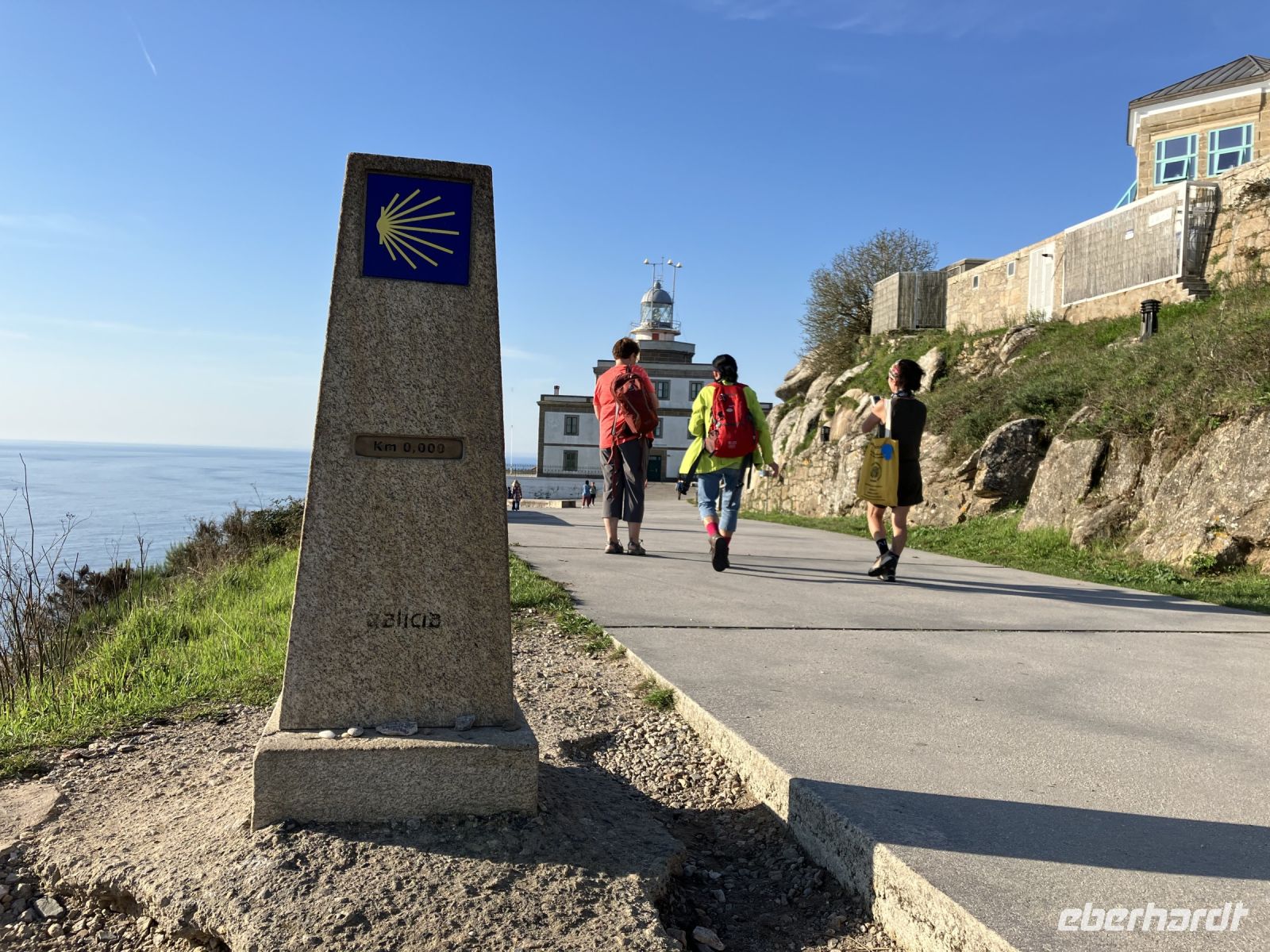 Gut geplant, erreichten wir das Kap noch vor dem großen Ansturm der Tagestouristen. Nur ein Bus asiatischer Touristen stand bereits mit Kameras und Drohnen ausgerüstet am km 0. Der letzte Stempel konnte eingeholt werden, das weite Meer lag vor uns. Mit den Gedanken allein, konnte der Stein (der Sorgen und Nöte) am Kreuz abgelegt werden, der Blick in die Weite schweifen, um sich am Schluss wieder auf sich selbst zu konzentrieren.