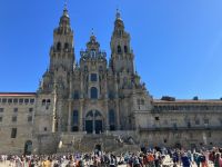 Am Eingang zum Plaza Obradoiro begrüßte uns ein Gaita-Spieler mit dem galicischen Dudelsack. Ergriffen schauten wir auf den von Menschen gefüllten Platz, die sich glücklich in den Armen lagen oder wie wir den Blick auf die fantastische West-Fassade der Kathedrale richteten. Diese wurde von Fernando de Casas y Novoa geschaffen und gilt als Meisterwerk des spanischen Barocks. Schnell spurteten wir weiter zum Seiteneingang der Kathedrale, um der Messe beizuwohnen. Doch die Warteschlange lies all unsere Hoffnung schwinden. Wir spazierten noch ein wenig durch Santiago bevor wir uns Richtung Hotel aufmachten. Eine kleine Siesta hatten wir uns wirklich verdient. Am Abend erreichten wir rechtzeitig die Messe, nur der Botafumeiro bewegte sich heute nicht. Früher konnte man den Botafumeiro der Kathedrale von Santiago fast jeden Tag in Betrieb sehen. Allerdings zeigten Restaurationsarbeiten im Jahr 2006, den Verschleiß des Seils und des Weihrauchfasses und der tägliche Gebrauch des riesigen Pendels wurde beträchtlich eingeschränkt.