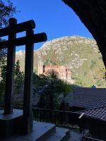 Auch wenn wir schon ziemlich müde waren, nahmen wir uns die Zeit, um kurz im Kloster Santo Toribio de Liébana (oder Santuario del Lignum Crucis genannt) einen Rundgang zu unternehmen. Wir wandelten schließlich auf Pilgerpfaden und das Kloster ist ein berühmter Wallfahrtsort des Camino de Liebana, eine Erweiterung des Nördlichen Küstenweges. Zusätzlich ist dieses Jahr ein Heiliges Jahr, da der 16. April 2023 auf einen Sonntag fiel. Somit kommen sehr viele Pilger, um den größten Schatz des Klosters, die Reliquie eines Teils des Heiligen Kreuzes zu sehen, die von Turibius von Astorga im 5. Jahrhundert aus dem Heiligen Land mitgebracht worden sein soll.