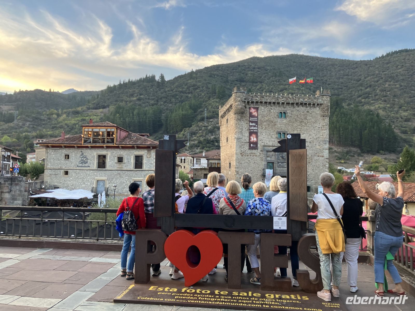 Mit unserem hilfsbereiten Busfahrer Juan fuhren wir in den ältesten Teil des Nationalparks Pico de Europa, bzw. bis in den Wallfahrtsort Covadonga. Dort wollten wir den öffentlichen Bus nutzen, um bis zum Besucherzentrum des Parkes zu gelangen. Doch schon der erste Bus war zu voll, so versuchten wir unser Glück an der vorhergehenden Haltestelle, aber auch dort standen schon viele Ausflügler, welche den Sonnenschein nutzen wollten. Geduldig reihte sich unsere Gruppe ein und verbrachte die Zeit mit anregenden Gesprächen.