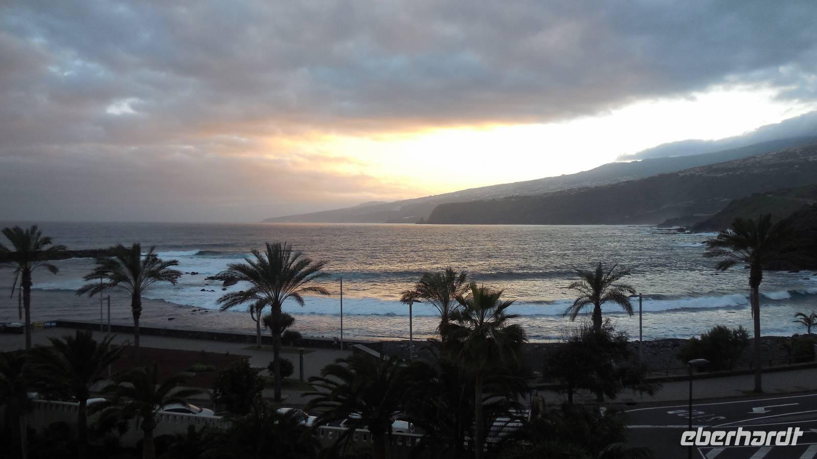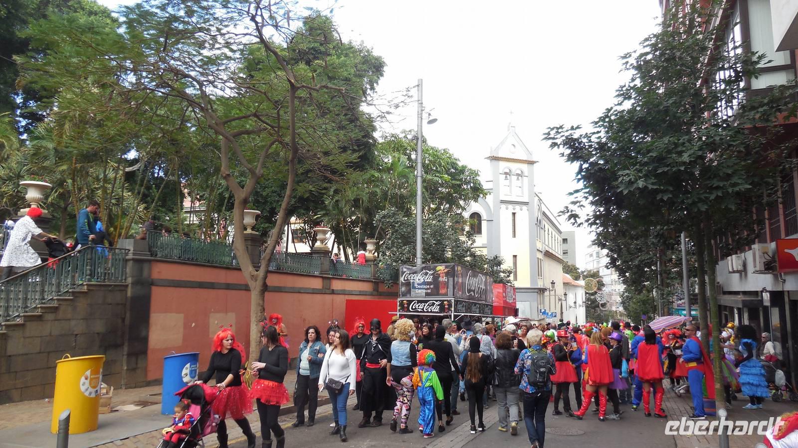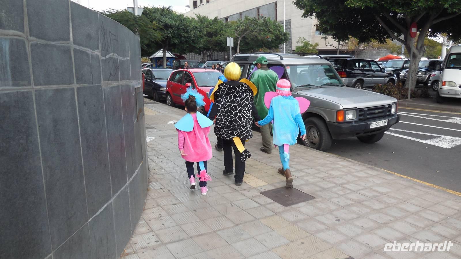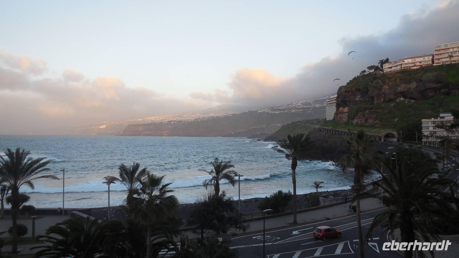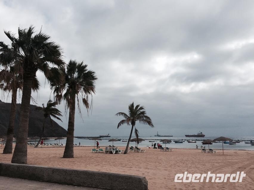 Nach 4 1/2 Stunden Flug erreichen neun Eberhardt Gäste den Südflughafen Teneriffas, unsere zwei Düsseldorfer Gäste sind bereits früher angereist. Der Transferfahrer bringt uns in die pulsierende Hauptstadt Santa Cruz, wo gerade der zweitgrößte Karneval der Welt stattfindet! Nach dem Check In zieht es uns sogleich in die Stadt. Bei einem langen Stadtspaziergang erleben wir kanarische Lebensfreude und Feierlaune. Die Straßen bersten von tausenden feiernden und verkleideten Canarios. Wir lassen uns von der allgemein guten Laune anstecken und folgen den Strömen durch die Stadt bis hinunter zur Hafenstraße. Vorbei an Konzerten und Rummeln erreichen wir einen Aussichtspunkt von welchem aus wir einen wunderbaren Blick auf das Auditorio, die berühmte Oper von Santa Cruz, haben.