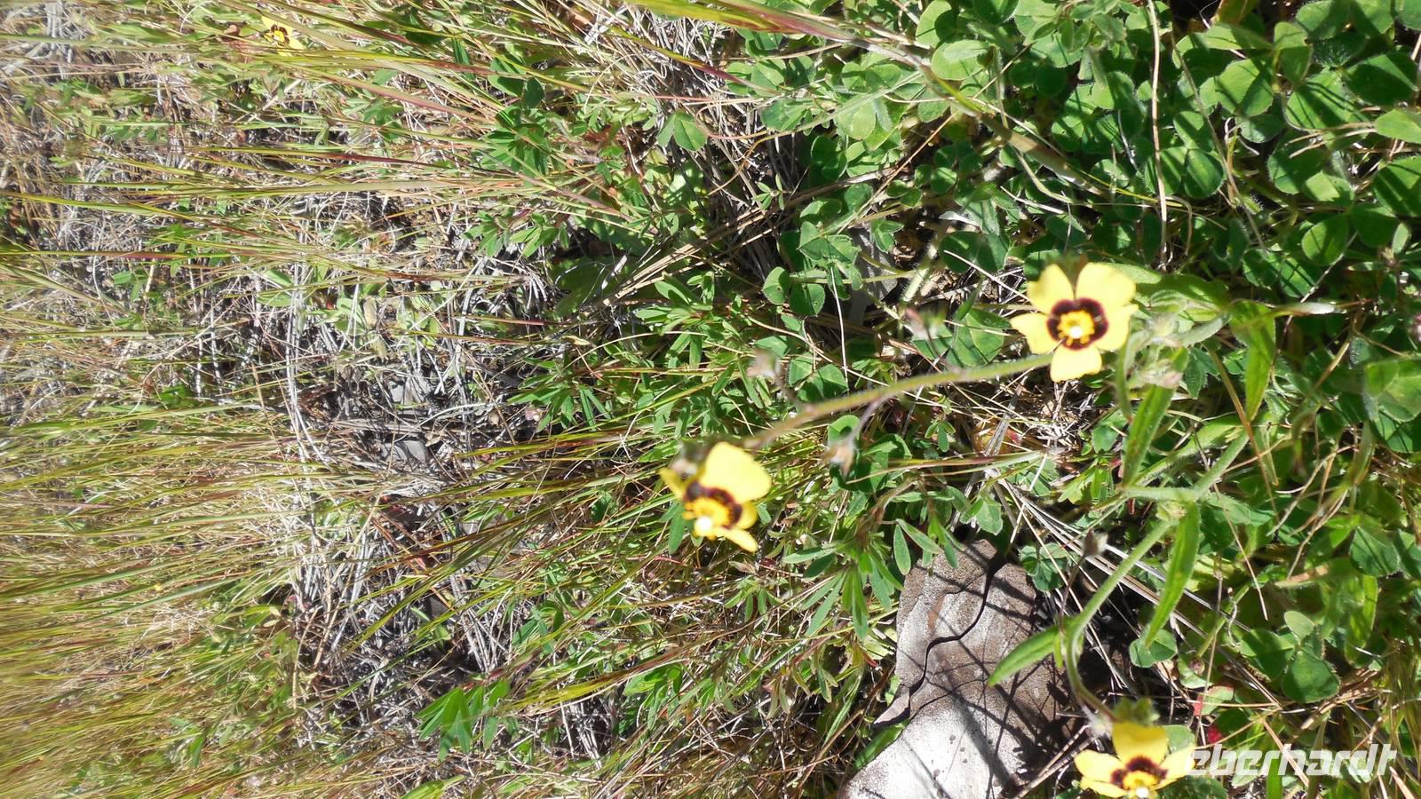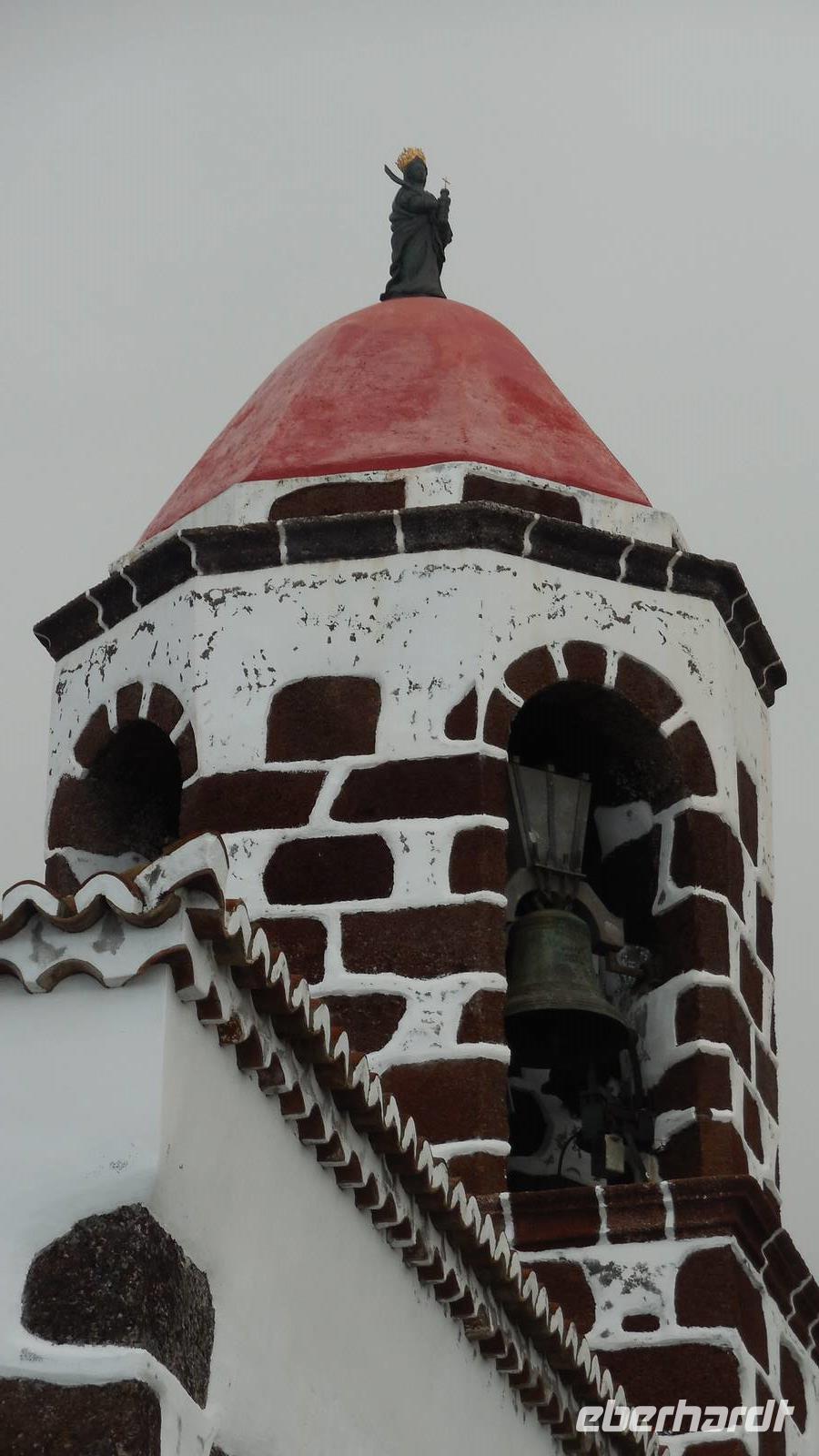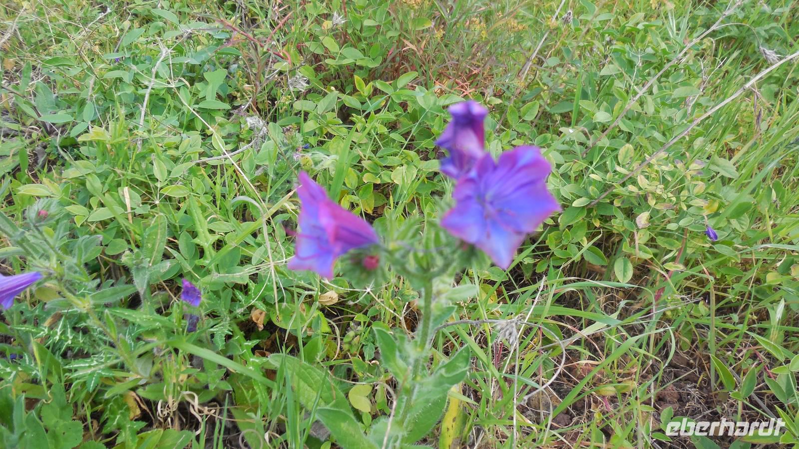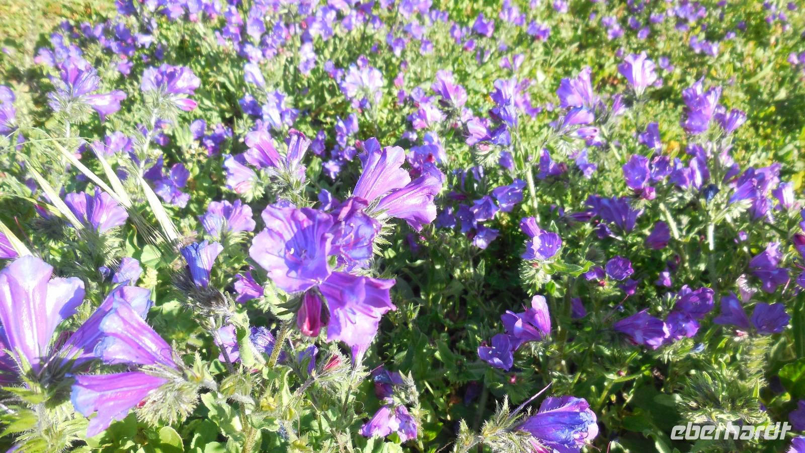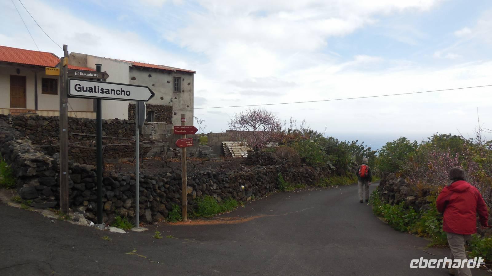 Nach einem leckeren Frühstück starten wir heute etwas später gen Küste, denn wir wollen ins Tal bis an die Badestelle bei La Caleta wandern. Heute gibt es außnahmsweise mal keinen dichten Nebel, dafür aber einen ziemlich starken Wind. Unser Weg führt uns zunächst ins idyllische Dörfchen Echedo, welches aufgrund seiner günstigen Lage und seiner fruchtbaren Erde bei Einsiedlern besonders beliebt ist. Nach einer kleinen Rast auf dem Dorfplatz an der Dorfkirche, an dem auch die Dorffeste stattfinden, geht es weiter durch die Weinterrassen in das Lavagebiet. Viele verlassene Häuschen stehen hier. Diese wurden oft von früheren Einwohnern, welche nach Venezuela ausgewandert sind, zurückgelassen. Außer Wein und Steinrosen gedeiht hier auf dem Lavagestein nicht viel. Immer tiefer kommen wir in das Lavagebiet und bald besteht unser Weg noch aus Geröll und schönen grünen Steinrosen. Wir finden hübsche Lavasteine, mitunter blau-lila-rot gefärbt. Gut aufpassen müssen wir hier, denn als wir den Bergkamm entlang gehen, gähnt links neben uns sogleich der Abgrund. El Hierro ist eine sehr steile Insel, wie wir heute deutlich bemerken. Wir haben die ganze Zeit das blaue Meer im Blick, zwischendurch sehen wir von weiten sogar die Spitze des Teide über den Wolken. Eine Mittagsrast legen wir an der Wegkreuzung zwischen Malpaso, Valverde, Echedo und Valverde ein. Hier haben wir einen tollen Blick auf das untenliegende Dörfchen Tamaduste und den Flughafen von El Hierro. Wir verschnaufen eine Weile und lassen die Aussicht auf uns wirken. Dann geht es weiter hinunter ins Tal, vorbei oberhalb von Tamaguste am Berg entlang nach La Caleta. Reiseleiter Ralf zeigt uns interessante Gewächse, wie die Wolfsmilchbäume. Merkwürdigerweise finden wir auf dieser Strecke, hoch oben auch Muscheln und große Schneckengehäuse.