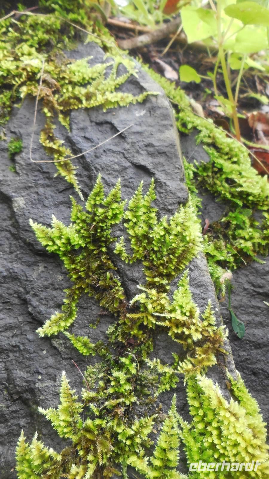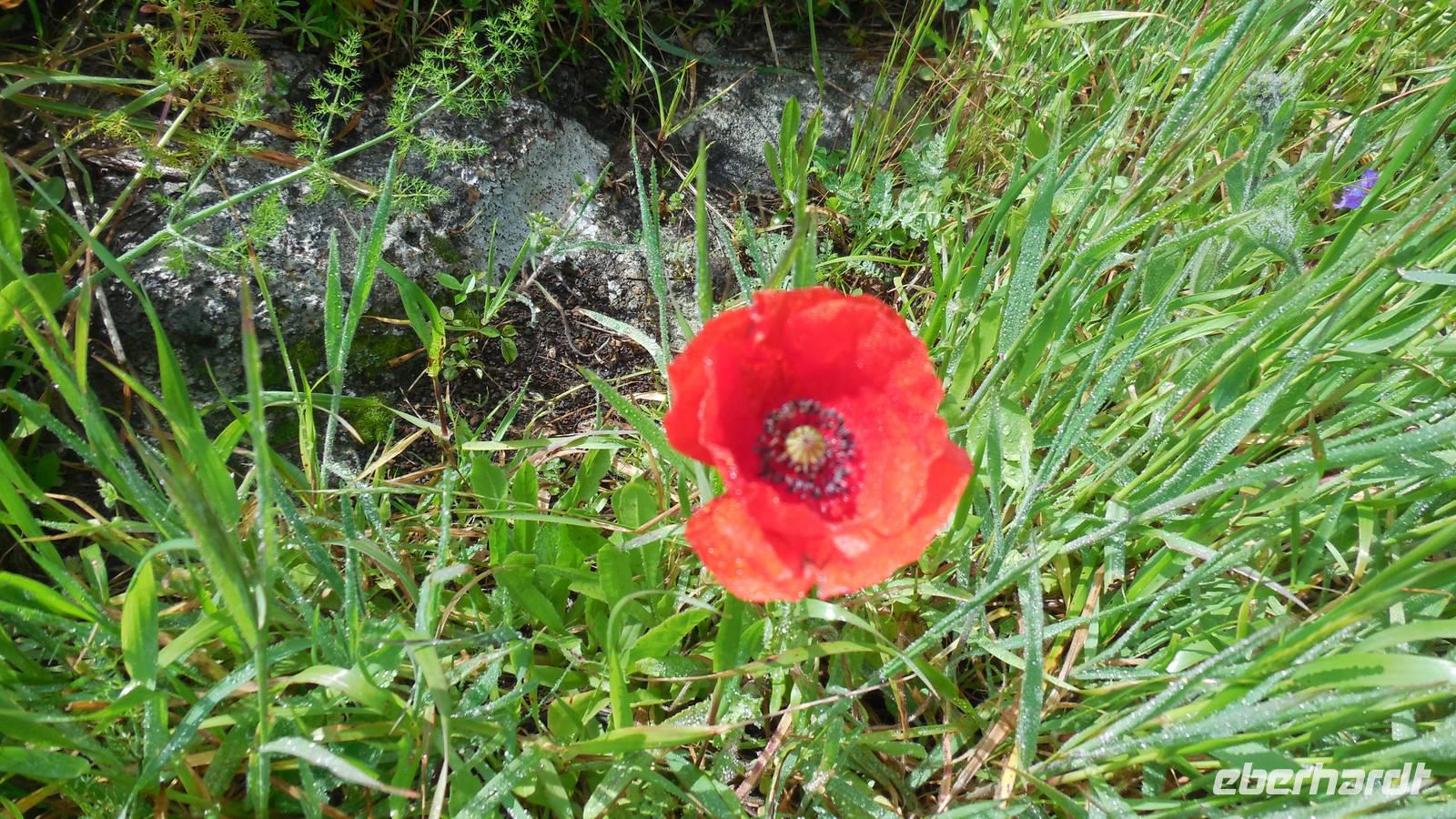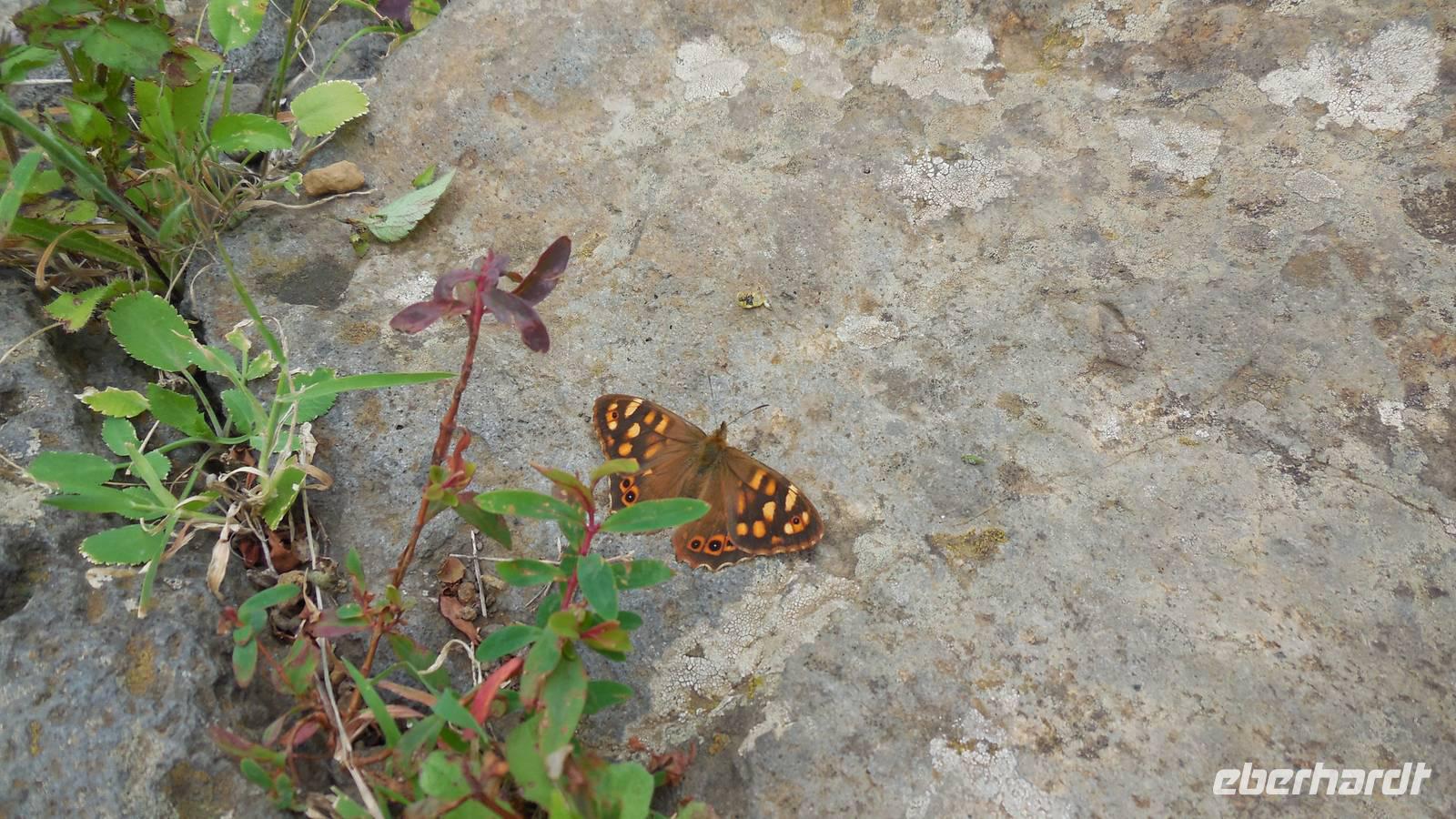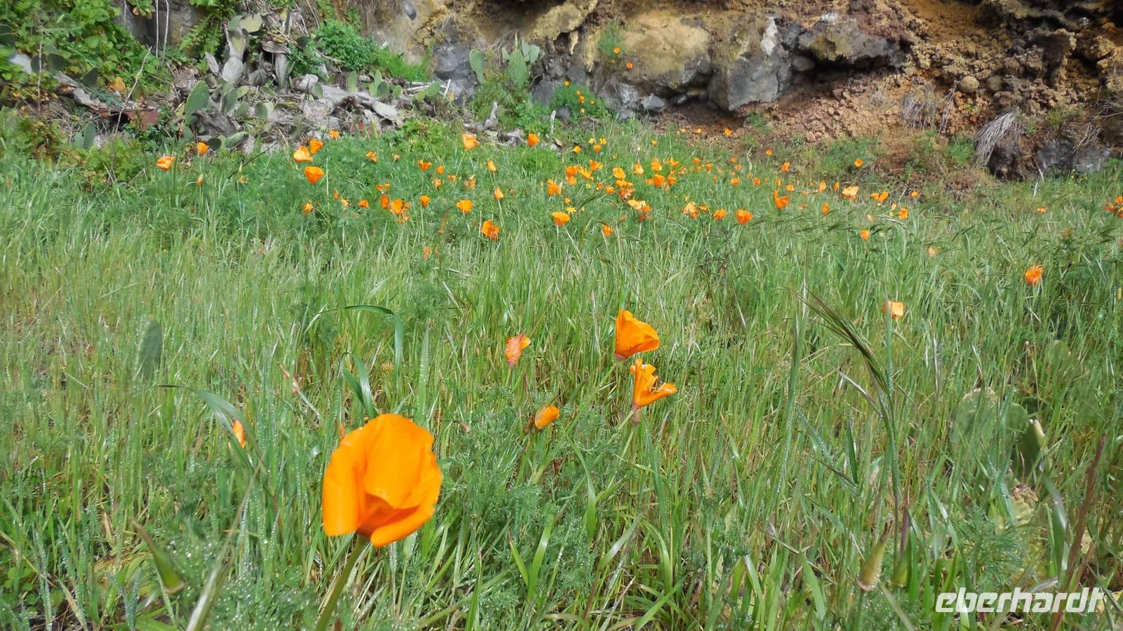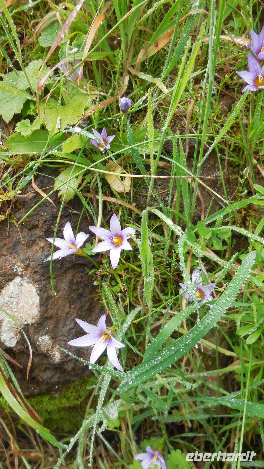 Nach einem leckeren Frühstück starten wir heute etwas später gen Küste, denn wir wollen ins Tal bis an die Badestelle bei La Caleta wandern. Heute gibt es außnahmsweise mal keinen dichten Nebel, dafür aber einen ziemlich starken Wind. Unser Weg führt uns zunächst ins idyllische Dörfchen Echedo, welches aufgrund seiner günstigen Lage und seiner fruchtbaren Erde bei Einsiedlern besonders beliebt ist. Nach einer kleinen Rast auf dem Dorfplatz an der Dorfkirche, an dem auch die Dorffeste stattfinden, geht es weiter durch die Weinterrassen in das Lavagebiet. Viele verlassene Häuschen stehen hier. Diese wurden oft von früheren Einwohnern, welche nach Venezuela ausgewandert sind, zurückgelassen. Außer Wein und Steinrosen gedeiht hier auf dem Lavagestein nicht viel. Immer tiefer kommen wir in das Lavagebiet und bald besteht unser Weg noch aus Geröll und schönen grünen Steinrosen. Wir finden hübsche Lavasteine, mitunter blau-lila-rot gefärbt. Gut aufpassen müssen wir hier, denn als wir den Bergkamm entlang gehen, gähnt links neben uns sogleich der Abgrund. El Hierro ist eine sehr steile Insel, wie wir heute deutlich bemerken. Wir haben die ganze Zeit das blaue Meer im Blick, zwischendurch sehen wir von weiten sogar die Spitze des Teide über den Wolken. Eine Mittagsrast legen wir an der Wegkreuzung zwischen Malpaso, Valverde, Echedo und Valverde ein. Hier haben wir einen tollen Blick auf das untenliegende Dörfchen Tamaduste und den Flughafen von El Hierro. Wir verschnaufen eine Weile und lassen die Aussicht auf uns wirken. Dann geht es weiter hinunter ins Tal, vorbei oberhalb von Tamaguste am Berg entlang nach La Caleta. Reiseleiter Ralf zeigt uns interessante Gewächse, wie die Wolfsmilchbäume. Merkwürdigerweise finden wir auf dieser Strecke, hoch oben auch Muscheln und große Schneckengehäuse.