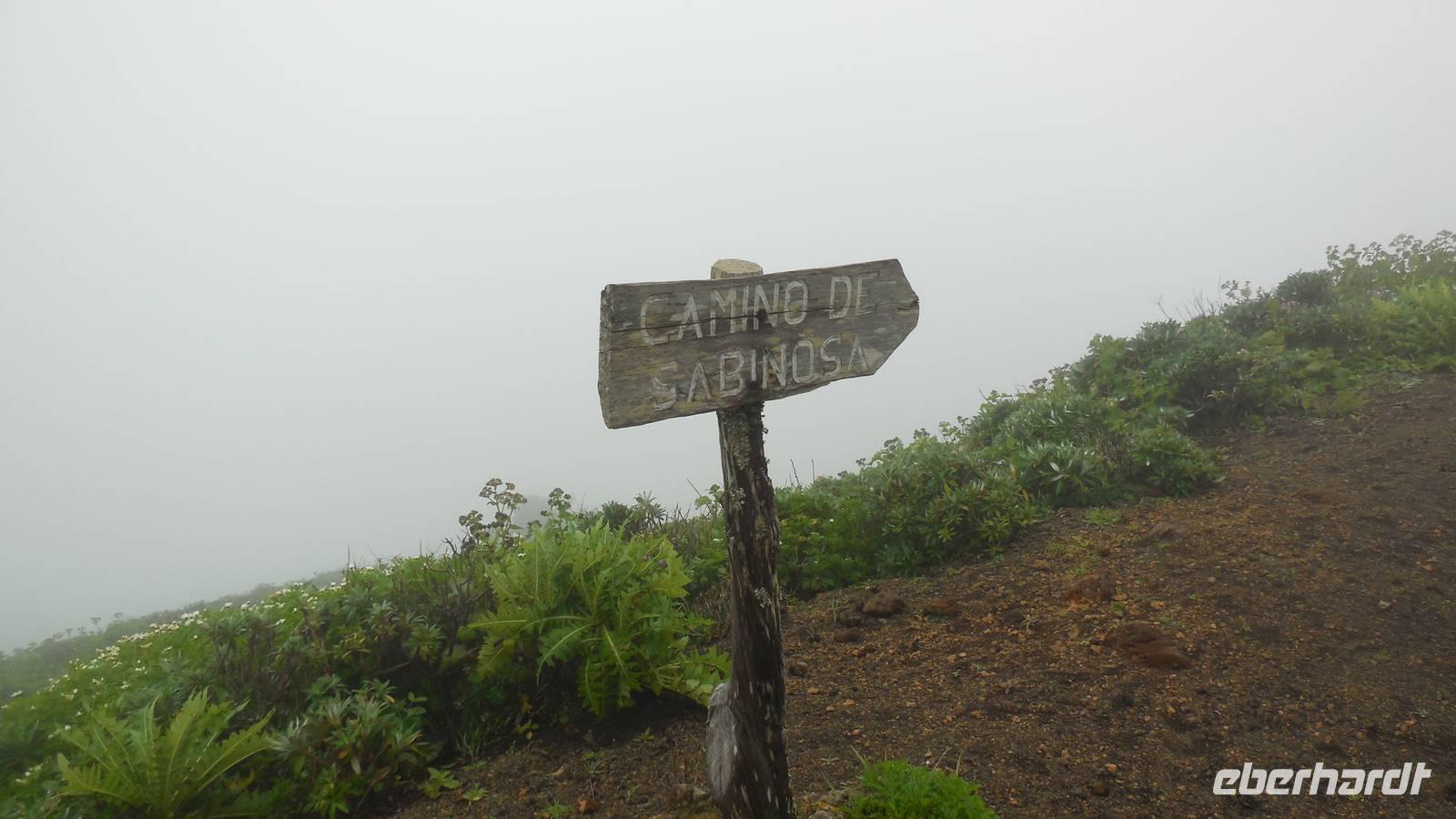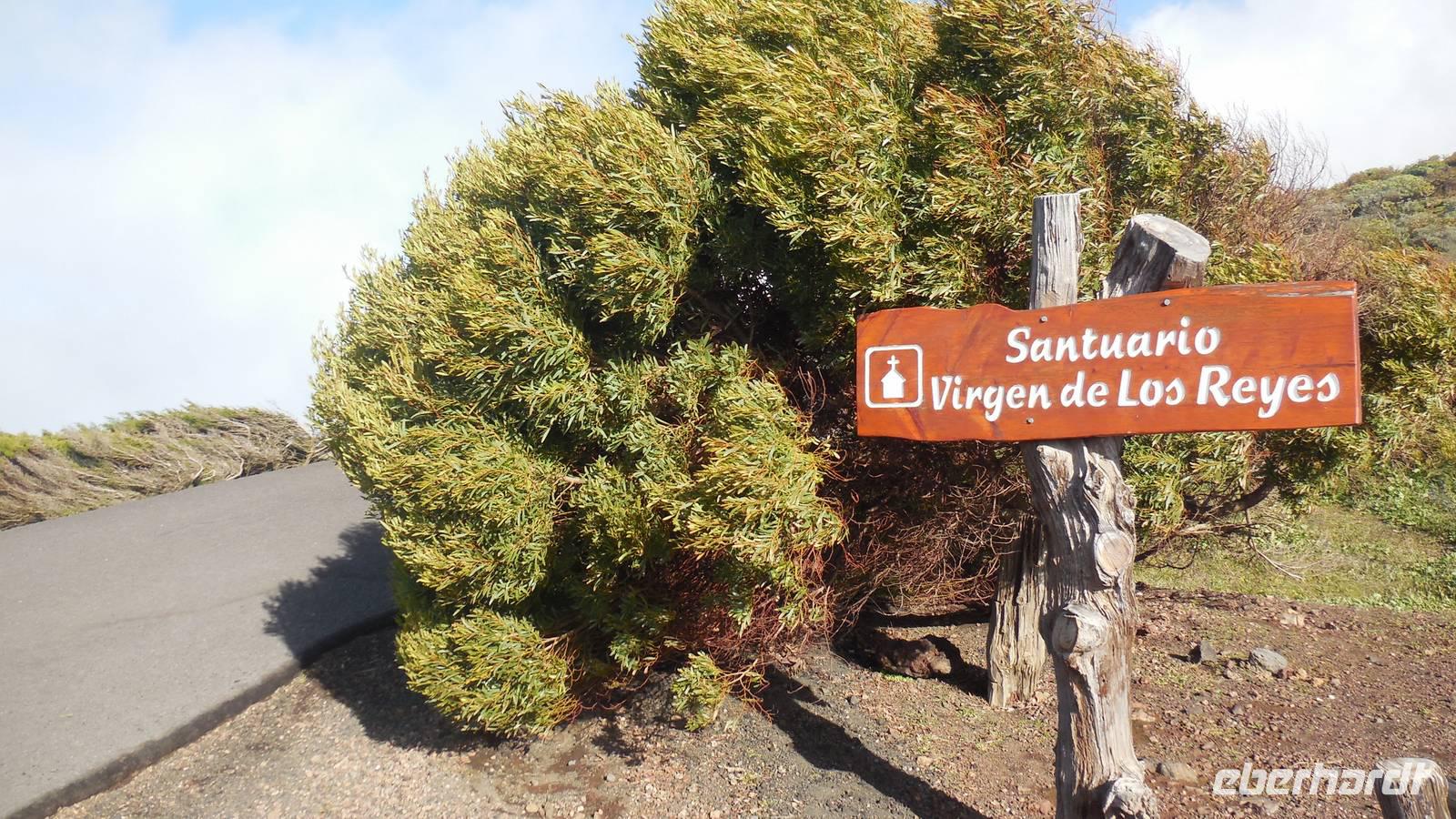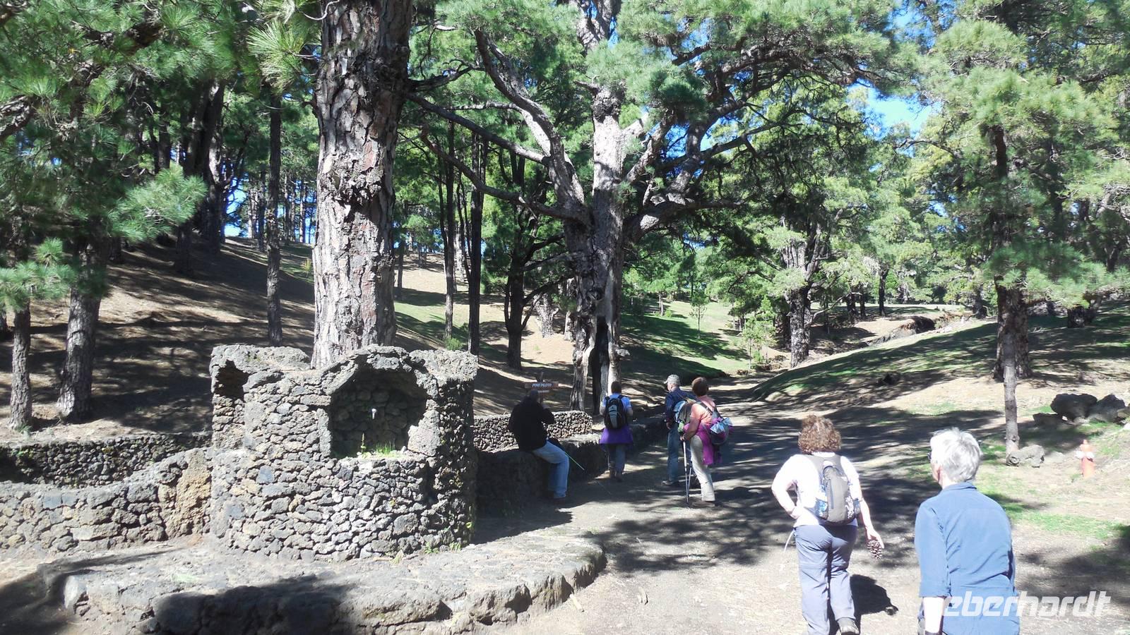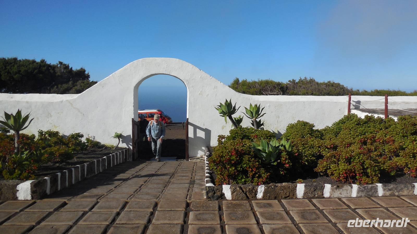 Beim Frühstück schauen wir wieder bangend gen Küste, wo das Meer tobt. Dichter Nebel umhüllt uns und wir stellen uns schon auf einen kalten Wandertag ein. Unser Fahrer bringt uns durch die Nebelwand auf einem halsbrecherischen Serpentinenweg zum Inselheiligtum. Hier auf 800 Meter Höhe geht ein ordentlicher Wind, doch wider Erwarten schauen wir bei strahlendem Sonnenschein und blauen Himmel hinunter aufs Meer. Von der Kapelle, in welcher sich die Statue der Schutzpatronin der Insel befindet, geht es auf einem Wanderweg zu den Sabinas. Hinter der Kapelle finden wir die Höhlen der Hirten vor, welche damals die Mutter Gottes bewachten. Die Sabinas (seltene Baumform) hüllen uns in Staunen - uns umgibt eine Landschaft wie im Horrorfilm! Die Baumstämme und Äste sind ineinander verwickelt und der Stamm krümmt sich in Richtung Erde, als würde der im Boden Schutz suchen. Herrliche Fotomotive bieten diese Naturfaszinationen! Hier mitten in der Natur liest uns Reiseleiter Ralf die Legende über die Ankunft der Schutzpatronin vor. Am Aussichtspunkt Los Bascos schließt ein Weg hoch hinauf in die Weiden. Die Hochweiden mit den Hirtenwegen sind in dichten Nebel gehüllt und von starkem Wind umtobt. Dieser ziemlich anstrengende Anstieg lässt uns die schwere Arbeit der damals hier lebenden Hirten am eigenen Leib erahnen. Endlich erreichen wir den Aussichtspunkt El Sabinal. Wir verschnaufen einen Augenblick und begeben uns in das nächste Landschaftsphänomen: einen dichten nebeligen und feuchten Märchenwald. Hier ist alles moosbewachsen, jeder Stein, jedes Wanderschild - nichts bleibt vom feuchten Klima verschont. Ralf verwöhnt uns mit leckeren, selbst geernteten Nispelfrüchten. Der Waldweg führt bei vielen tollen Ausblicken weiter steil den Berg hinunter bis zum Küstenort Sabinal. Hier angekommen, wäre der Camino de Dehensa endlich geschafft! Der Ort Sabinal besteht aus einen Ober- und Unterdorf, welche miteinander zerstritten sind, wie uns Ralf erzählt. Wir fahren zum Kurhotel Pozo de Salud, in welchem sich der Brunnen mit dem Heilwasser der Insel befindet. Wir kosten vom Heilwasser, welches merkwürdig salzig schmeckt und entspannen bei einem Kaffee. Auf dem Weg zum Hotel stoppen wir noch an einer interessanten Badestelle, der Charco Azul. Hier befindet sich eine Art Badehöhle, welche sich wie eine überdachte Badewanne in das Landschaftsbild einfügt. Am Abend treffen wir uns alle zu einem leckeren Abendessen wieder.