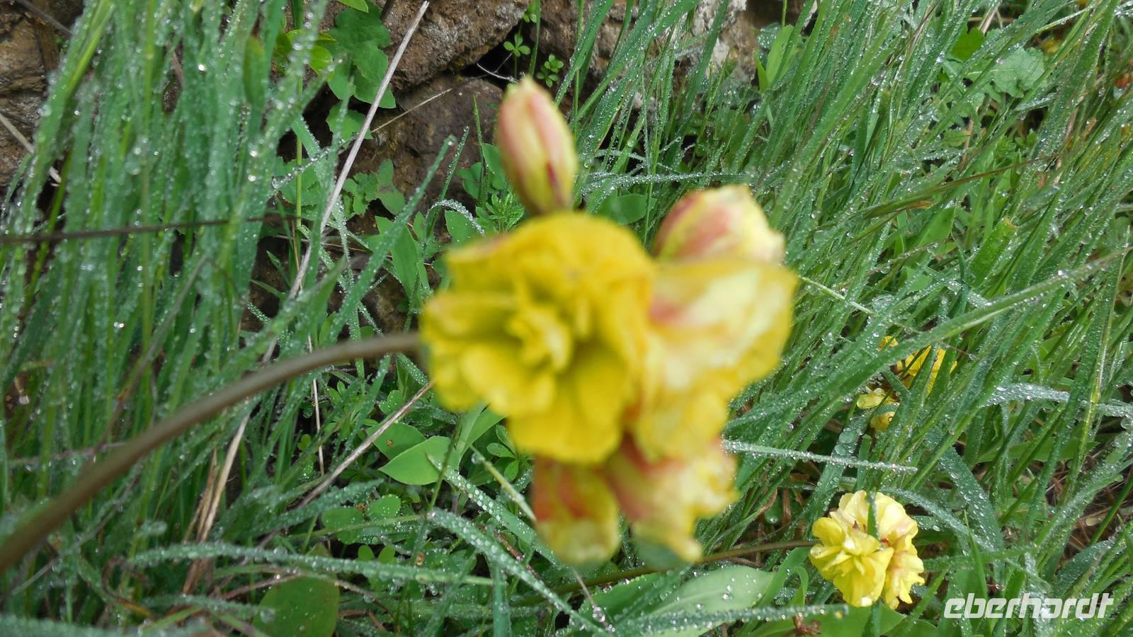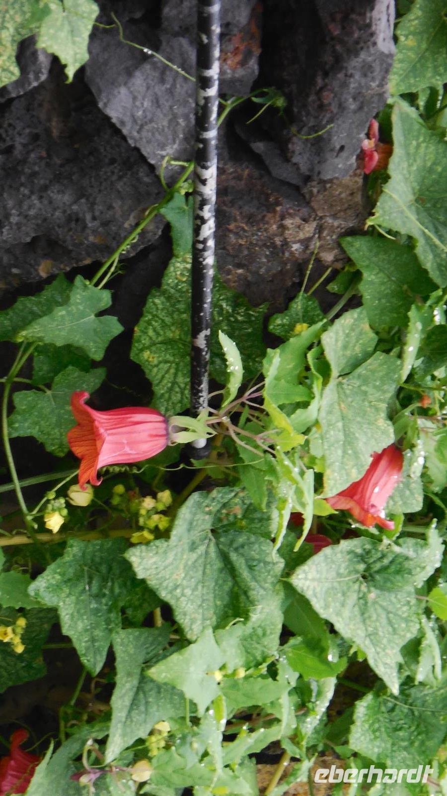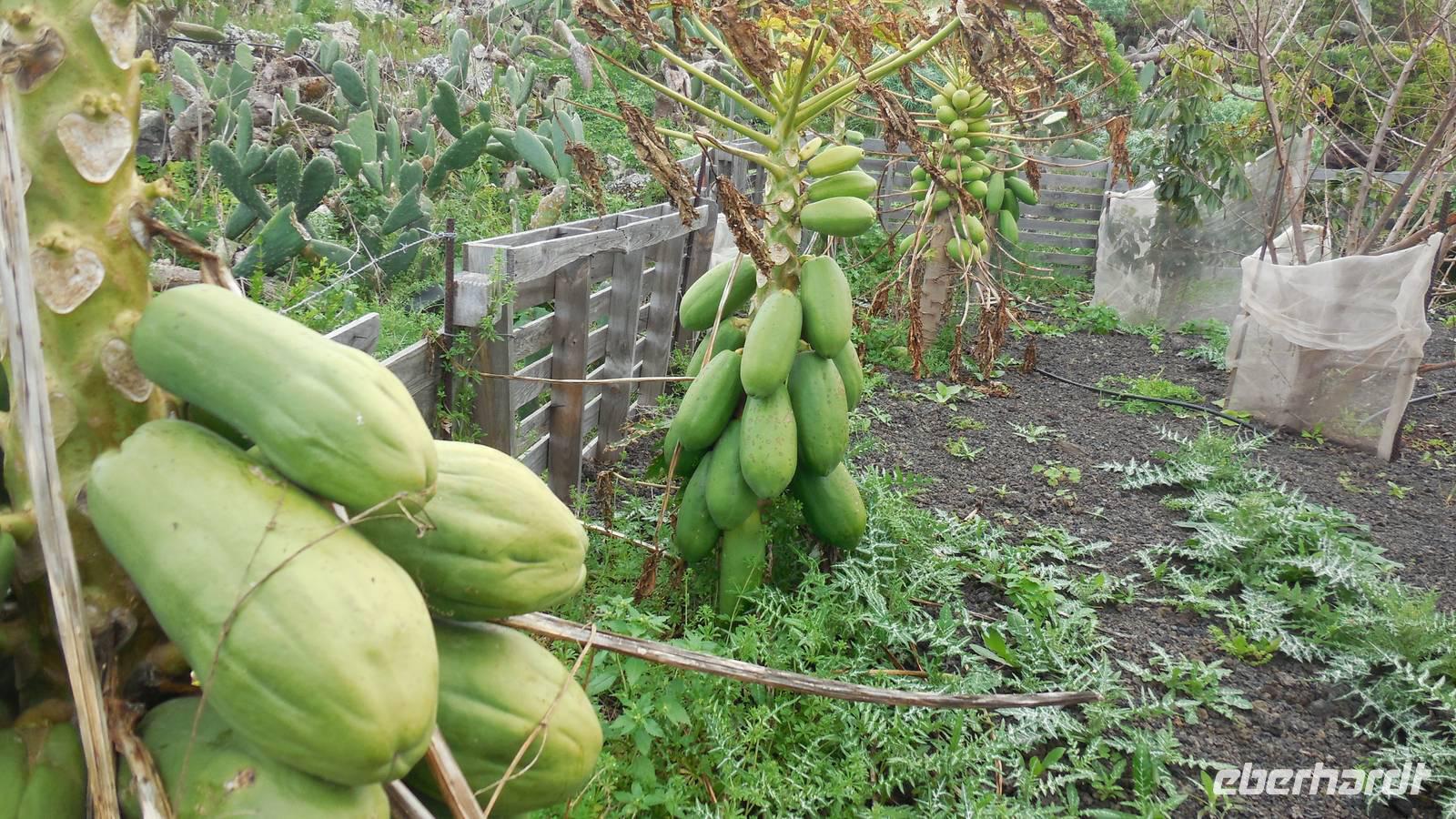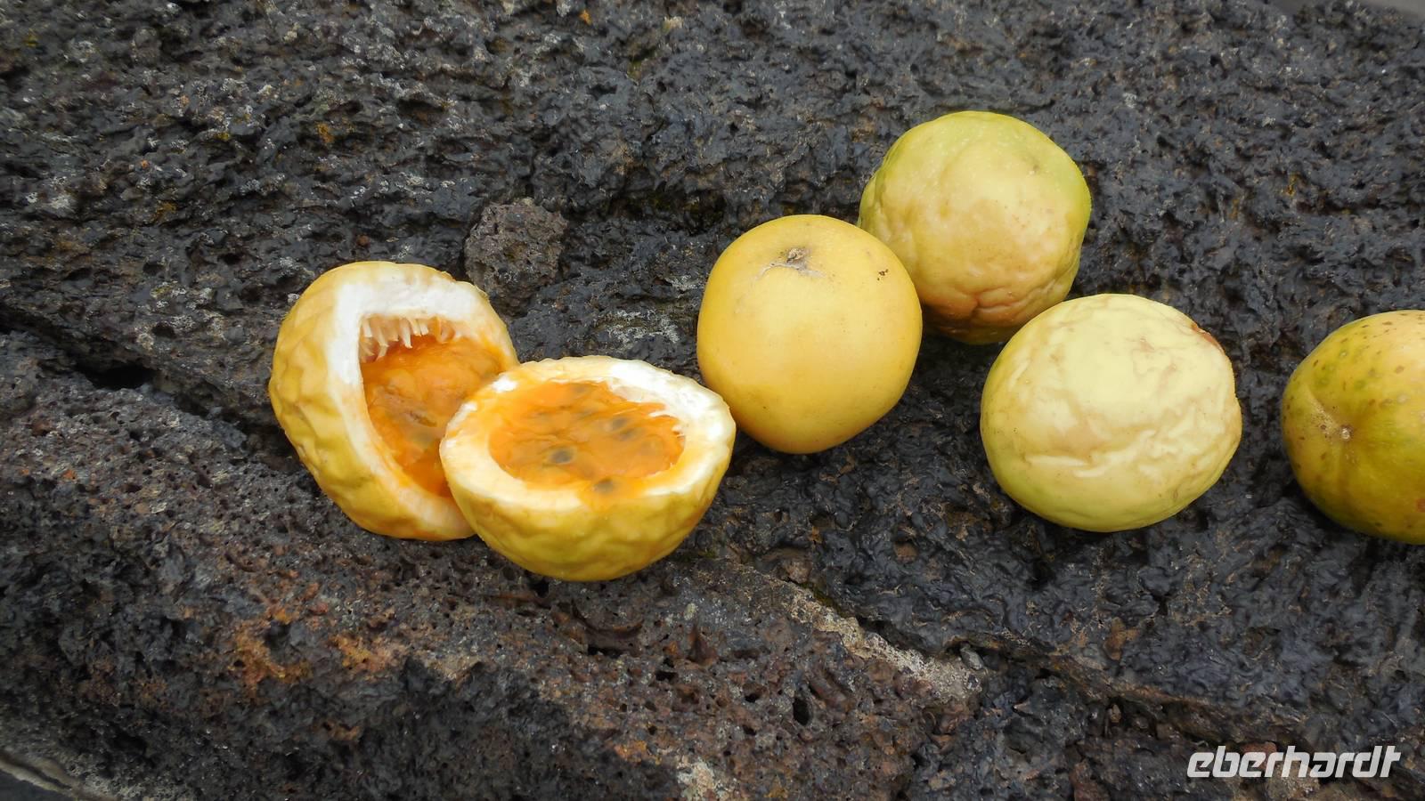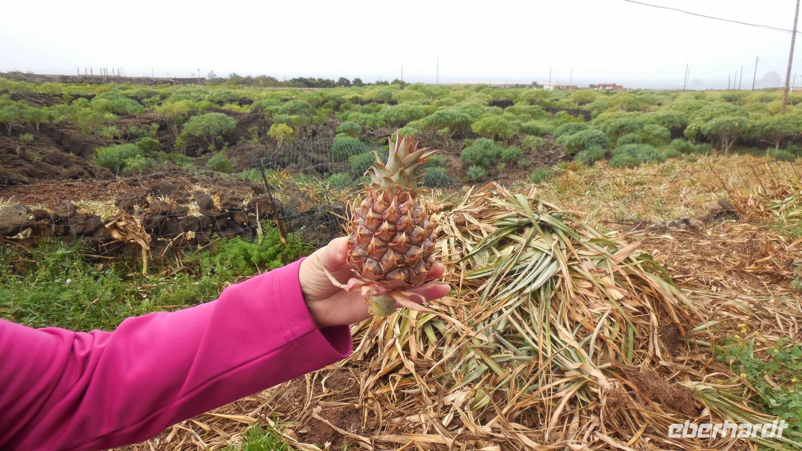 Nach circa 1 ½ Stunden typisch spanischer Verspätung heben wir ab. Als wir die Wolkendecke durchbrechen, erwartet uns ein unvergesslicher Anblick: der Teide, umgeben von einem weißen Wolkenmeer. Anschließend fliegen wir über La Palma hinweg und erreichen in ca. 40 Minuten El Hierro. Die kleine Insel empfängt uns mit einem frischen Wind und Nebelschwaden. Unser Wanderreiseleiter Ralf empfängt uns am Flughafen und erzählt uns auf dem Weg zum Hotel schon etwas über die feuchtgrüne Wanderinsel. Die Insel lebt hauptsächlich von der Landwirtschaft und ist ein riesiges Biosphärenreservat. Interessant ist, dass die ganze Insel vom selbst erzeugtem Strom versorgt wird. Diesen gewinnt man hier mit Hilfe von fünf riesigen Windrädern, an denen wir ebenfalls vorbeifahren. Damit ist es die erste Insel weltweit, welche nur vom eigenen erzeugten Strom lebt. Weitere Ökoprojekte sind schon geplant, zum Beispiel soll es bald nur noch Elektroautos auf der Insel geben. Schließlich erreichen wir unser Hotel im verschlafenen Ort El Mocanal. Neben einer unglaublichen Aussicht, die wir von unseren Zimmern aus genießen, gibt es hier im Ort nur zwei Bars, ein Restaurant, ein Landhotel und zwei kleine Tante Emma ähnliche Supermärkte. Unsere Zimmer sind schon bezugsfertig und wir finden ein gesundes, bäuerliches Frühstück vor. Abenteuerlustig entscheiden wir uns für den heutigen freien Nachmittag für eine Wanderung hinunter an die Küste zum Meerwasserbecken Pozo de las Calcosas. Der Weg ist beschwerlich und besteht fast nur aus Kopfsteinplastersteinen. Doch die unberührte Natur und der Ausblick hinunter auf die Küste lohnt alle Anstrengungen. Wir sehen seltene, schöne Blumen und wandern vorbei an vielen Agavenstauden - immer mit dem Blick gen Meer. Von einer Mitreisenden lernen wir, dass die Agaven ihre charakteristische riesige Blüte entwickeln, bevor es mit der Pflanze zu Ende geht. Dann stirbt die Pflanze ab und die „Kinder" wachsen nach. Wir durchwandern einen regelrechten „Agavenfriedhof" und sehen neben verlassenen alleinstehenden Steinhäuschen auch viele hübsche kleine Schmetterlinge. Ca. 500 Meter bergab geht es in das kleine Dörfchen. Am Aussichtspunkt belohnt uns ein fantastischer Blick auf die Wellen, welche am Meerwasserbecken brechen. Die Badelagune grenzt an ein kleines Dörfchen, bestehend aus Steinhäusern mit Strohdächern. Den Weg, ca. 100 weitere Meter nach unten, ersparen wir uns jedoch. Da am Sonntag keine Busse mehr fahren, laufen wir zurück nach oben - was sich jedoch viel anstrengender als der Abstieg erweist. Somit schlagen wir einen anderen Weg ein, und gelangen über eine langwierige Serpentinienstraße zurück ins Hotel. Auf dem Weg begegnen uns Bergziegen auf der Straße und faszinierende Gewächse wie Riesenlöwenzahn und eigenartige Mini-Melonen-Kürbisse, welche wie Partylampions an den Zäunen hängen. Jetzt haben wir uns wahrlich ein Bierchen in der Hotellobby verdient - wieder bei atemberaubenden Ausblick. Um sechs Uhr abends treffen wir uns wieder mit Ralf. Bei einem Glas typischen Weins von El Hierro lauschen wir seinen Berichten von der Insel und erfahren mehr über die bevorstehenden Tage und Wanderrouten. Seit 16 Jahren lebt er hier und es ist unschwer zu erkennen, dass für diese Insel sein Herz schlägt. Anschließend essen wir gemeinsam zu Abend. Heute werden Hühnchen mit traditionellen Papas arrugadas und den dazugehörenden Mojo Saußen serviert.
