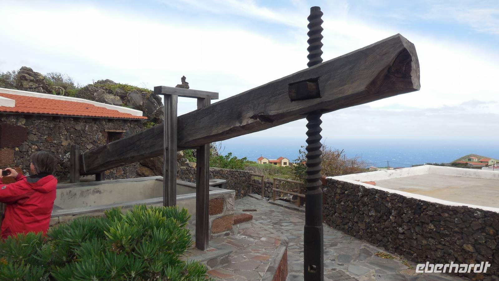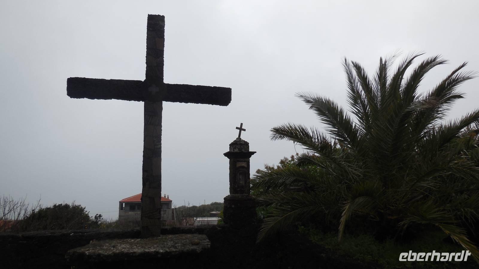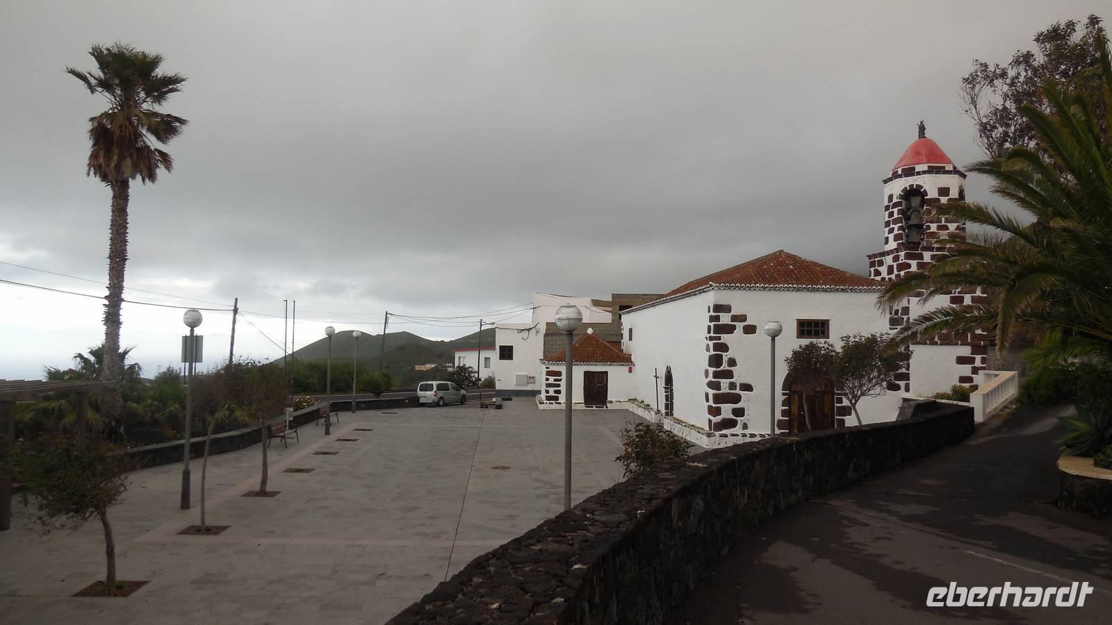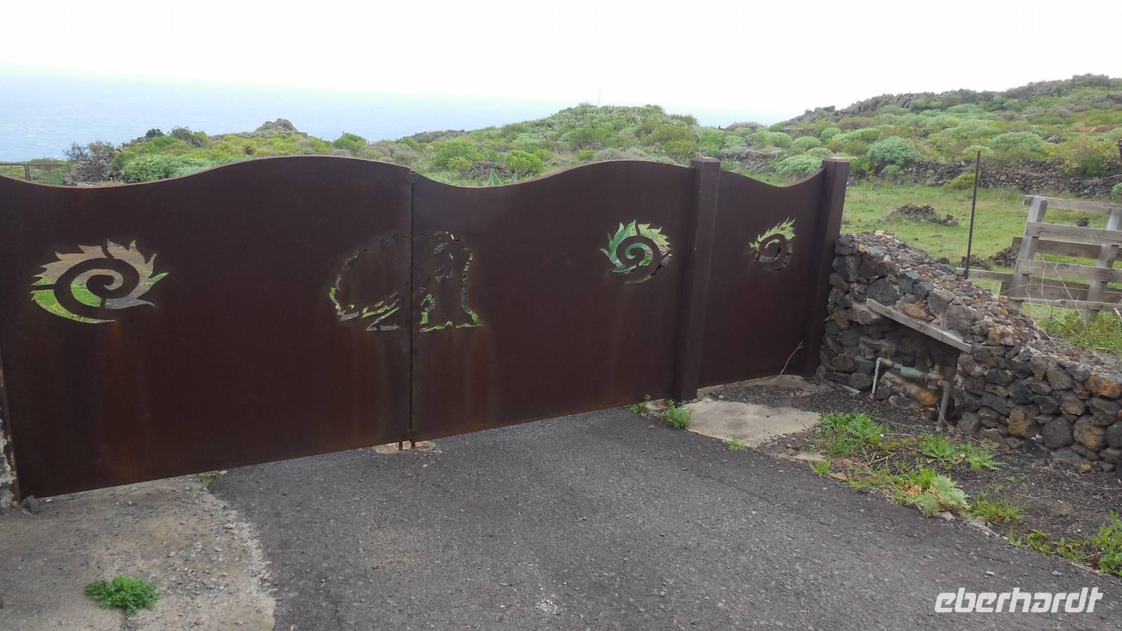 Bei gewohnten Morgennebel verlassen wir Mocanal und begeben uns auf die Südseite der Insel. Zwischendurch halten wir nochmals bei Cesar Manriques Aussichtspunkt La Pena - heute mit relativ guter Sicht auf El Golfo. Dann schlängelt sich unser Weg weiter den Berg hinauf. Sonne empfängt uns mit einem unglaublich strahlend blauen Himmel. Das hebt die Laune bemerkbar. Am höchstgelegenen Grill- und Campingplatz der Insel, der Hoja de Mocillo, starten wir unseren Weg zum Gipfel Malpaso in 1501 Meter Höhe. Wir wandern durch Kiefernwälder und genießen dabei die wärmenden Sonnenstrahlen. An einem Steinkreis verweilen wir. Ralf lässt uns mitgebrachten Käsekuchen aus dem leckeren 3-Milch-Käse der Insel kosten. Der Steinkreis bei der Cueva el Mocán birgt eigenartigerweise kein mystisches Geheimnis, hier befand sich früher nur ein Dreschplatz. Beim Blick auf den in 1330 Metern Höhe gelegenen Wachturm, erklärt uns Ralf das immens wichtige Frühwarnsystem der Insel. Im Sommer wird es hier gefährlich heiß und in den Kieferwäldern brennt es oft. Die kanarische Kiefer kann sich bis zu 45 Minuten im Feuer selbst schützen, erfahren wir. Beim Weitergehen verwandelt sich die Landschaft. Überall sehen wir jetzt viel Baumerika. Wir wandern nun durch einen Nebelwald, in dem sich eine versteckte Wasserquelle befindet. Hier legen wir eine kurze Pause ein und gelangen dann wieder auf eine Piste mit Vulkangestein. Auf dem Prozessionsweg Camino de la Virgen geht es weiter. Ein Schild vor uns zeigt nach Binto. In diesem Ort aus, so erzählt man, kann man aller 40 Jahre eine mysteriöse achte Insel sehen: San Borondón. Die Geschichte zu dieser Insel, zu der es sogar Augenzeugenberichte gibt, erfährt man jedoch nur vor Ort. ;) Am frühen Nachmittag erreichen wir nach einer Wanderung mit vielen tollen Ausblicken endlich den Malpaso auf 1500 Metern Höhe. Hier bietet sich uns bei einer Pause ein herrlicher Blick auf die vorgelagerten Inseln La Palma und Teneriffa. Oben wärmt die Sonne ordentlich, endlich - dieses Kaiserwetter haben wir uns jetzt redlich verdient. Anschließend geht es den Berg wieder hinab bis zum großen Kreuz Cruz de los Reyes, wo wir den nächsten Stopp einlegen. An dieser Stelle wird bei der großen Prozession immer die Mittagsmesse gehalten und die Frauen rutschen auf nackten Knien den Berg hinauf. Bevor wir um 16.30 Uhr wieder am Grillplatz ankommen, durchwandern wir nochmals Lavafelder, einen großen Kiefernwald und stoppen auch an der Stelle mit dem Stein der zwei Schwestern (Dos hermanas). Bei tollem Blick auf La Palma und El Golfo lassen sich hier bei den „dos hermanas" viele Gleitfallschirmspringer ins Tal hinabfallen. Am Abend werden wir mit Fischsuppe und einer gemischten, heimischen Fischplatte verwöhnt. Die Fähre konnte nach dem Sturm der vergangenen Tage endlich wieder anlegen und so gibt es wieder Fisch auf der Insel.