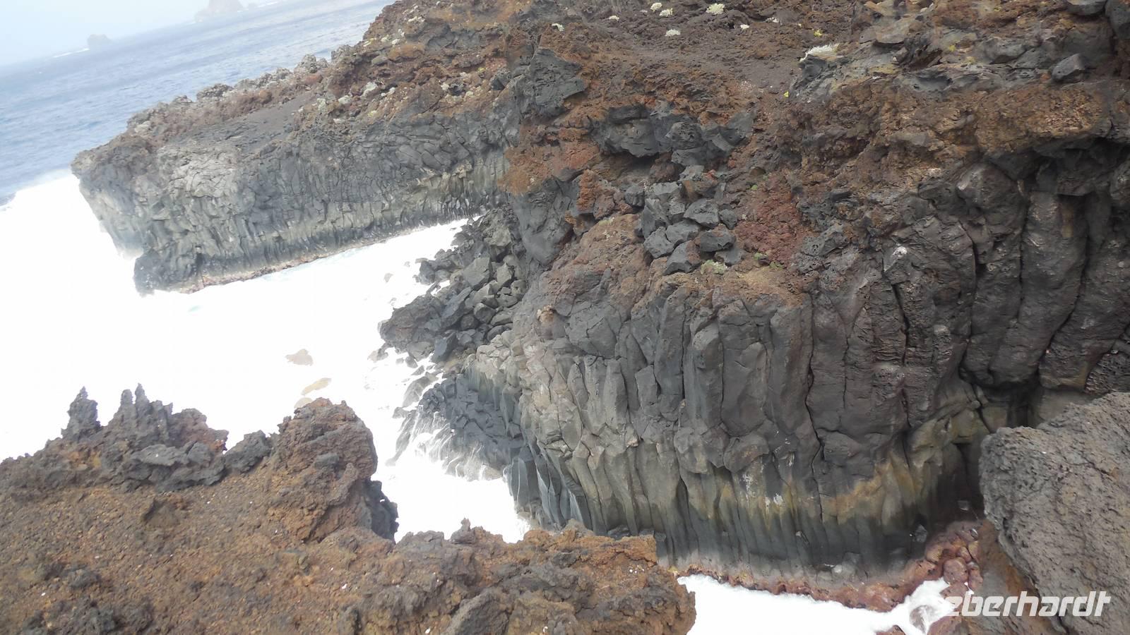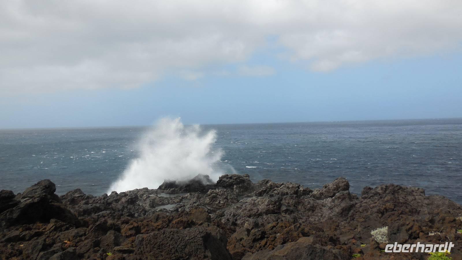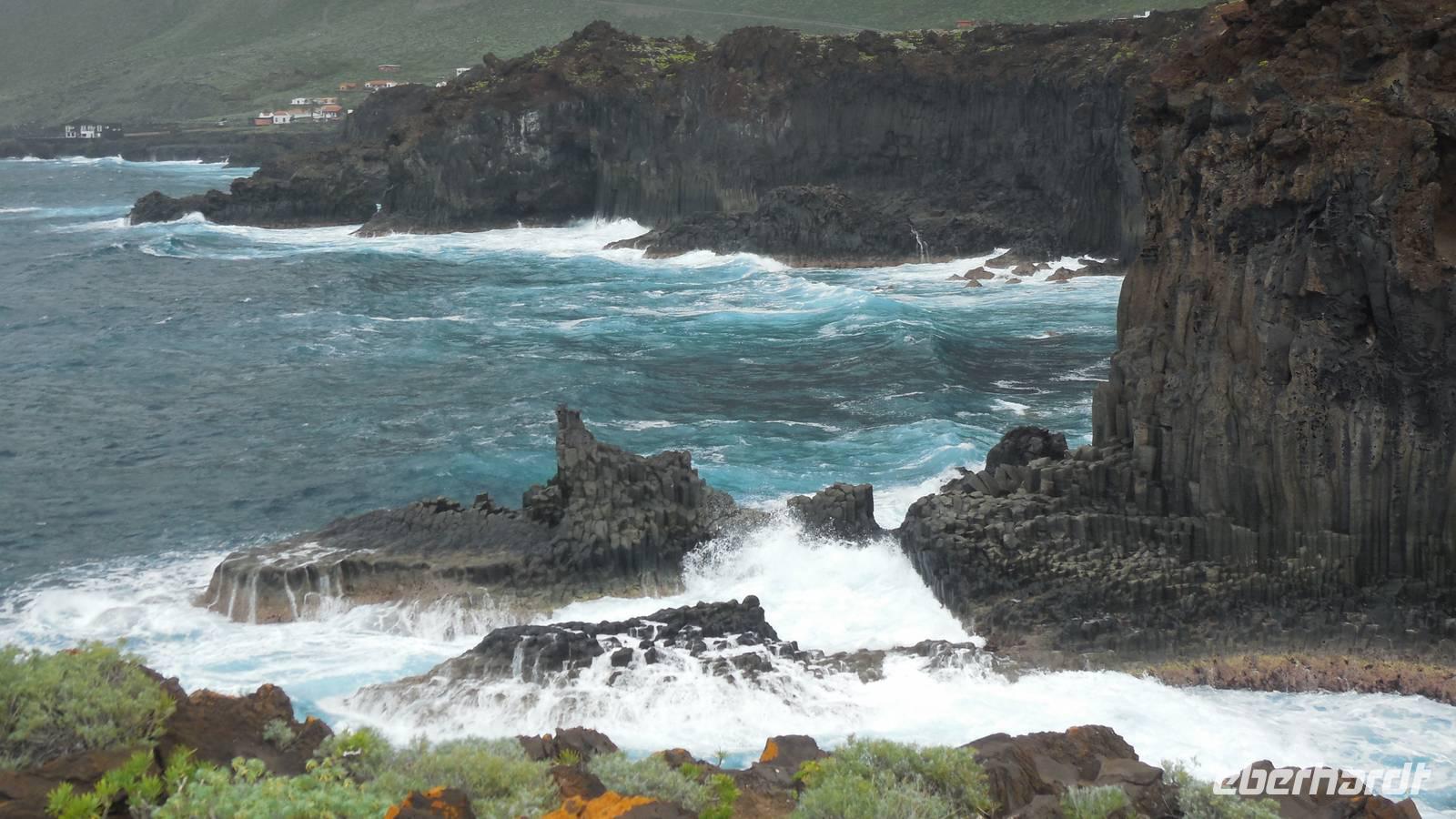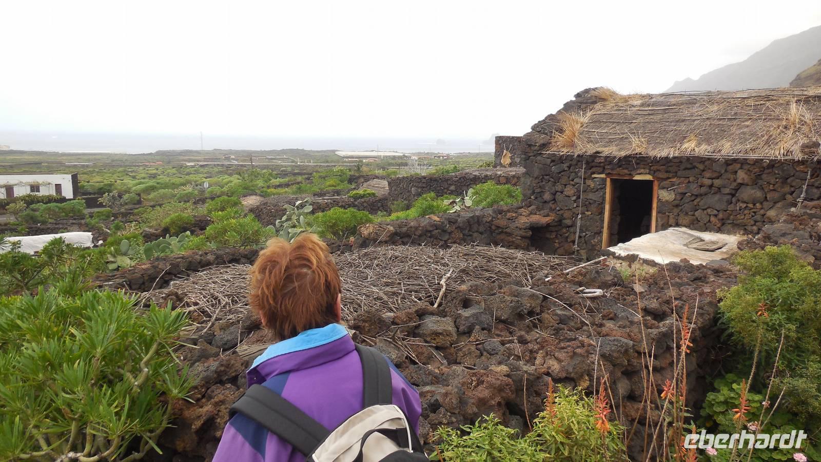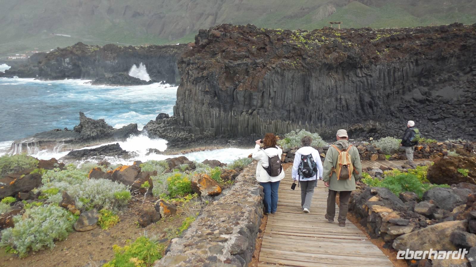 Nach einem späten Frühstück sammelt sich unsere kleine Gruppe an der Bushaltestelle vor dem Hotel. Heute ist Freizeit angesagt, und ein Großteil der Gruppe begibt sich zum Ecomuseo bei Frontera. Hier angekommen, unternehmen wir mit einer jungen Frau namens Nancy einen Rundgang durch das archäologische Dorf Guinea. In diesem Freilichtmuseum sind die Behausungen der Einwohner von der Urzeit bis ins zwanzigste Jahrhundert erhalten. Wir besichtigen eine Hütte der Ureinwohner, der Bimbaches, welche zu acht in den kleinen spartanisch eingerichteten Hütten schliefen. In den letzten Behausungen wohnten die Menschen bis zuletzt 1970. Eben diese wurden prompt verlassen, als die Auswandererschiffe anlegten. Dies erkennen wir gut an den zurückgelassenen und erhaltenen Utensilien. Sie flüchteten an die Küste, wo Sie mit einem Schiff gen Südamerika, hauptsächlich Venezuela, Argentinien und Puerto Rico verschwanden. Die Behausungen vermitteln ein gutes Bild vom Leben der Einwohner seit der Eroberung bis ins zwanzigste Jahrhundert. Danach führt uns Nancy ins Terrarium der Riesenechsen. Diese wurden auf den der Insel vorgelagerten Felsen und hoch oben auf den Bergen gefunden. Es handelt sich hierbei um eine einzigartige Art, welche hier gepflegt und wieder in der Natur ausgesetzt wird. Anschließend begeben wir uns auf einen kurzen, leichten Wanderweg. Wir wollen ja schließlich nicht aus der Übung kommen. ;) Wir spazieren nach La Malceta zu einem schönen Aussichtspunkt und können die einzelnen Felsen im Meer sehen. Hier schließt ein schöner 2,6 Kilometer langer Wanderweg nach Las Puntas an. Viele atemberaubende Aussichten bieten sich uns, als auch interessante Lavaformationen, welche den Entstehungsprozess dieser Landzungen verdeutlichen. Vorbei an riesigen Wellen, welche gegen die Felsen brechen und faszinierenden Basaltsäulen erreichen wir Las Puntas. Hier befindet sich ein kleines Hotel, an dem früher die Schiffe anlegten und ihre Materialien und Lebensmittel mit den Einwohnern tauschten. Auch die Flüchtlinge verließen an diesem Punkt das Land. Hier in dem hübschen Küstenörtchen mit vielen Ferienwohnungen kehren wir in eine Bar ein und lassen uns einen Barraquito schmecken. Dann geht es im Linienbus wieder zurück nach Mocanal, wo wir bis zum gemeinsamen Abendessen noch etwas entspannen.