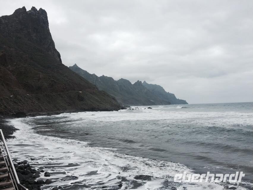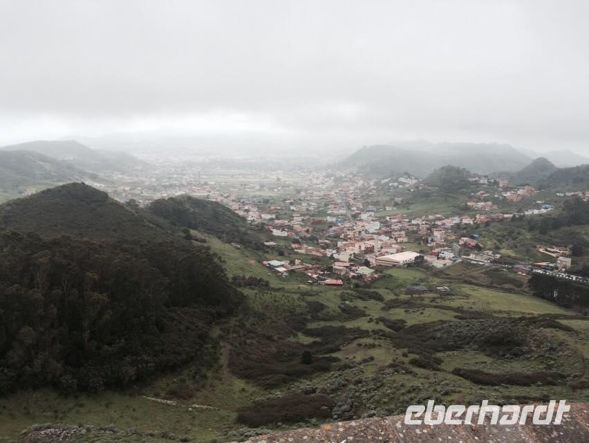 Am heutigen Tag wollen wir den sattgrünen Norden Teneriffas entdecken. Reiseleiter Eduardo begrüßt uns und erzählt uns auf dem Weg nach Tacoronte etwas über die Beschaffenheit der kanarischen Inseln. Die Nordseite wird wieder erbarmungslos in dichten Nebel gehüllt. Dies liegt an der „großen Wolke", deren Entstehung uns ebenfalls erläutert wird. Des weiteren erfahren wir, dass der Tourismus damals in Puerto de la Cruz angefangen hat und dass Kaiser Wilhelm dabei eine große Rolle gespielt hat. Wir halten kurz am ersten Mirador, welcher uns einen tollen Blick über das Nordtal gewährt. Schließlich erreichen wir das Örtchen Tacoronte. Dieses ist für seinen am Wochenende stattfindenden Bauernmarkt bekannt. Auf dem Markt lassen wir uns von Reiseleiter Eduardo einige besondere Lebensmittel zeigen. Da sich die Passatwolke hartnäckig grau über uns hält, entscheiden wir nach Verlassen des Marktes an der Südseite etwas Sonne aufzuschnappen. So finden wir uns wenige Augenblicke später in Santa Cruz wieder. Die Hauptstadt ist uns schon wohlbekannt, nicht jedoch deren Strand Playa de las Teresitas. Der goldene Sandstrand gilt als einer der Schönsten der gesamten Insel und ist bei Einheimischen genauso wie bei Touristen beliebt. Wir verweilen kurz am Strand und lassen uns von den Bausünden der Gegend berichten. Dann geht es auf einer serpentinenreichen Straße durch das Anaga-Gebirge. Wir erreichen das idyllische Dörfchen Taganana vor den täglichen Touristenbussen. Der kleine Ort ist zwischen Berghängen eingebettet und grenzt an die bekannten Roques de las Bodegas am nördlichsten Zipfel der Insel. Hier neben dem Strand von Taganana kehren wir im Restaurant Casa Africa ein - ein echter Geheimtipp für frischen, leckeren Fisch auf der Insel! Nach einer kleinen Mittagspause fahren wir nun eine andere Route durch das Anagagebirge. Leider hat uns der Nebel wieder eingeholt und so haben wir nicht an allen Aussichtspunkten der grünen Gebirgskette Sicht auf das Tal. Bei unserer Fahrt durch den nebligen Mercedeswald, auch als „Märchenwald" bekannt, erzählt uns Eduardo von den Romerias der Insel. Gegen Nachmittag kommen wir, leicht schwummrig von den Serpentinenwegen, in Tegueste an. Hier befindet sich die Bodega Valle Molina. Von den Besitzern des Weingutes werden wir zunächst in die kanarische Küche eingeweiht und lernen wie mojo und die papas arrugadas zubereitet werden. Das wird im Nachhinein natürlich auch verkostet - mojo, kanarische Kartoffeln, Honig von La Palma, heimische Ziegenkäse - dazu verschiedene Sorten des köstlichen, hausgemachten Weins. Wir lassen es uns gut gehen und erfahren beim Kosten der Weine noch die ein oder andere interessante Geschichte der Insel. Am späten Nachmittag erreichen wir nach einem ereignisreichen Tag Puerto de la Cruz und lassen den Tag beim gemeinsamen Abendessen ausklingen.