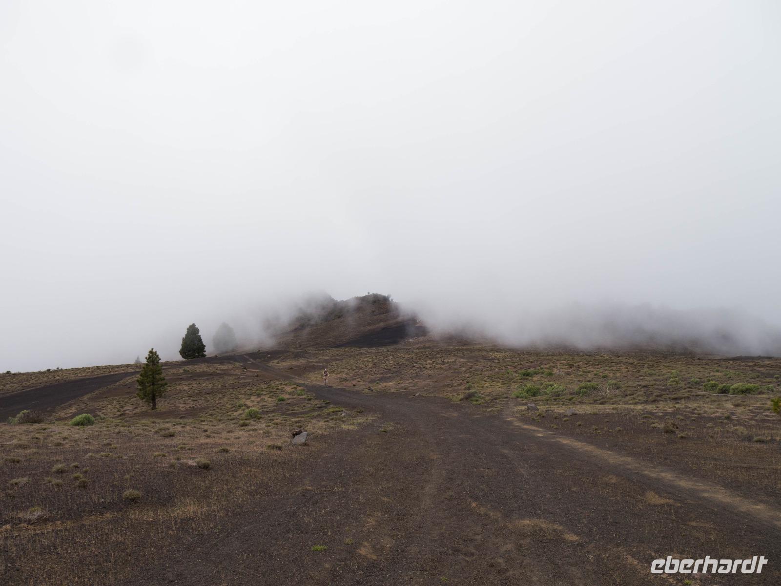 Heute steht der höchste Gipfel von El Hierro auf dem Programm, der Malpaso. Unsere Wanderung beginnt am Campingplatz „Hoya de Morcillo". Von hier wandern wir stetig bergauf durch einen herrlichen Kiefernwald. Die kanarische Kiefer hat einige Besonderheiten: sie hat 3 lange Nadeln, mit denen sie in der Lage ist, Nebelwolken auszukämmen (sog. horizontaler Regen) und eine schuppige Rinde, die sie vor Waldbränden schützt. Weiter oben ändert sich die Vegetation wieder schlagartig und wir wandern durch einen Märchenwald aus Baumheide und Gagelbäumen, die mit Bartflechten und Moosen bewachsen sind. Ein Stück des Weges legen wir wieder auf dem Prozessionsweg zurück bevor wir den sanften Anstieg zum Gipfel in Angriff nehmen. Über das schwarz-braune Lavafeld ziehen dichte Wolken, so dass eine mystische Stimmung aufkommt. Schließlich ist der 1.501 Meter hohe Gipfel des Malpaso erreicht - und das wird mit einem köstlichen Ananaswein und einem Stück Quesadilla (Käsekuchen) geehrt. Für einen kurzen Moment geht sogar der Wolken-Vorhang auf und gibt den Blick ins Golftal frei. Danach beginnt der Abstieg über Lavaasche, vorbei am Cruz de los Reyes, durch den Kiefernwald bis zum Ausgangspunkt unserer Tour. Jede der vier Wanderungen auf El Hierro war einzigartig und schon innerhalb eines Tages hat sich das Landschaftsbild und die Vegetation komplett verändert. Genau dies und die Ursprünglichkeit macht wohl den Reiz dieser kleinen Insel aus. Wir sind begeistert von dem Naturparadies El Hierro und verabschieden uns nach dem Abendessen (mit Pauken und Trompeten) von unserem Wanderführer Ralf. Vielen Dank!
