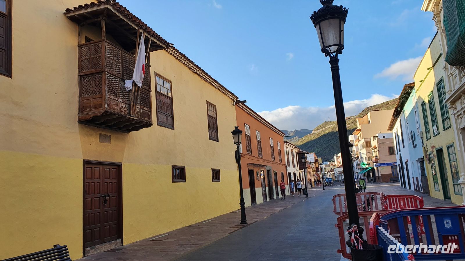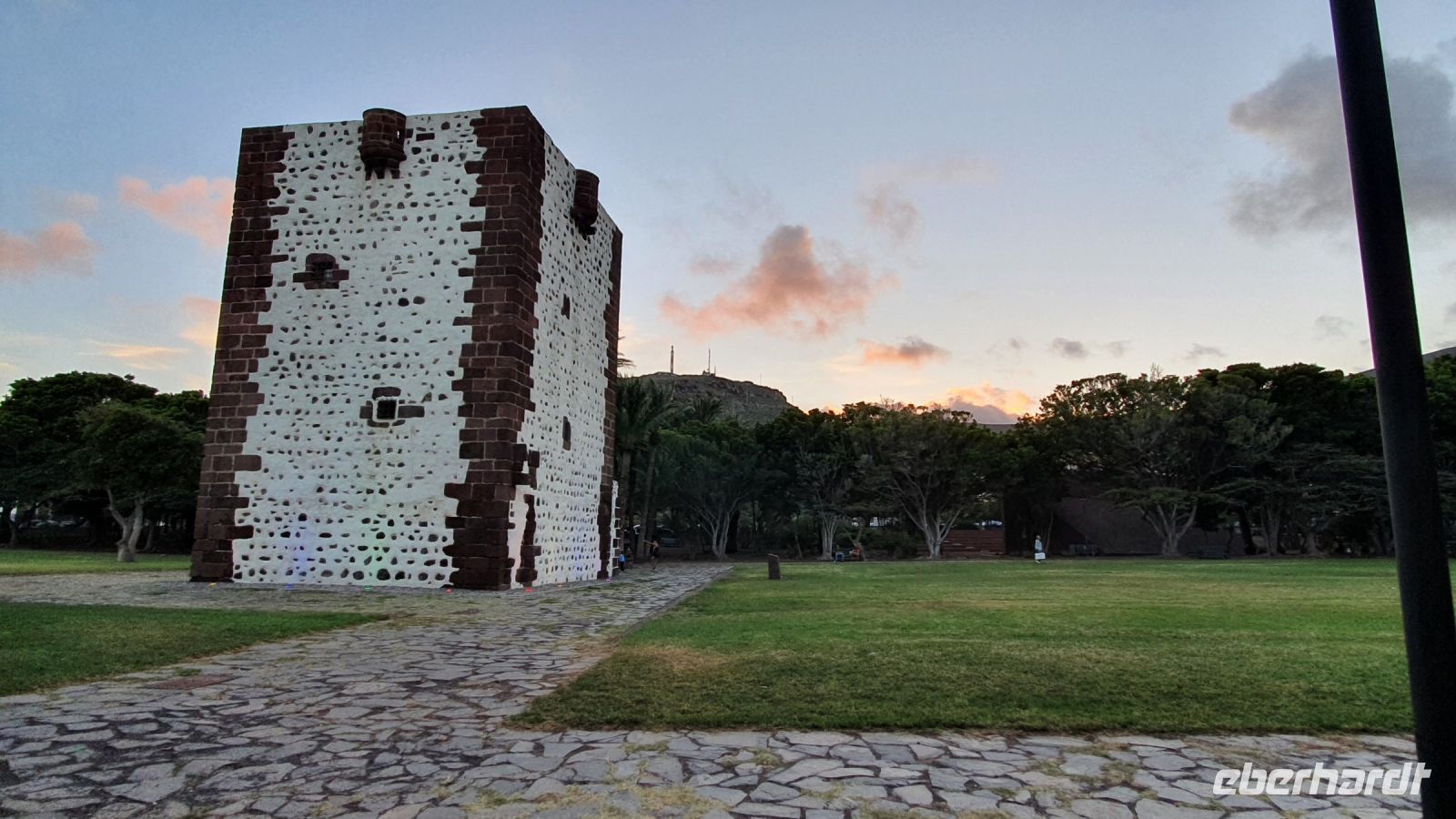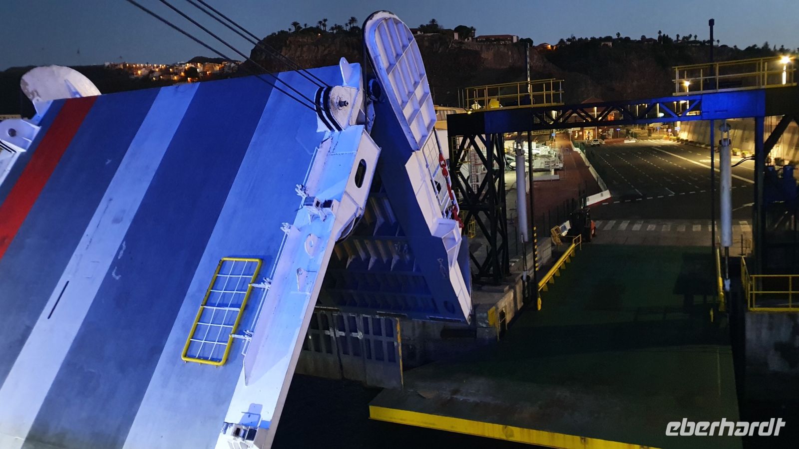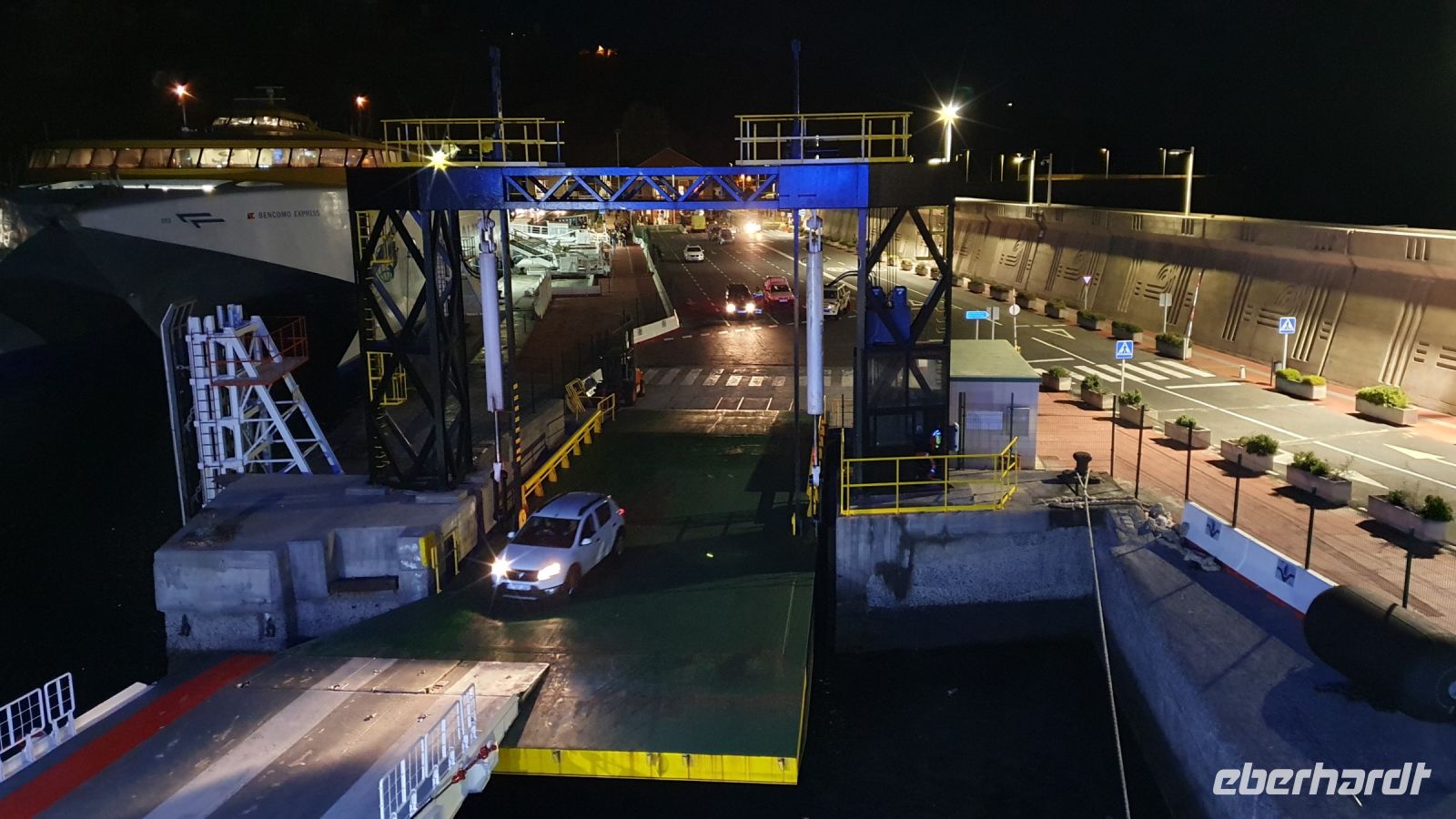 Die meisten Gäste unserer Gruppe flogen mit mir vom BER nach Teneriffa Süd und dort trafen wir auf weitere 4 Wandergäste. Gemeinsam fuhren wir ein kurzes Stück vom Flughafen zum Fährhafen im Süden der Insel Teneriffa und dort machten wir es uns auf der Aussichtsterrasse bequem, aßen eine Kleinigkeit und warteten. 19.30 Uhr endlich legte die Fähre von ARMAS ab und eine Stunde später erreichten wir den Hafen von San Sebastian auf der Insel La Gomera. Ulrike erwartete uns schon und begleitete uns ins Hotel Torre del Conde, mitten in San Sebastian. Man hatte mit dem Abendessen auf uns gewartet und zur Begrüßung gab es ein Glas Sekt. Während des Essens wurden die checkin Formularitäten abgewickelt und danach freuten sich alle auf ihr Bett nach der langen Anreise.