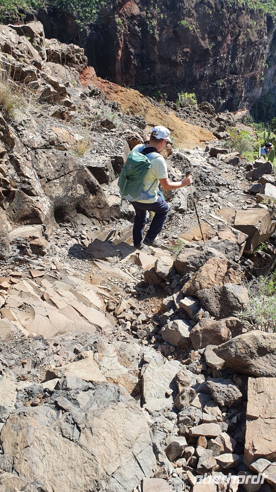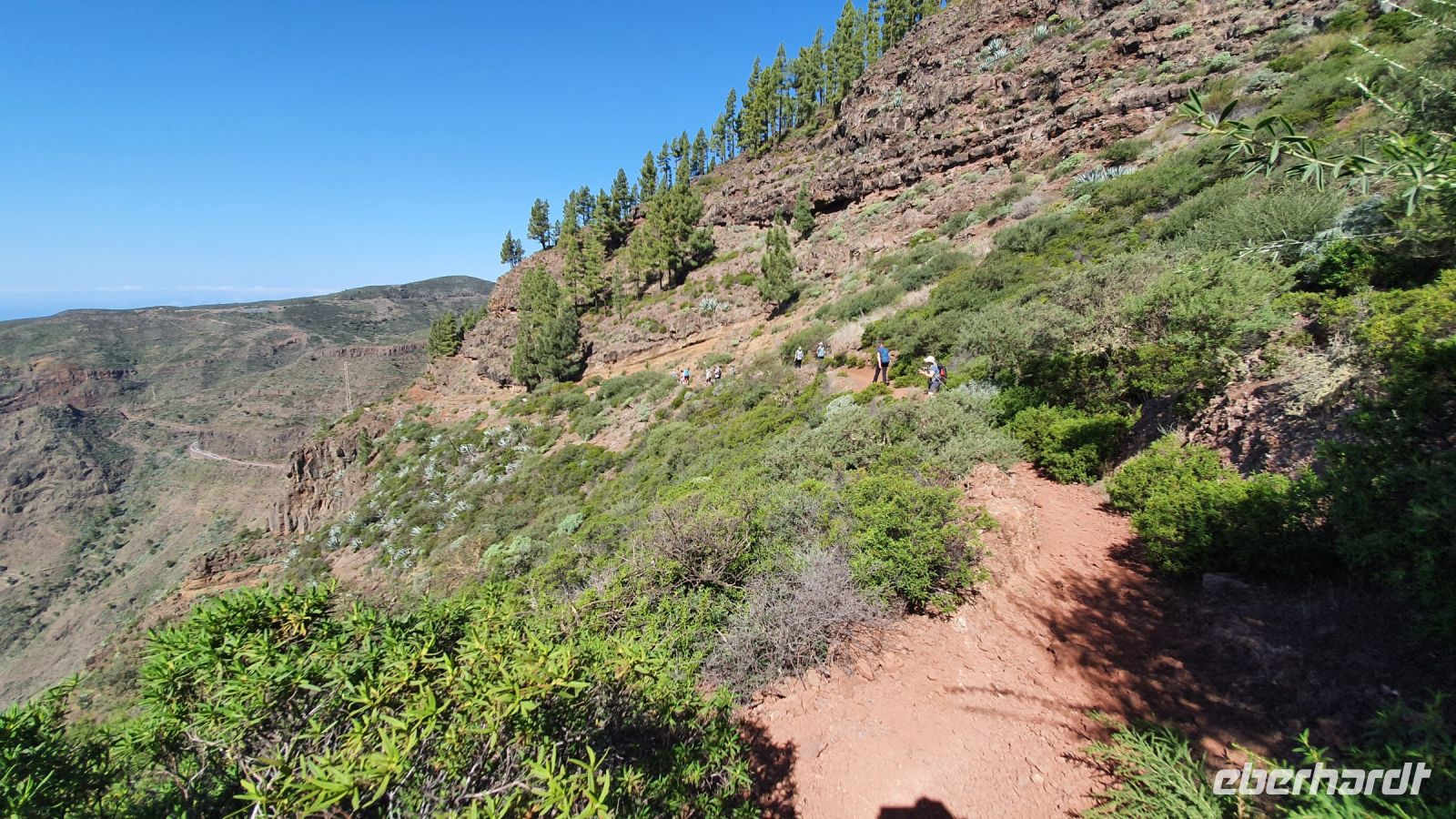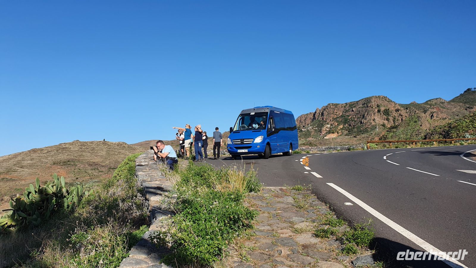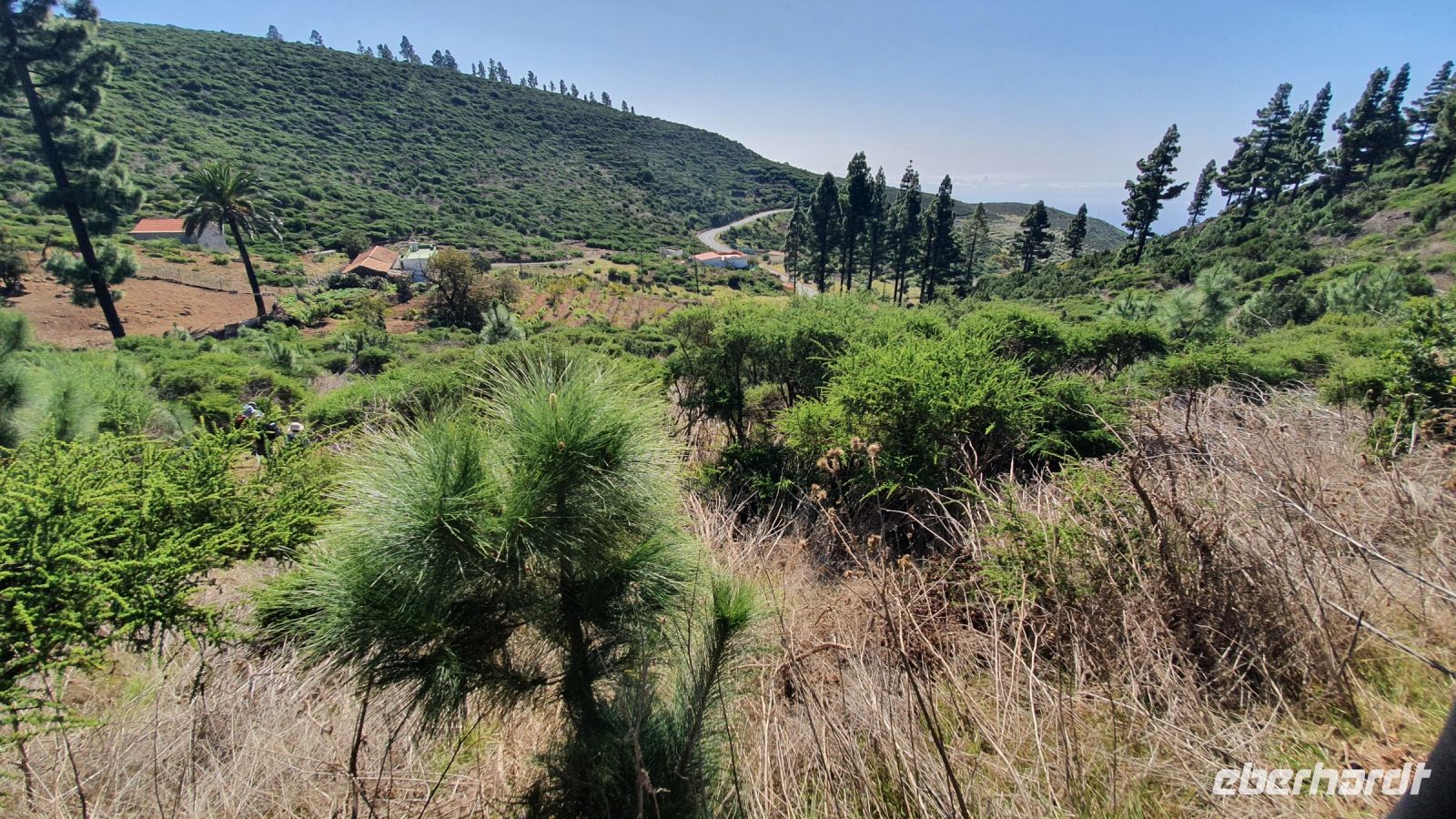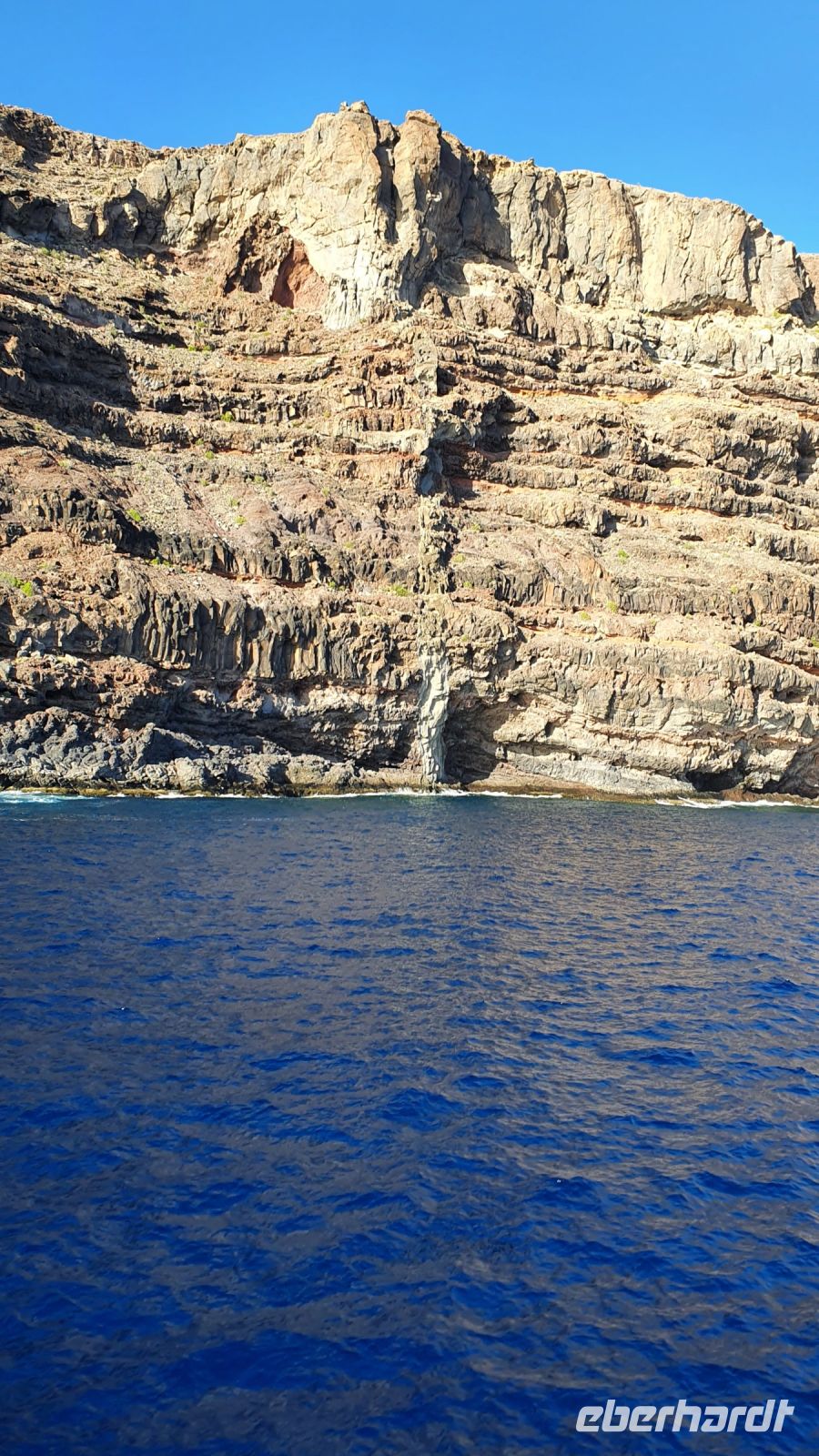 Zu unserem Wanderausgangspunkt in Imada fuhren wir wieder auf der aussichtsreichen Strasse hinauf und bogen dann aber nach Süden ab. Schon die kurvenreiche Strasse dorthin, bot unzählige schöne Ausblicke. Von Imada ging es dann immer bergab im Barranco de Guarimiar. Anfangs war der Weg recht gemütlich und führte durch Terrassenfelder. Später kamen wir zu den steileren Passagen, die durch loses Lavagestein steil bergab führten und unsere ganze Konzentration brauchten. Aber die Aussichten waren einfach grandios. Wir wanderten in der Sonne und freuten uns über jede Unterstellmöglichkeit an der Felswand im Schatten. Bei den Häusern von Guarimiar waren wir schon tief unten im Barranco und gönnten uns eine Mittagsrast im Schatten. Danach gingen wir eine weitere Stunde bergab bis zur Strasse, wo unser Bus stand. Hier gab es die Möglichkeit, die Wanderung zu beenden und mit dem Bus nach Playa de Santiago zu fahren, dort den Hafen anzuschauen und auf einen KAFFEE oder Barraquito einzukehren. Etwa die Hälfe der Gruppe nutzte diese Möglichkeit und die andere Hälfte wanderte steil bergan über 400 Höhenmeter hinauf zur Hauptstrasse, um dort oben dann später in den Bus einzusteigen. Gemeinsam fuhren wir dann hinauf zu einer Bar und liessen den anstrengenden Wandertag bei einem leckeren Getränk ausklingen. Zum Abendessen gingen wir gemeinsam zum Hafen in das Restaurant Los Caprichos.