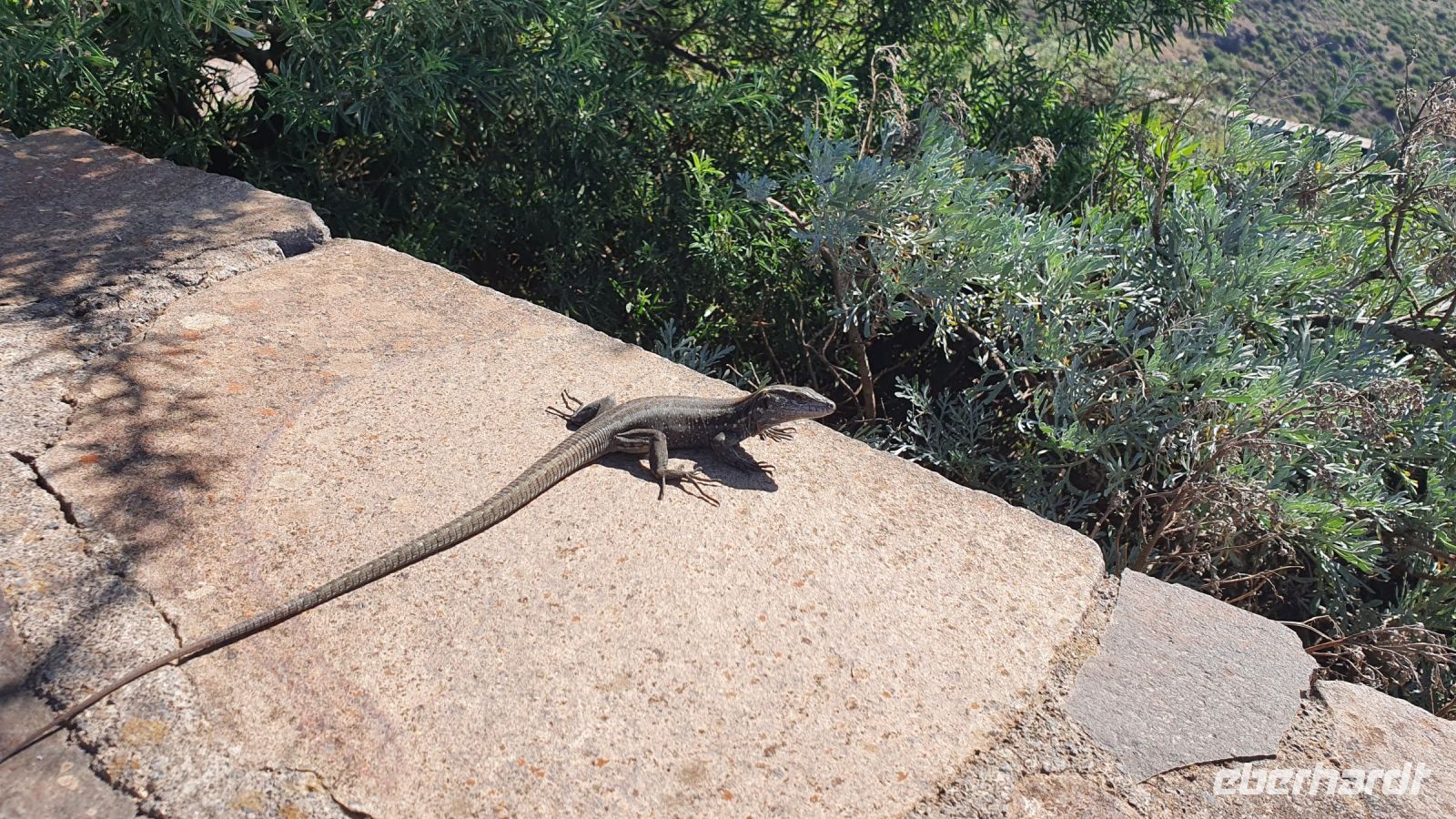 Heute stand die Wanderung auf den höchsten Berg der Insel La Gomera, den Garajonay mit 1487 m Höhe, auf dem Programm. Dazu fuhren wir wieder auf bekannter Strecke bergan und verliessen auf einem gut besuchten Parkplatz unseren Bus. Von da an wanderten wir auf einem bequemen Weg zunächst im leichten bergauf und bergab hinauf auf den Gipfel des Garajonay. Wir hatten Glück und eine wunderbare Aussicht auf die umliegenden Inseln Teneriffa mit dem Teide, La Palma und El Hierro. Nun gingen wir bergab zunächst bis zum Mirador de Igualero, wo wir unsere Mittagspause in Gesellschaft von vielen Echsen machten. Auf dem weiteren Weg bergab kamen wir an einem Ziegenbock vorbei, der sich an einem starken Ast mit seiner Leine verheddert hatte und fest hing. Er brauchte Hilfe und sogleich leisteten die Mutigen aus der Gruppe erste Hilfe und befreiten ihn aus der misslichen Lage. Wir wanderten immer weiter bergab und umrundeten schliesslich einen tiefen Barranco. Die Wanderung endete in Chipute in einer Bar, wo wir uns wieder mit einem Drink belohnten. Zum Abendessen gingen wir heute in das Restauran 4 Caminos und genossen ein sehr reichliches Abendmenue.