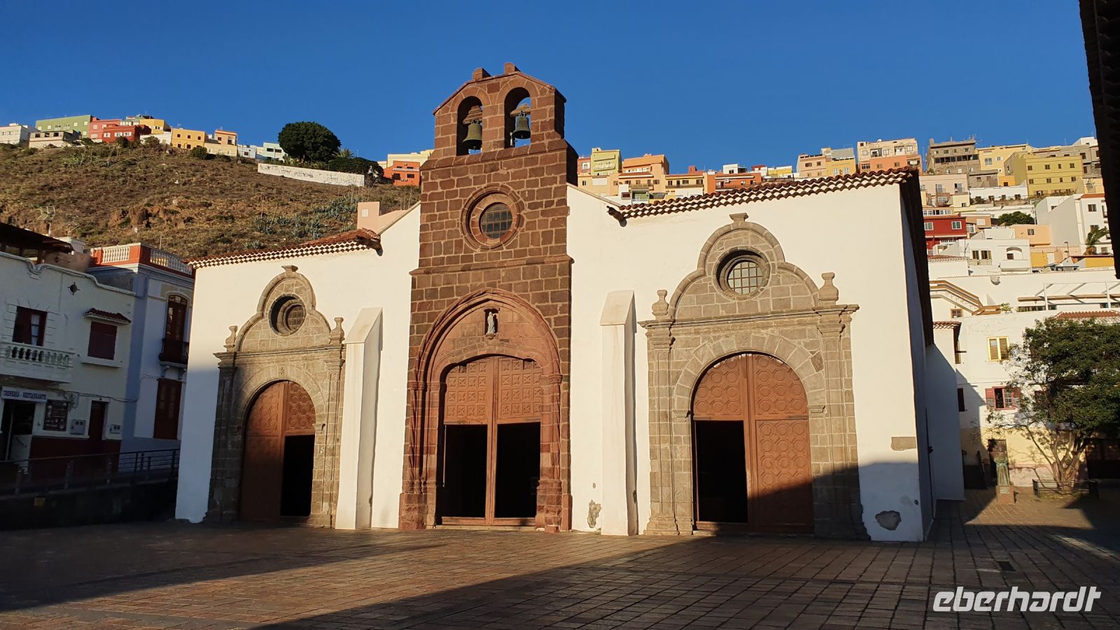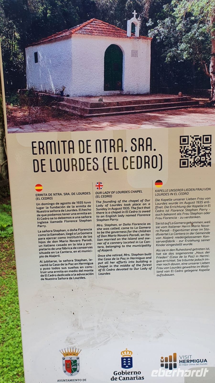 Unser letzter Wandertag war gekommen und den verbrachten wir noch einmal im Lorbeerwald. Der Bus brachte uns hinauf in die Berge und auf 1350 m Höhe stiegen wir aus und begannen unsere Wanderung durch den El Cedro Lorbeerwald. Zunächst gingen wir steil bergab, teils über Stufen, teils über steile Wege. Unterwegs sahen wir jahrhunderte alte Gagelbäume und pünktlich 11.11 Uhr gab es ein Schlückchen Gomera Wein und dazu einen kleinen "Ersatz"Pfannkuchen. Auf einer Lichtung bei der kleinen Wallfahtrskirche Lourdes machten wir unsere Mittagspause und stiegen dann noch immer weiter ab ins Tal. An einer Ferienhaussiedlung war der Umkehrpunkt und nun gings nur noch bergan. Zunächst recht steil über Treppen, dann weiter gemütlich auf einer schmalen, wenig befahrenen Strasse erreichten wir schliesslich oben wieder die Hauptstrasse. Dort wartete unser Bus, aber keiner wollte einsteigen. Alle wollten weiter wandern und so überquerten wir einen Bergrücken und erreichten schliesslich den Parkplatz beim Roque Agando. Dort waren dann auch bereit, in den Bus einzusteigen und nochmals zum Abschluss nett einzukehren. Aber die auserwählte Bar war sehr voll und so brachte uns der Bus zurück nach San Sebastian. Wir bedankten uns beim Fahrer und bei Ulrike und gingen auf dem Hauptplatz alle zusammen auf einen Kaffee, Barraquito ,ein Bier usw. Eine wunderschöne und erlebnisreiche Wanderwoche auf La Gomera fand so ihren würdigen Abschluss. Nun hiess es Kofferpacken.