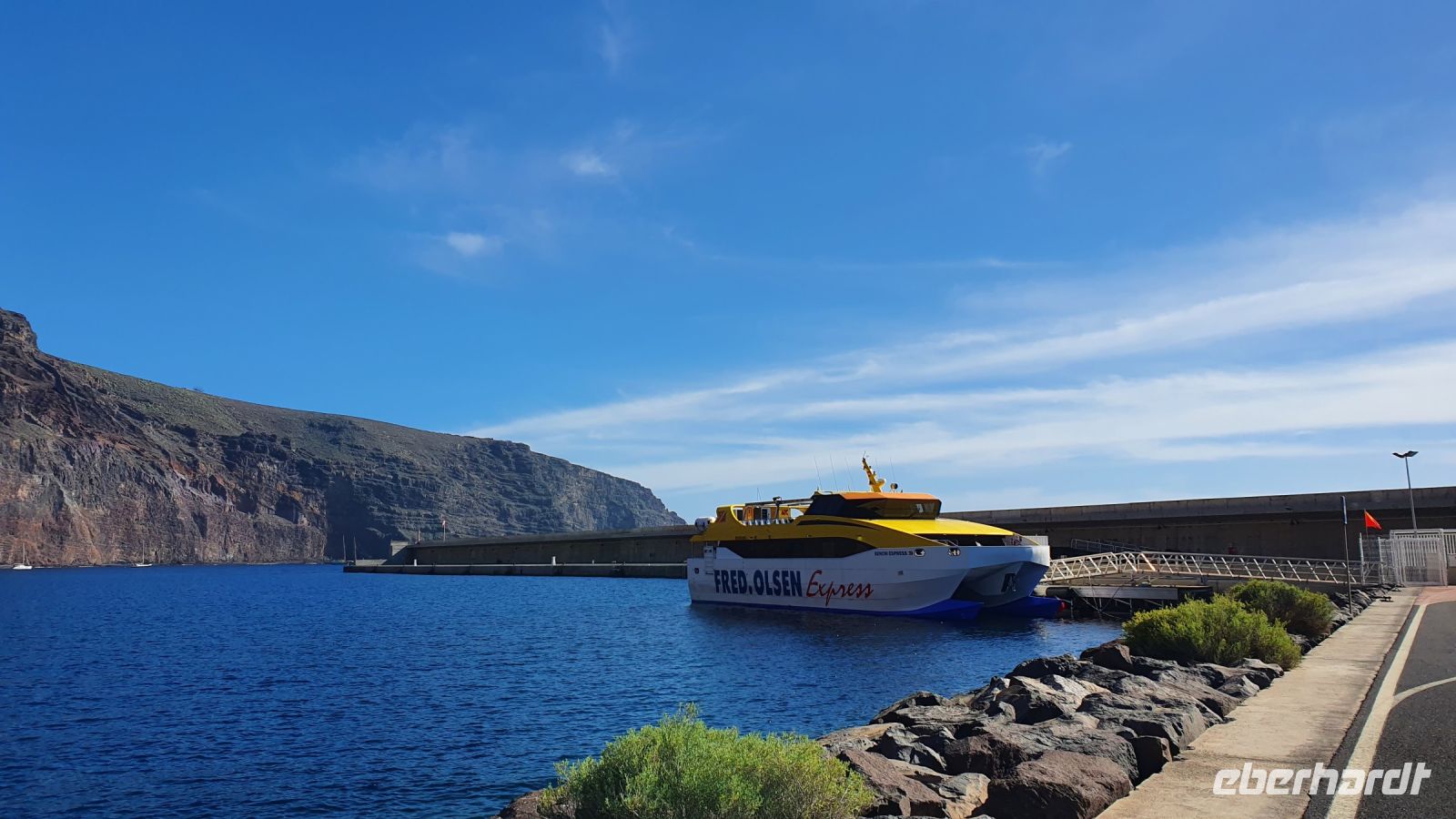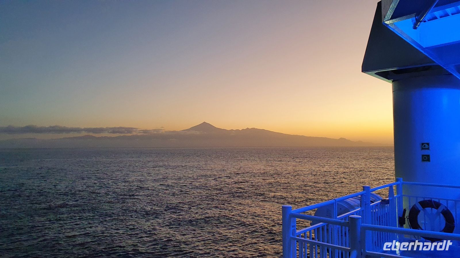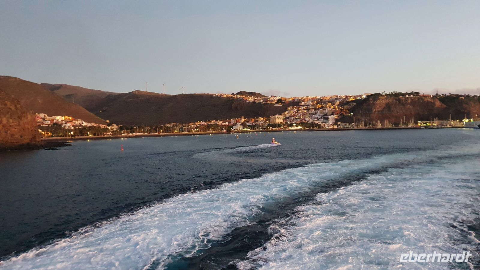 Der Wecker klingelte sehr früh. Dennoch gab es schon Frühstück im Hotel für unsere Gruppe. Danach fuhren wir das kurze Stück zum Fährhafen und noch in voller Dunkelheit legte die ARMAS Fähre 7 Uhr ab. Langsam wurde es heller und schliesslich ging die Sonne auf. Das machte die Fährüberfahrt stimmungsvoll und kurz vor Teneriffa zeigten sich sogar Delphine im Meer. Vom Fährhafen brachte uns ein Bus ins Hotel Alua Atlantico und dort konnten wir noch einmal ausgiebig frühstücken und uns in der großen Hotelanlage ausruhen. Gegen Mittag wurden wir zum Flughafen Teneriffa Süd gebracht und von dort flogen wir zu 4 verschiedenen Flughäfen in Deutschland. Wir kamen alle pünktlich zu Hause an und werden diese Wanderwoche in bester Erinnerung behalten und gern an die sonnigen Tage zurück denken, wenn es dann in Deutschland kälter wird und der erste Schnee fällt.