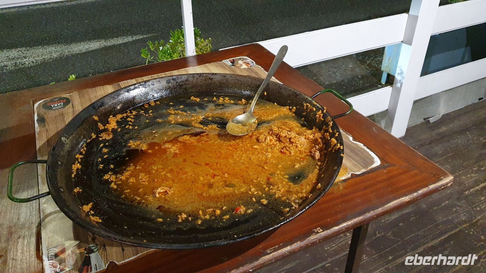 Das letzte Abendessen nahmen wir wieder beim Hafen im Los Caprichos ein und diesmal überraschte uns Fabian mit einem fulminanten Menue und als Höhepunkt gab es eine Paella mit Meeresfrüchten.