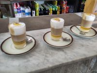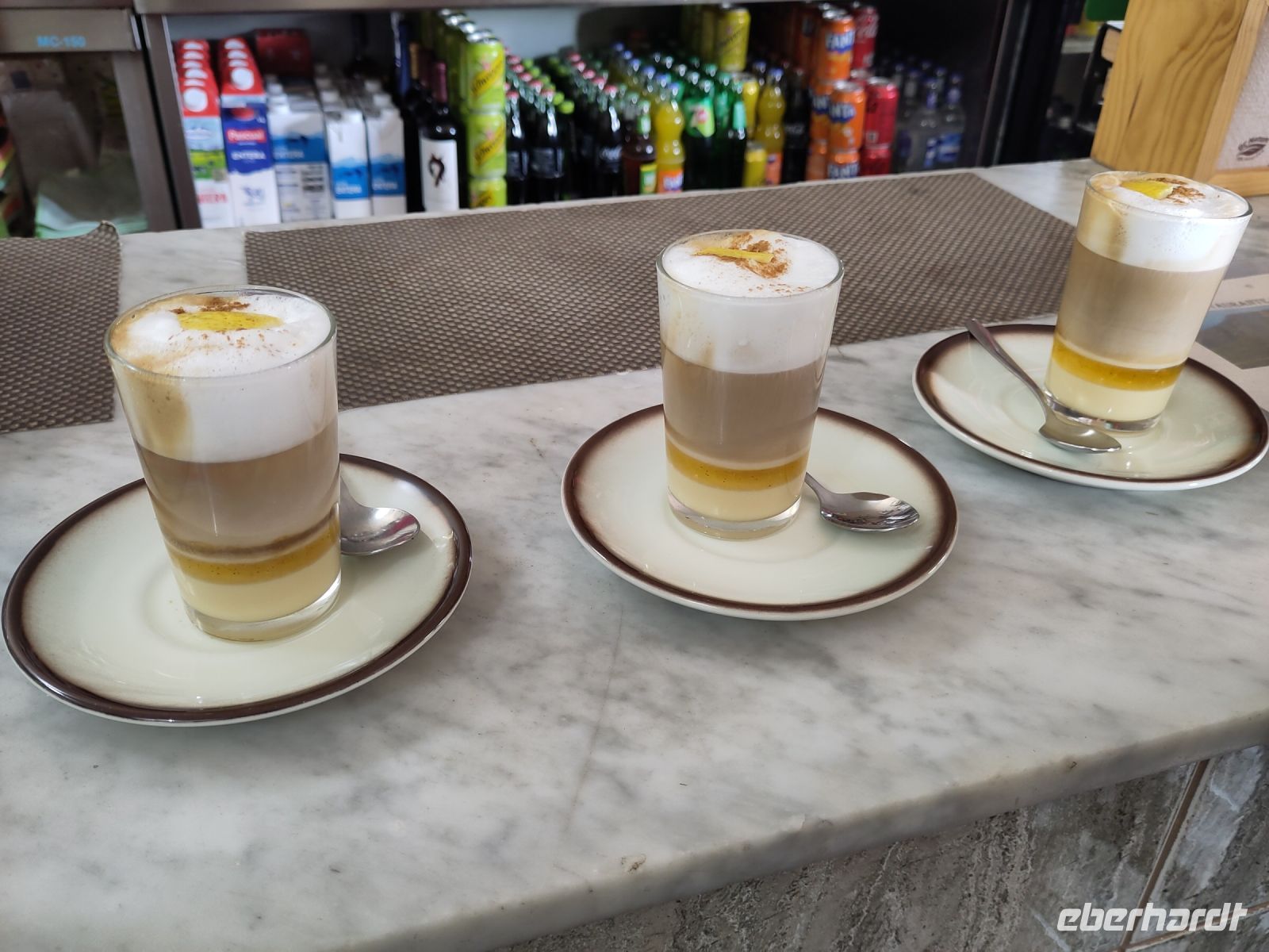 Bar-ra-qui-to. Und hier in Pavón ist es auch noch ein ganz besonders liebevoll gemachter Barraquito. Man unterscheidet zwischen dem Barraquito simple und dem Barraquito especial, obgleich meistens doch der Especial gemeint ist. Insbesondere dieser sollte im Glas serviert werden, damit man seine einzelnen Schichten bewundern kann, da ist er dem italienischen Latte Macchiato ähnlich.