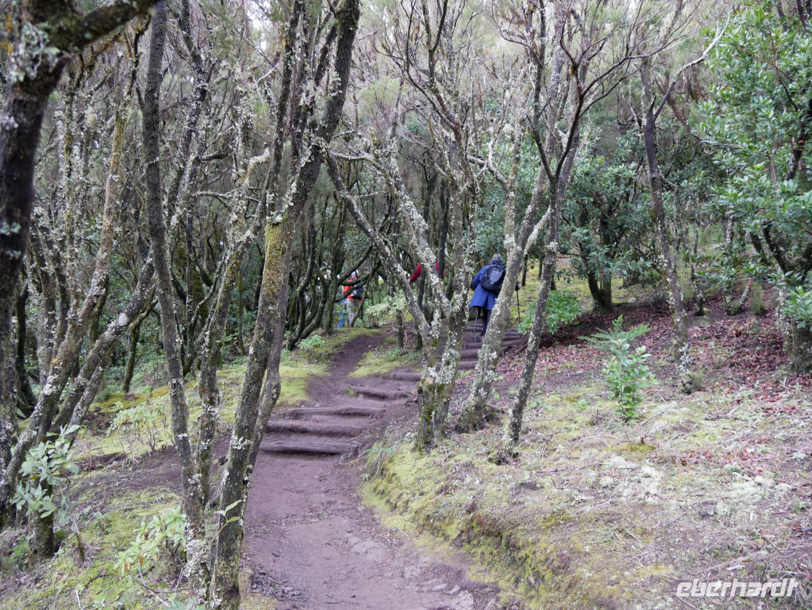 Unserere Wanderung durch den mystisch bemoostenLorbeerwald startet nun also von hier und Ulli zeigt uns verschiedene Arten von Bäumen, neben dem Gagel und den vier verschiedenen Lorbeerbäumen auch die Baumerika.