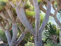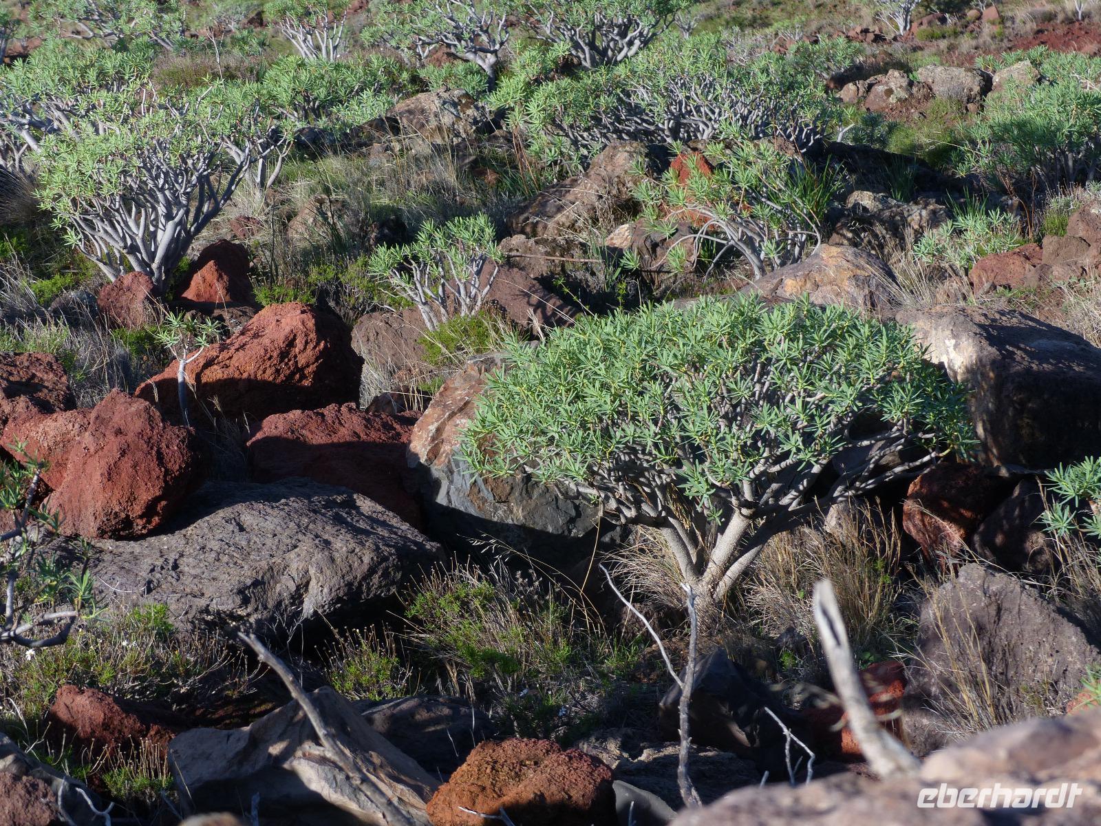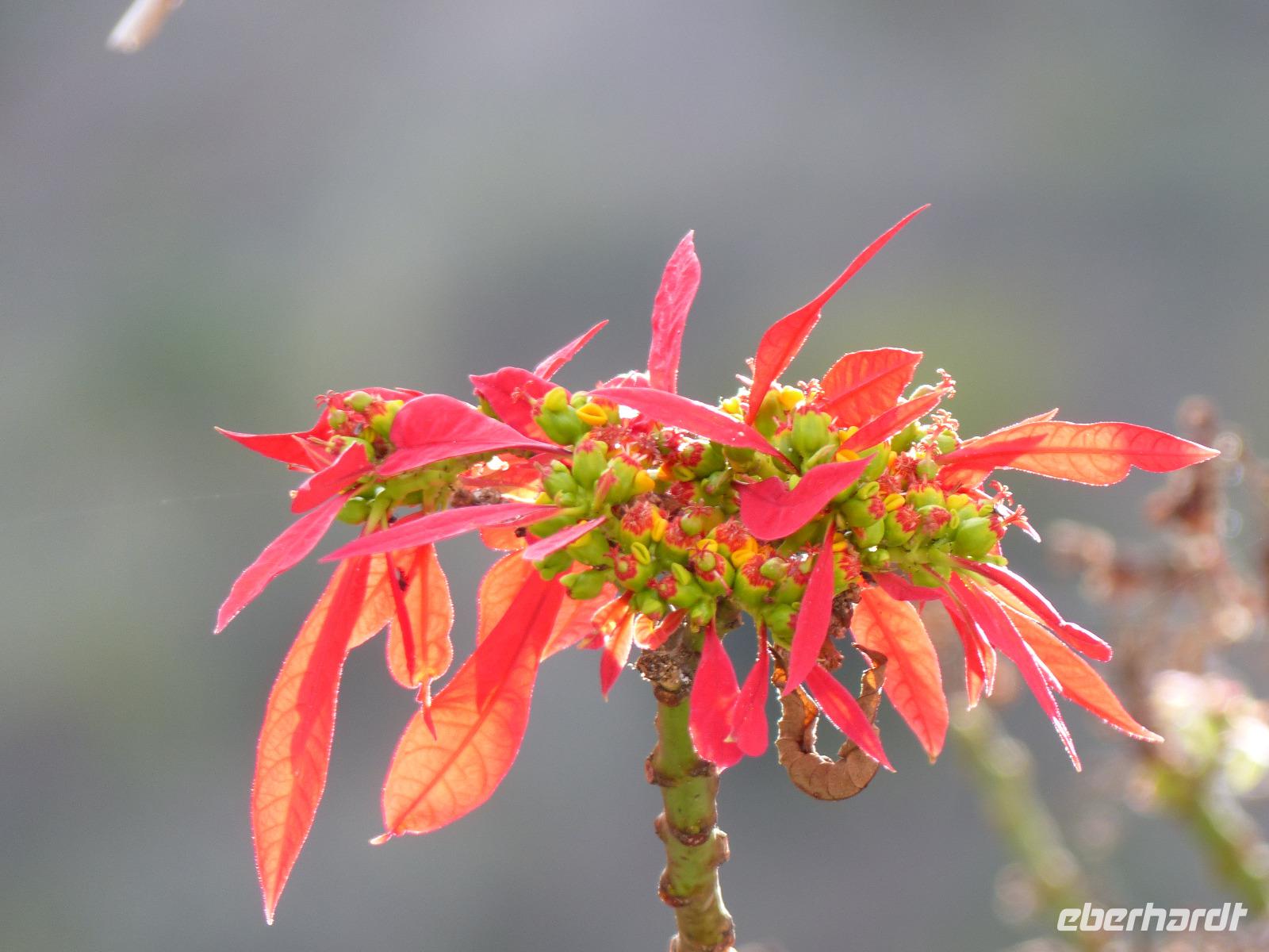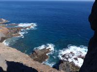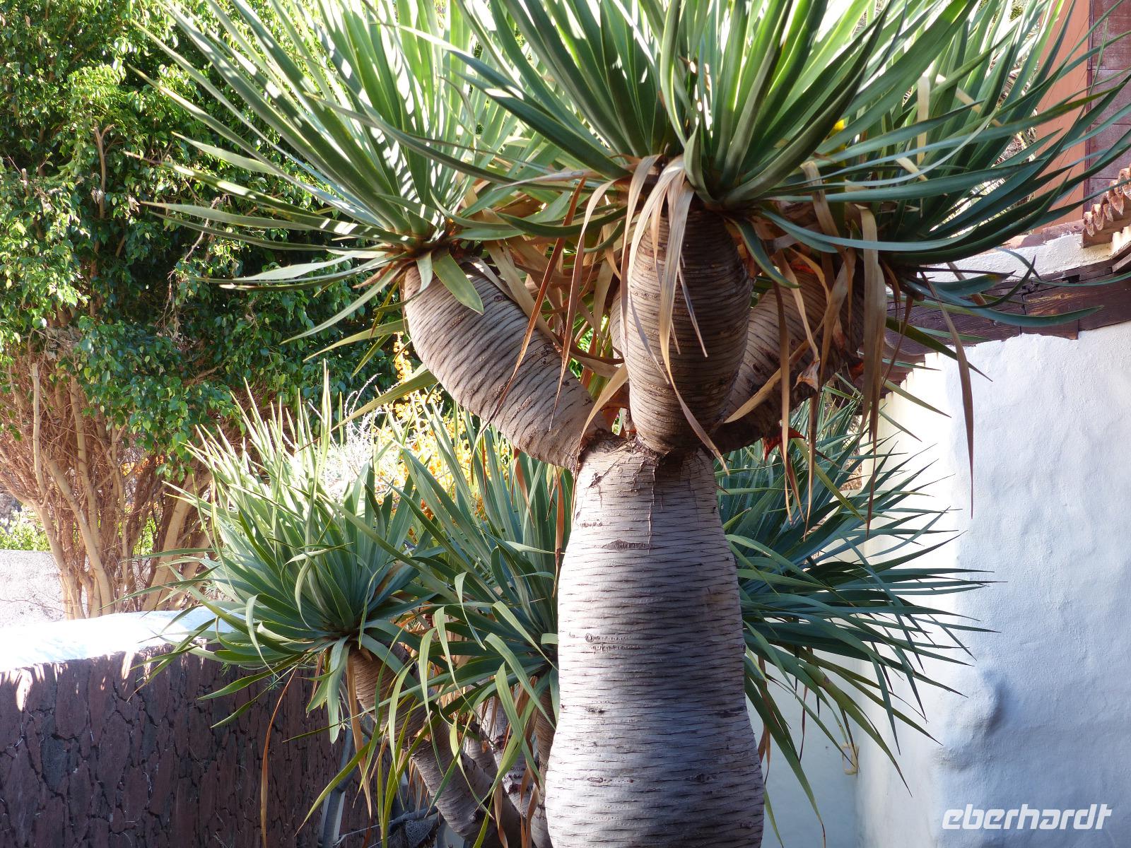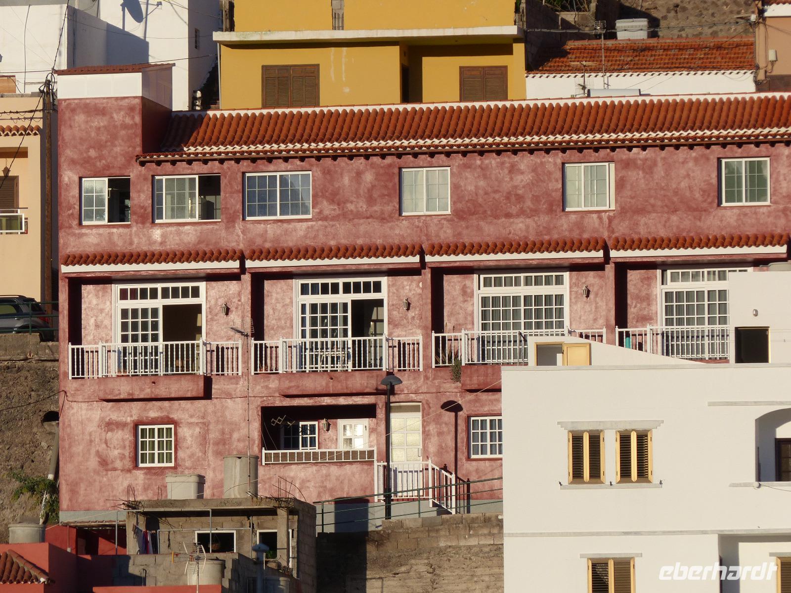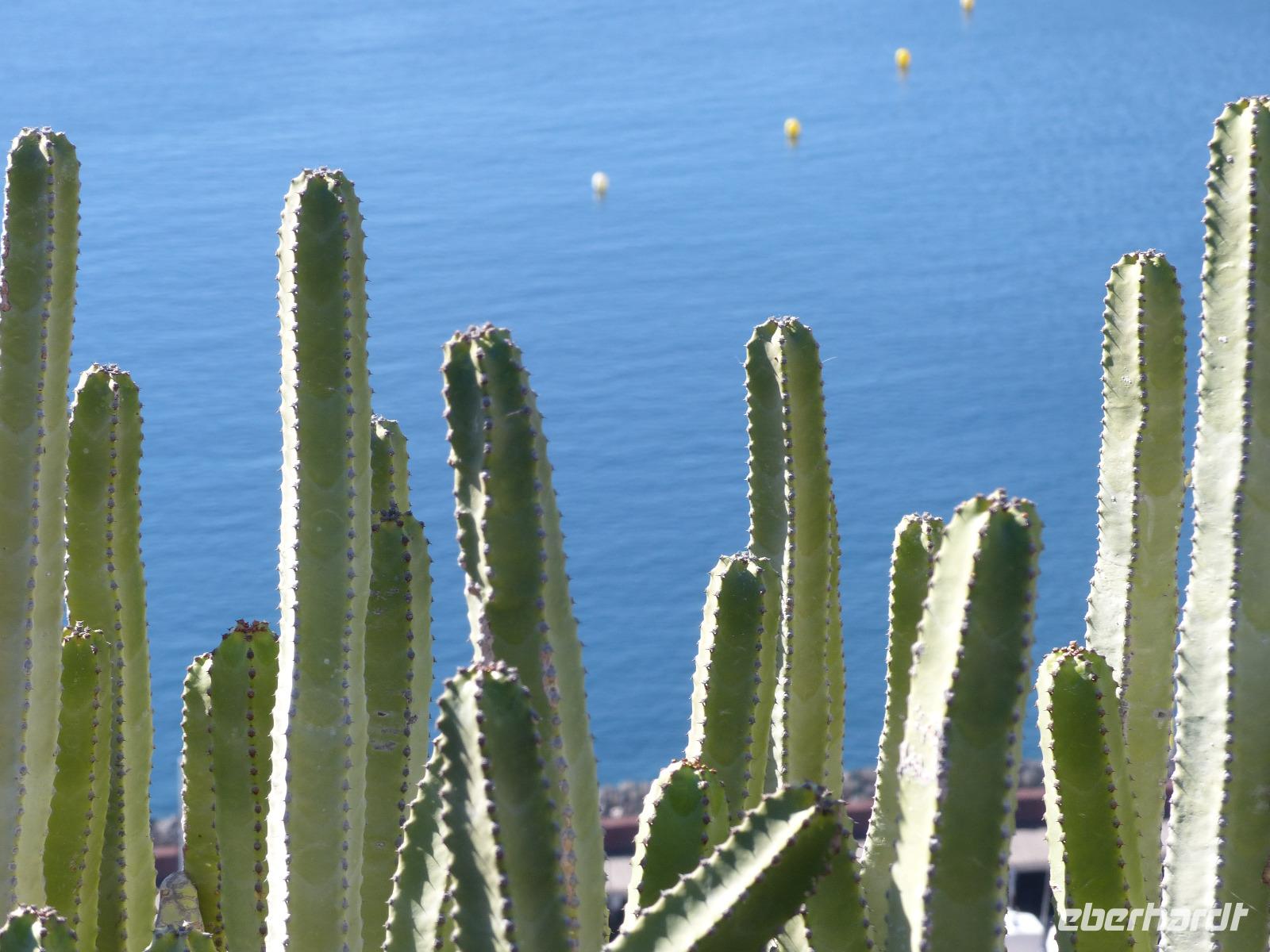 Unser letzter Tag auf La Gomera brach an. Auch heute schien die Sonne in Imada. Und so folgte der Wanderhighlight am letzten Tag: die Palmenschlucht. Vom kleinen Bergdorf führt ein Pfad abwärts durch aufgelassene Terrassenfelder. Blühende Sukkulenten, Agaven, Wolfsmilchgewächse, Opuntien. Und Palmen. Und immer wieder herbstlich verfärbte Laubbäume. Der Weg war nicht ganz einfach, v.a. wenn man nicht schwindelfrei ist und Höhenangst hat. Aber alle kamen mit und schafften es auch ohne Panik diese Stellen zu meistern. Und keiner bereute es, dass er mitgekommen war, so beeindruckend sind die Felswände der Basaltschlucht. Wir ließen uns Zeit und genossen den Abstieg. Je tiefer wir kamen um so mehr Palmen säumten unseren Weg. Unten trennten wir uns. Wer keine Lust auf einen schweißtreibenden Steilaufstieg hatte, folgte der Straße abwärts zum Bus. Der brachte die Genusswanderer nach Playa de Santiago. Die Bergziegen folgten mir steil bergauf. Bizarre Felsen und Höhlen lagen am Wegesrand. Und der Blick auf den Roques Agando wurde frei. Oben machten wir eine Pause und genossen die Aussicht, bevor wir mehrere kleine Weiler durchschritten und schließlich den Bus erreichten. Wir holten die Genusswanderer dann in Playa de Santiago ab und kamen gerade noch rechtzeitig in San Sebastian an, um noch ein Meeresbad in der Sonne nehmen zu können, denn im Dezember verschwindet die Sonne schon relativ früh aus der Bucht. Und nun war Kofferpacken angesagt. Unseren letzten Abend verbrachten wir in einem kleinen Restaurant, wo wir sehr lecker gegessen haben. Und am späten Abend köpften wir noch 2 Flaschen Rebensaft und ließen so diese schöne Reise in guter Stimmung ausklingen. Dann hieß es Abschied nehmen von unserer kleinen hübschen Insel im großen Meer.