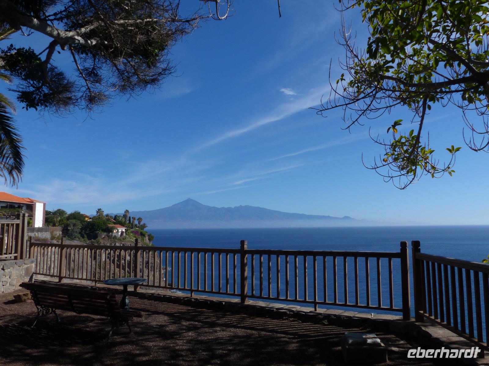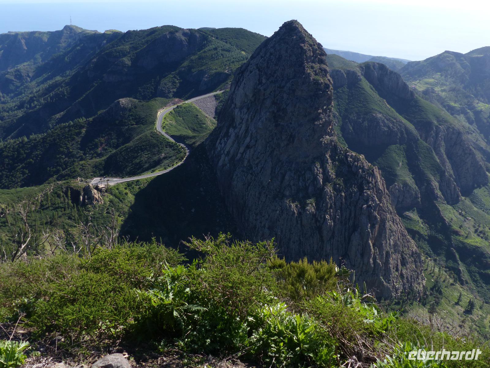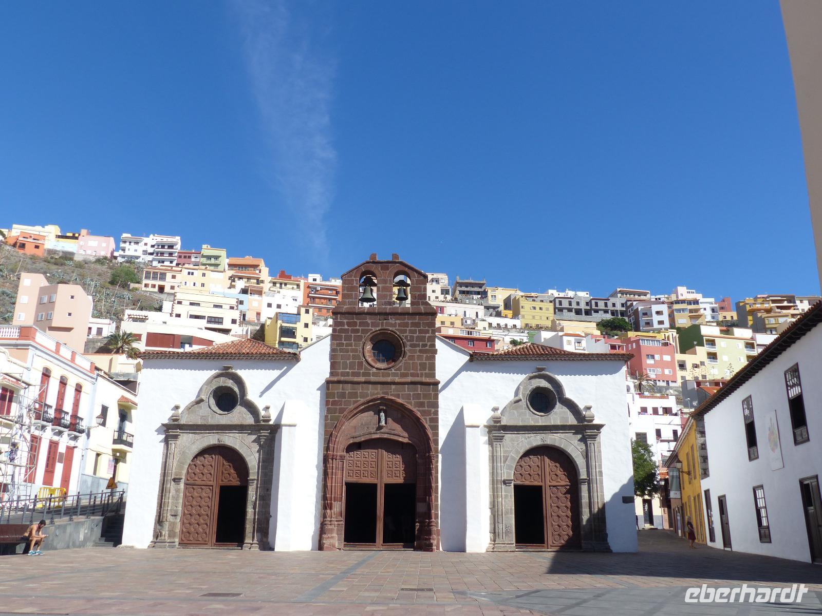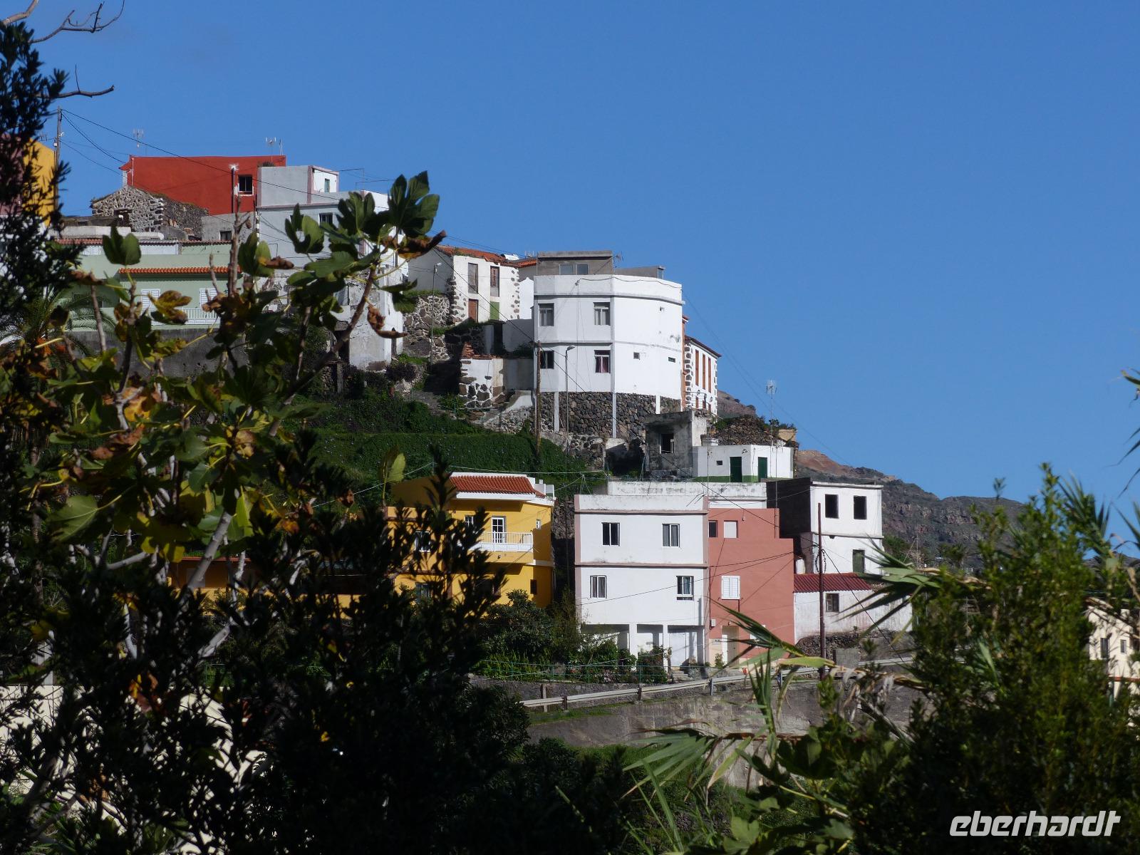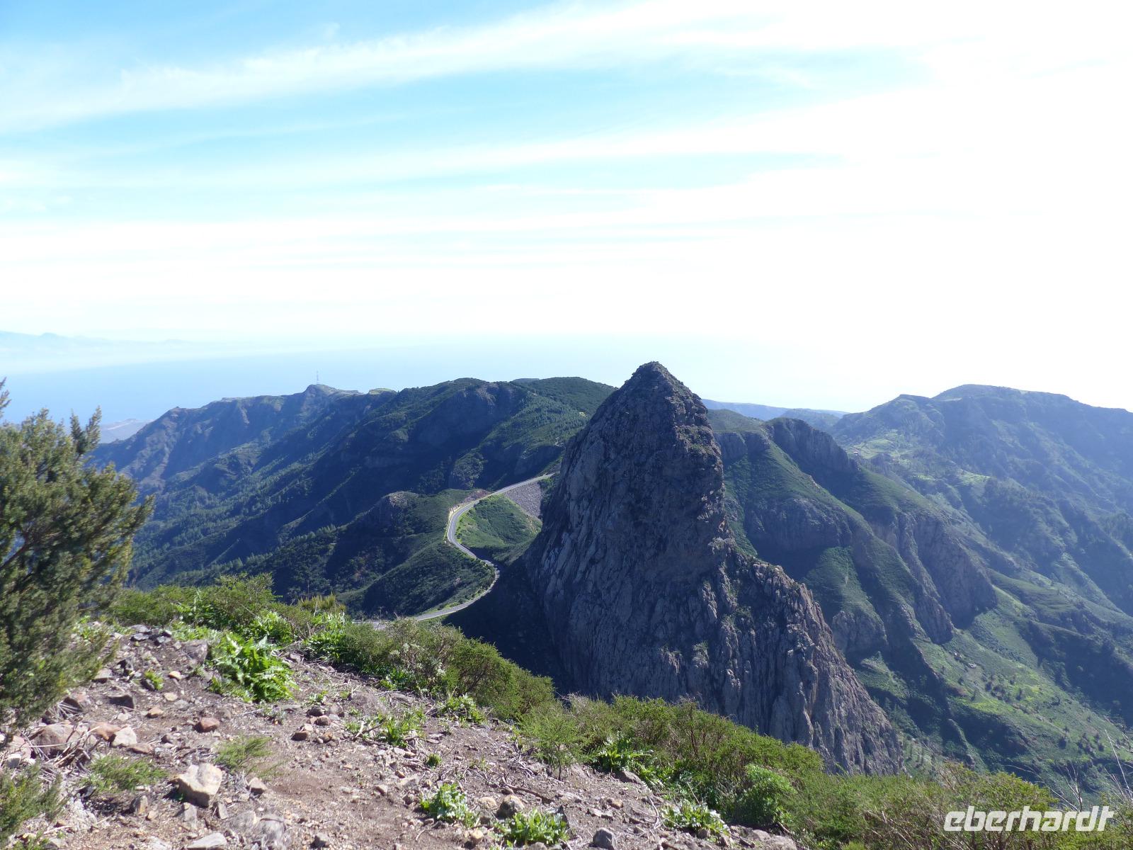Dann meldeten sich unsere Mägen und wir ließen uns herrliche Vorspeisen in einem kleinen Restaurant in Hermingua gut munden. Hermingua bot uns bei strahlender Sonne gutes Essen, eine hübsche Kirche und viele Blüten. An diesen Ort erinnern wir uns gerne! Und bald schon zogen wir weiter, denn Highlights hatten wir heute jede Menge auf dem Programm. Agulo. Das schönste Dorf der Insel. Wir machten einen Spaziergang durch die malerischen Gassen, bevor sich unser Bus den Steilhang hoch zum Aussichtspunkt Mirador de Abrante quälte. Ein gewagtes Gebäude mit einem 7 m langen Arm, der über eine Felswand hinausragt und der einen Glasboden hat. Der Pächter Fred Olsen bietet erfreulicherweise Gastronomie an - man kann aber man muss nicht! Auch Nicht-Restaurant-Gäste dürfen den Glasarm betreten. Eine schöne Geste, die wir zu schätzen wussten. Aber nun rückten uns wieder die Wolken auf die Pelle und Carlos, unser freundlicher Fahrer, brachte uns gegen Abend wieder zurück nach San Sebastian. Wieder ein toller Tag! So hatten wir uns das vorgestellt...